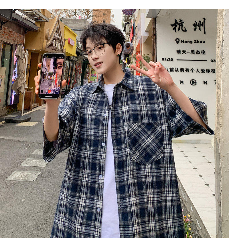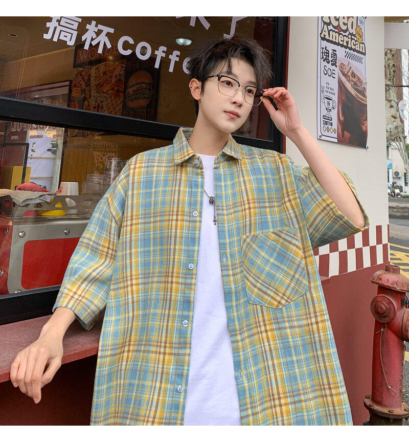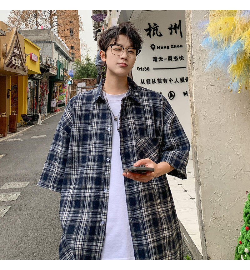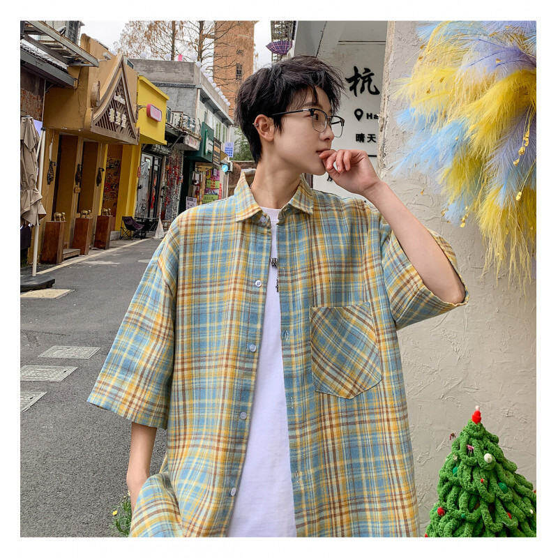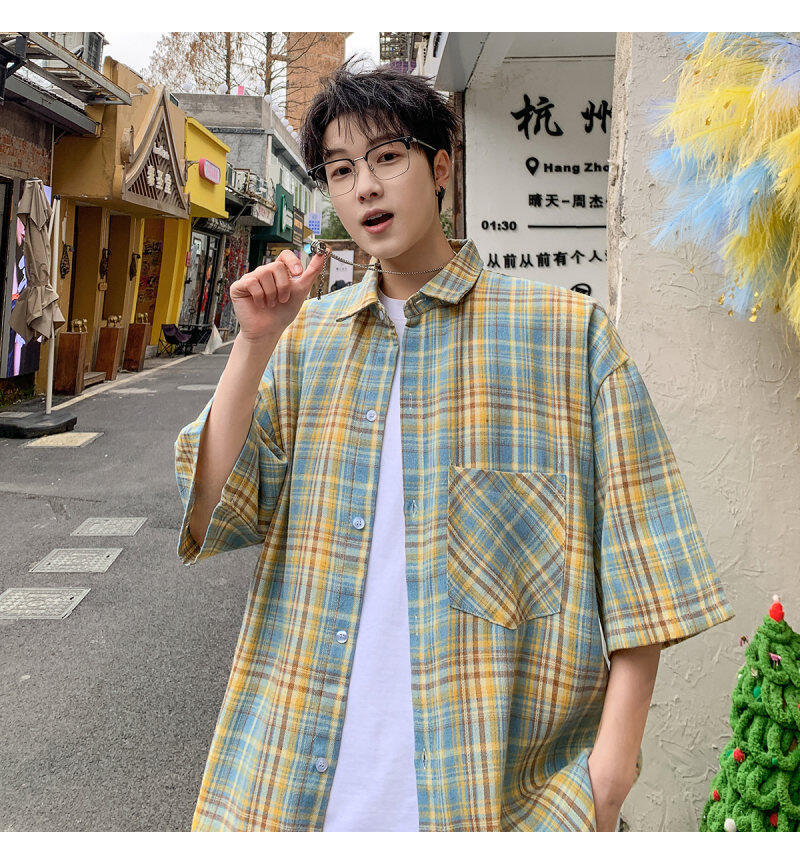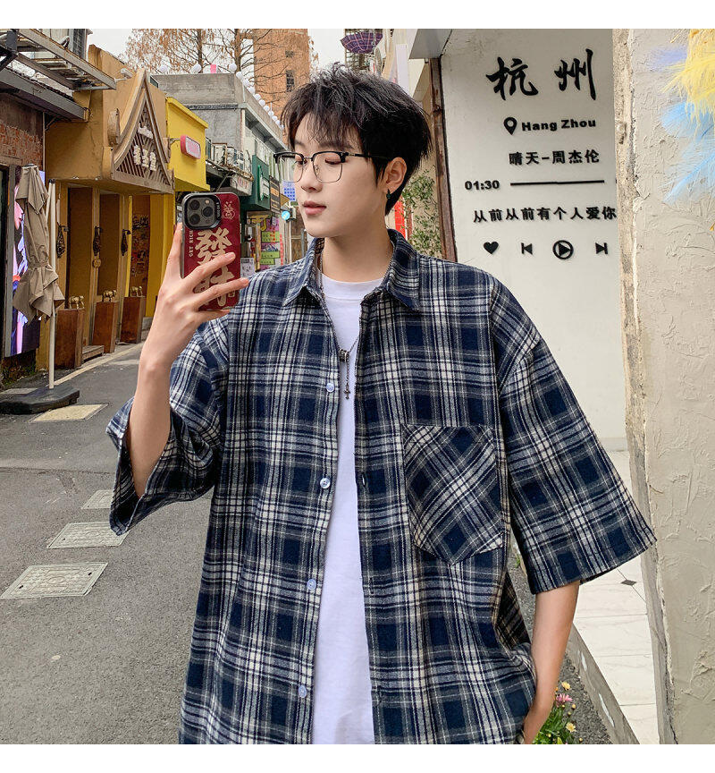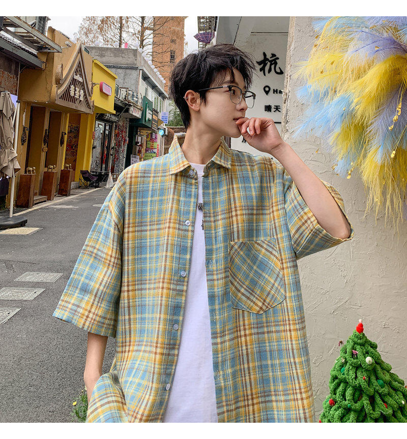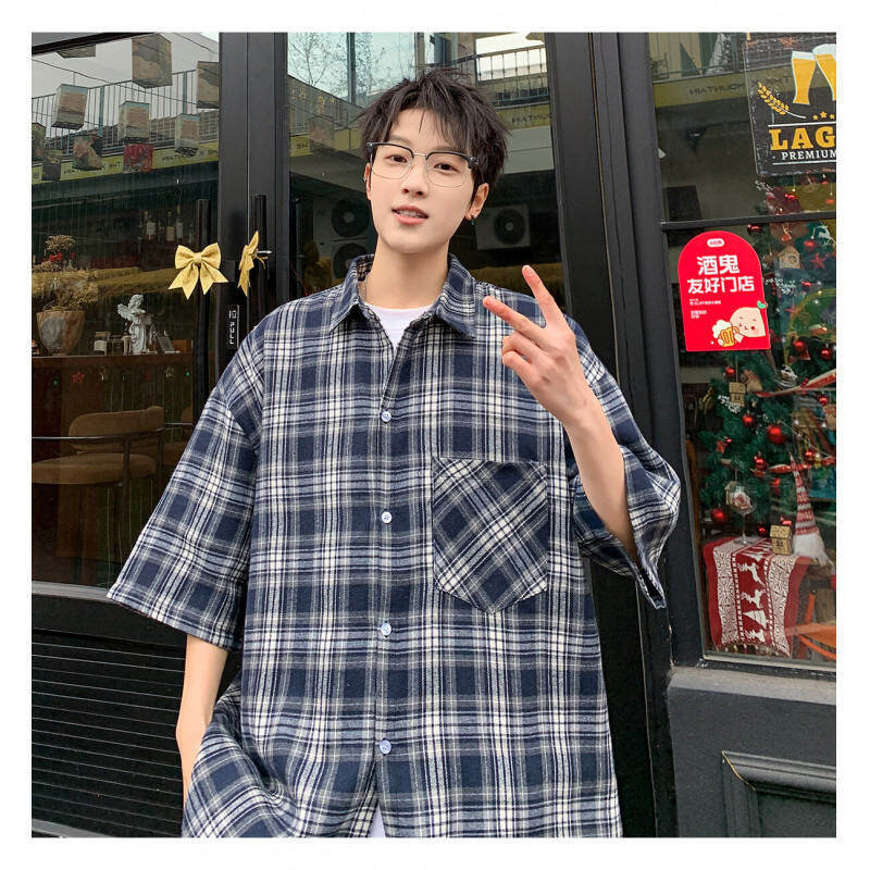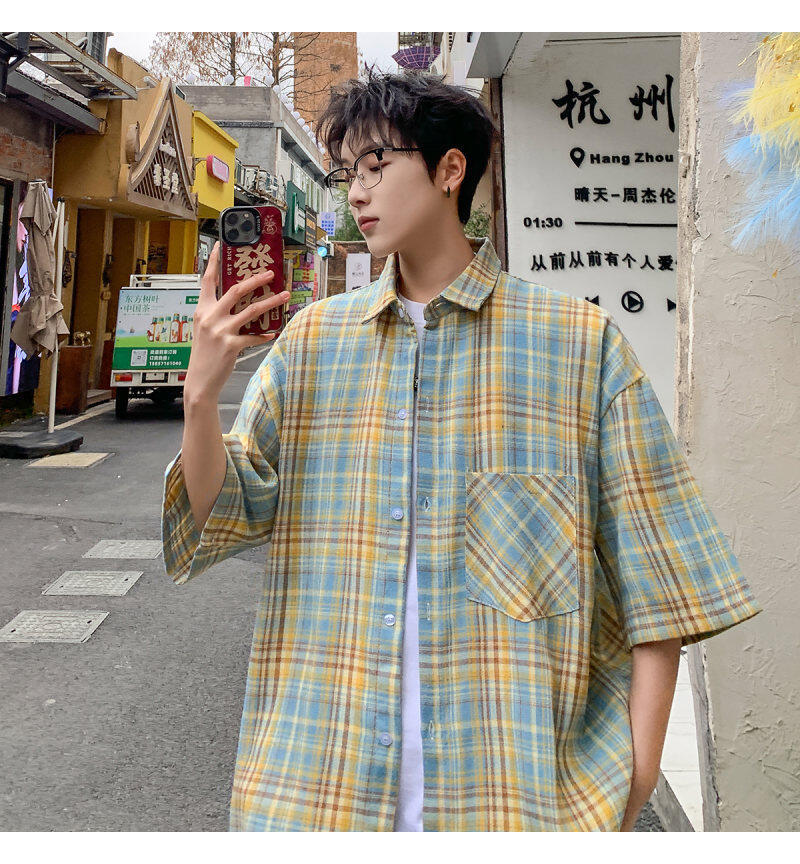 Compra Camisa informal de manga corta para hombre, nueva marca de moda, holgada, de talla grande, con estampado a cuadros, 2025 al por mayor en Joom.pro