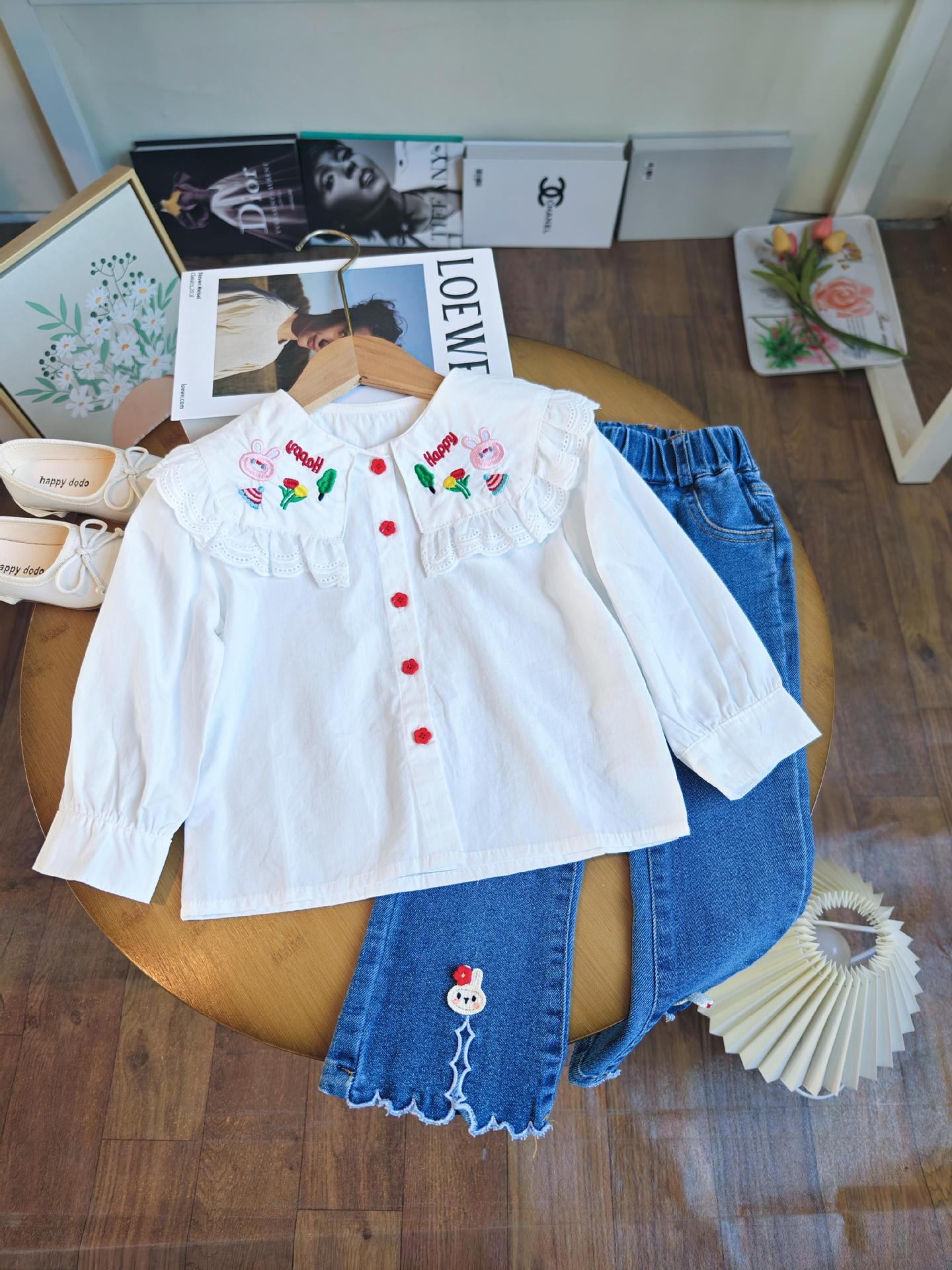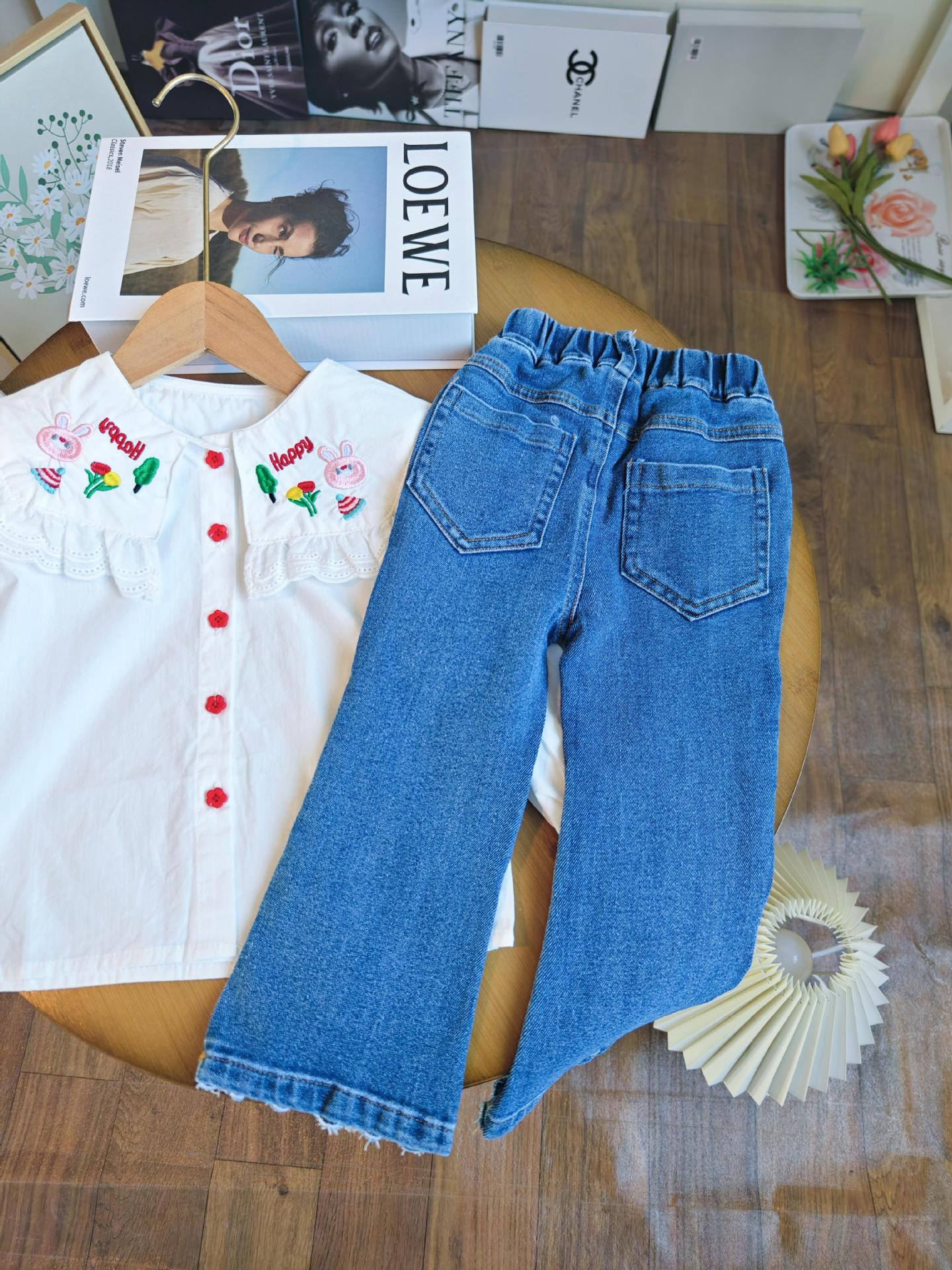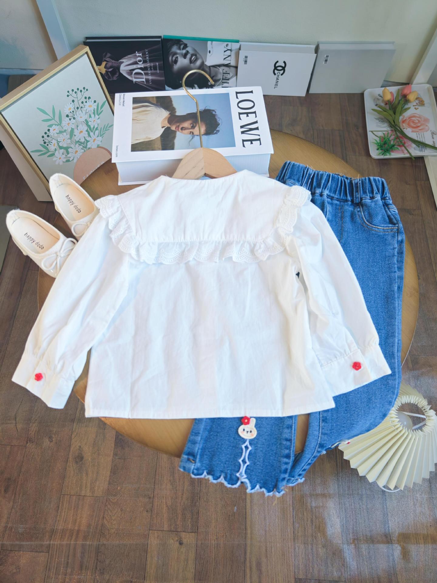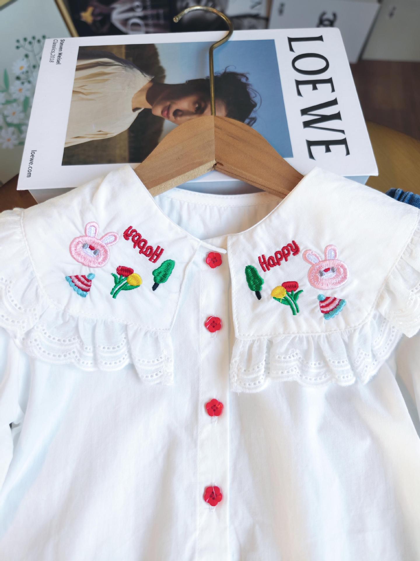 Comercio Exterior Ropa para Niños al Por Mayor Trajes para Niñas 24 Principios de Primavera Nuevas Camisas de Solapa Grande y Trajes Vaqueros para Niñas