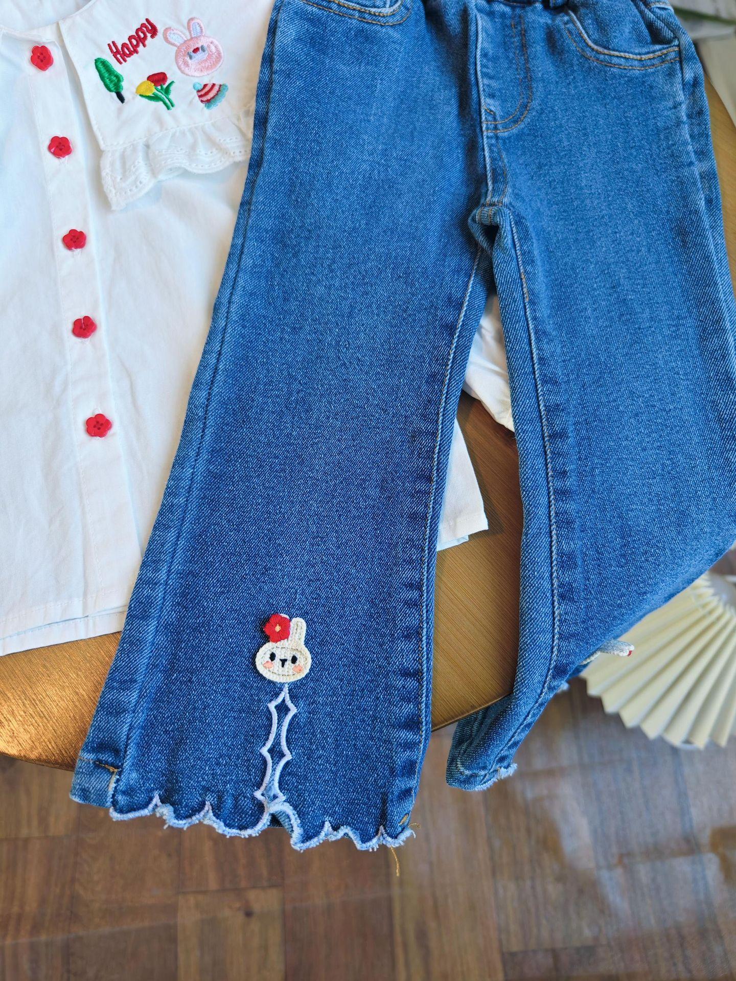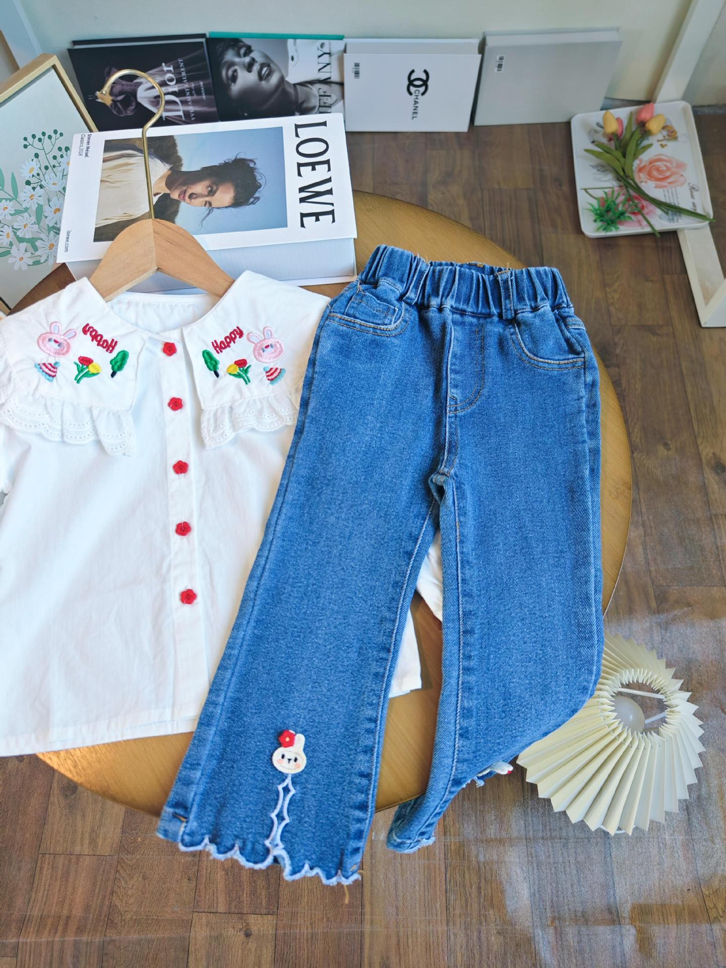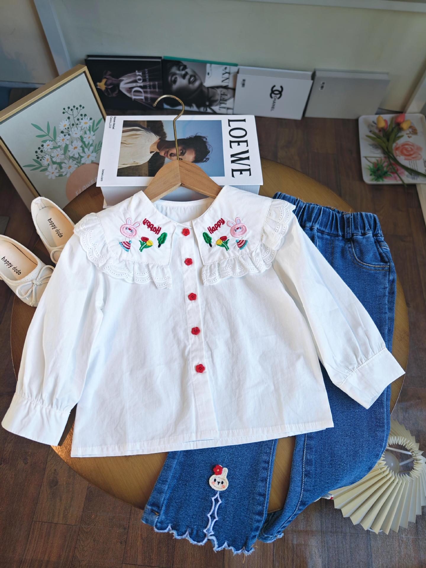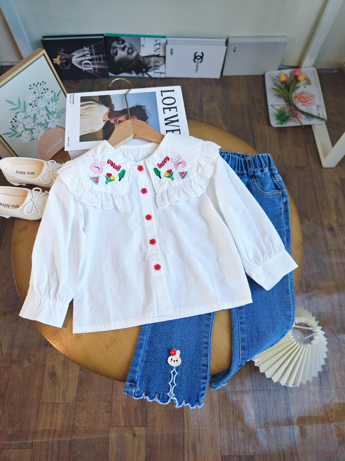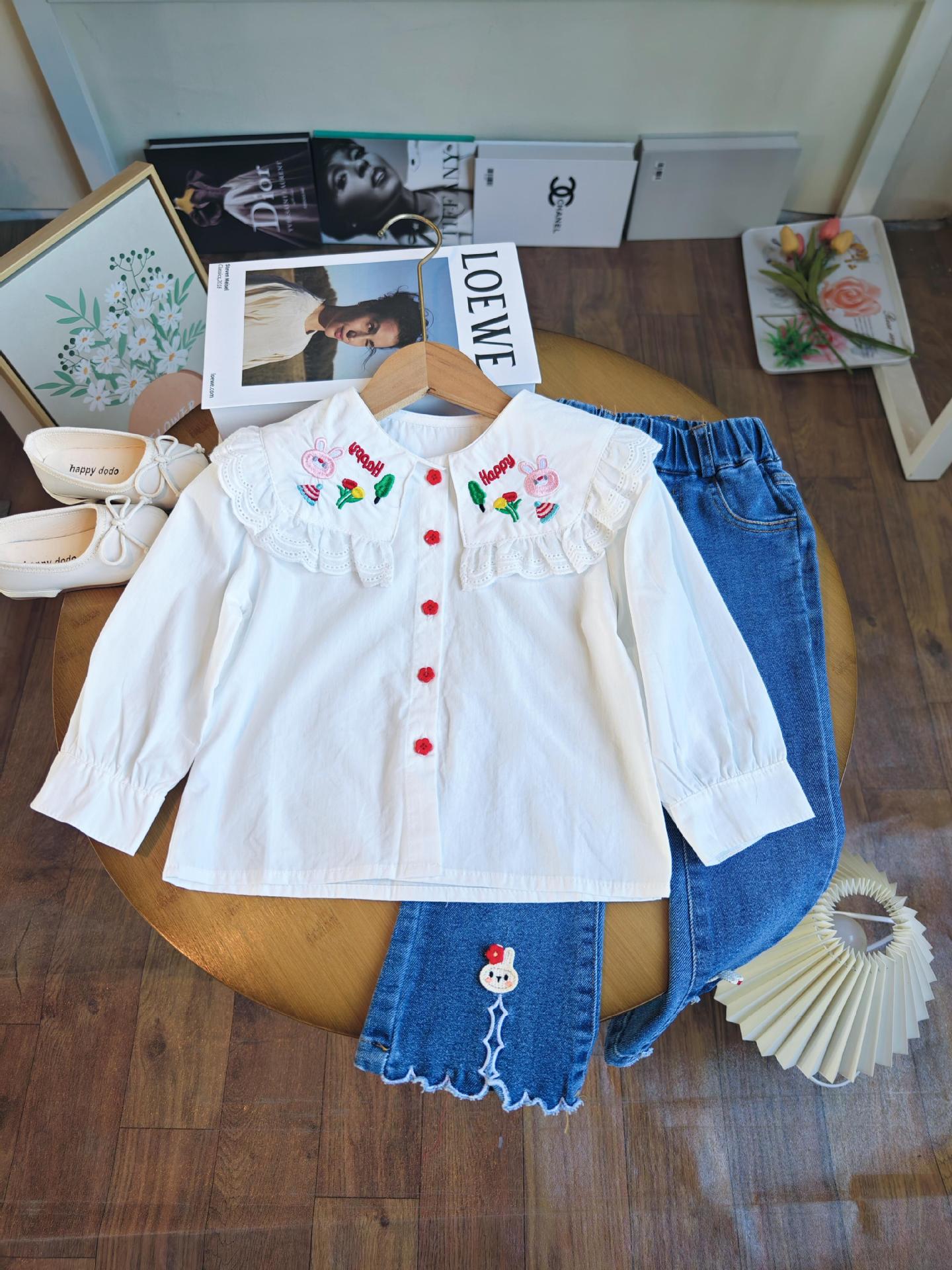 Comercio Exterior Ropa para Niños al Por Mayor Trajes para Niñas 24 Principios de Primavera Nuevas Camisas de Solapa Grande y Trajes Vaqueros para Niñas