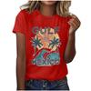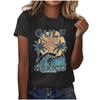 Camiseta de manga corta informal con estampado de dibujos animados de otoño para mujer europea y americana, nueva moda de AliExpress para verano y playa.