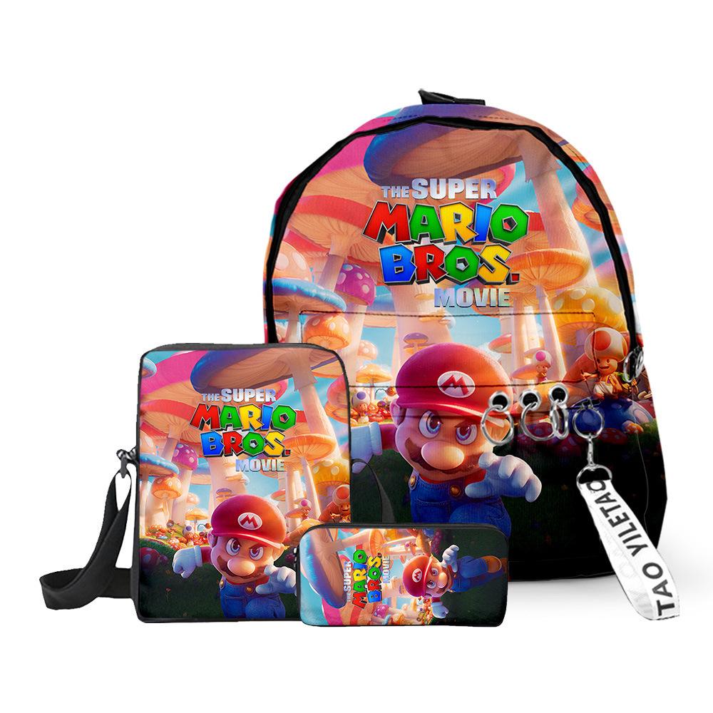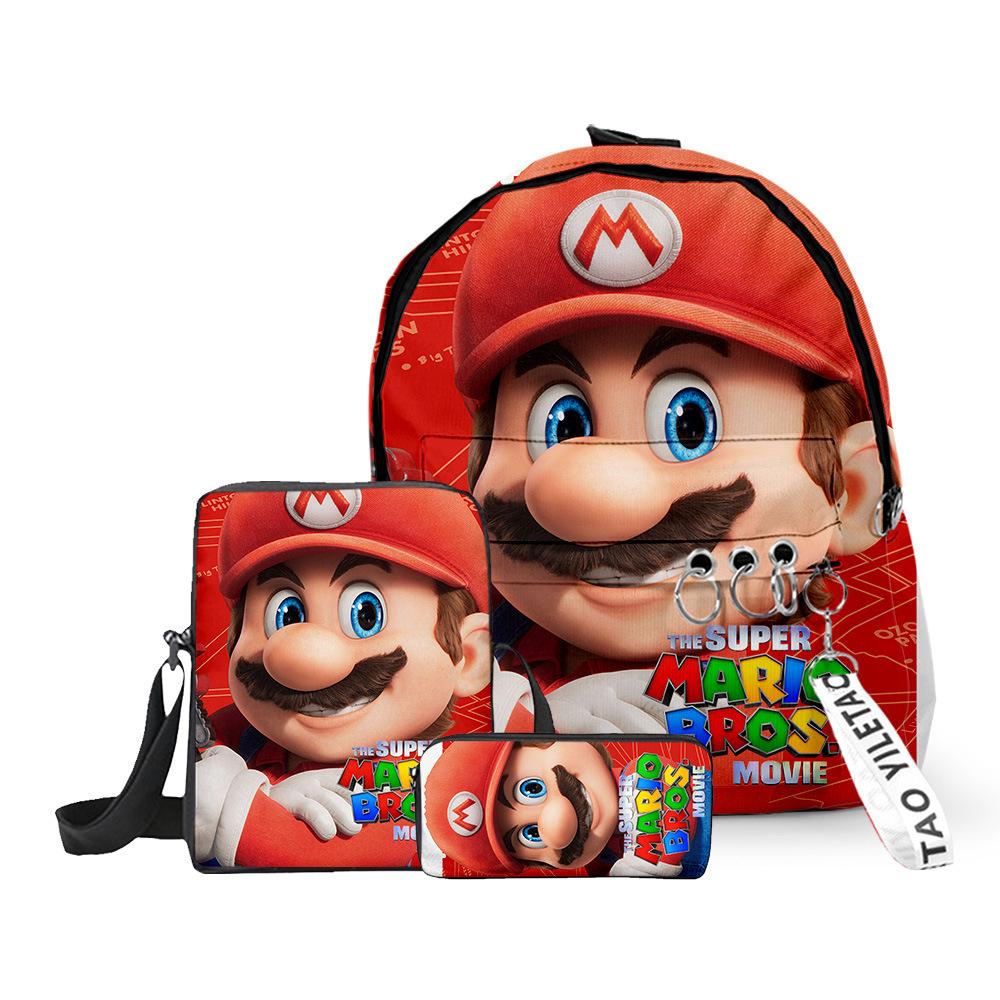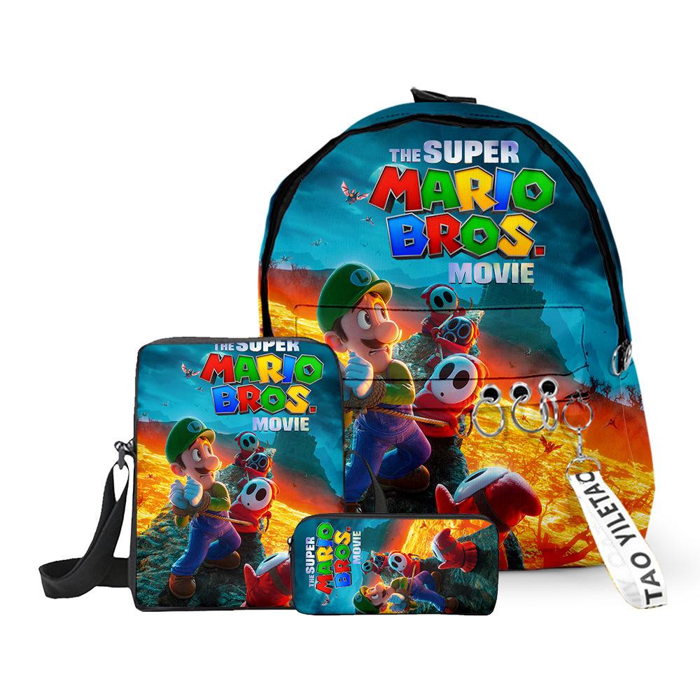 Mochila Escolar de Tres Piezas 3D Nueva Película Mario Brothers Mochila de Estudiante Mochila Bolso de Hombro Estuche para Lápices