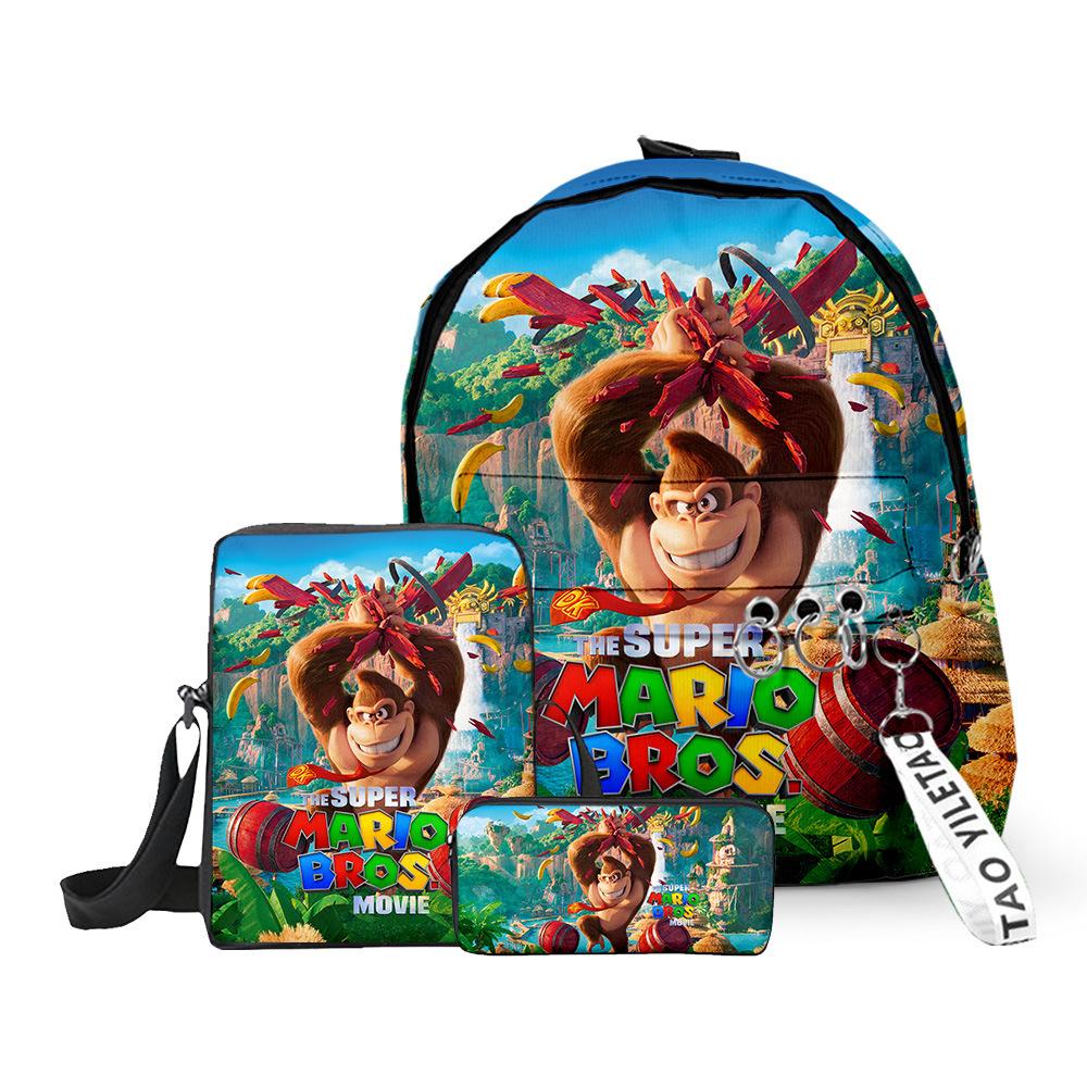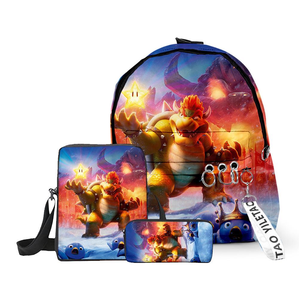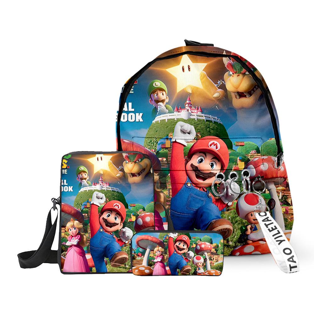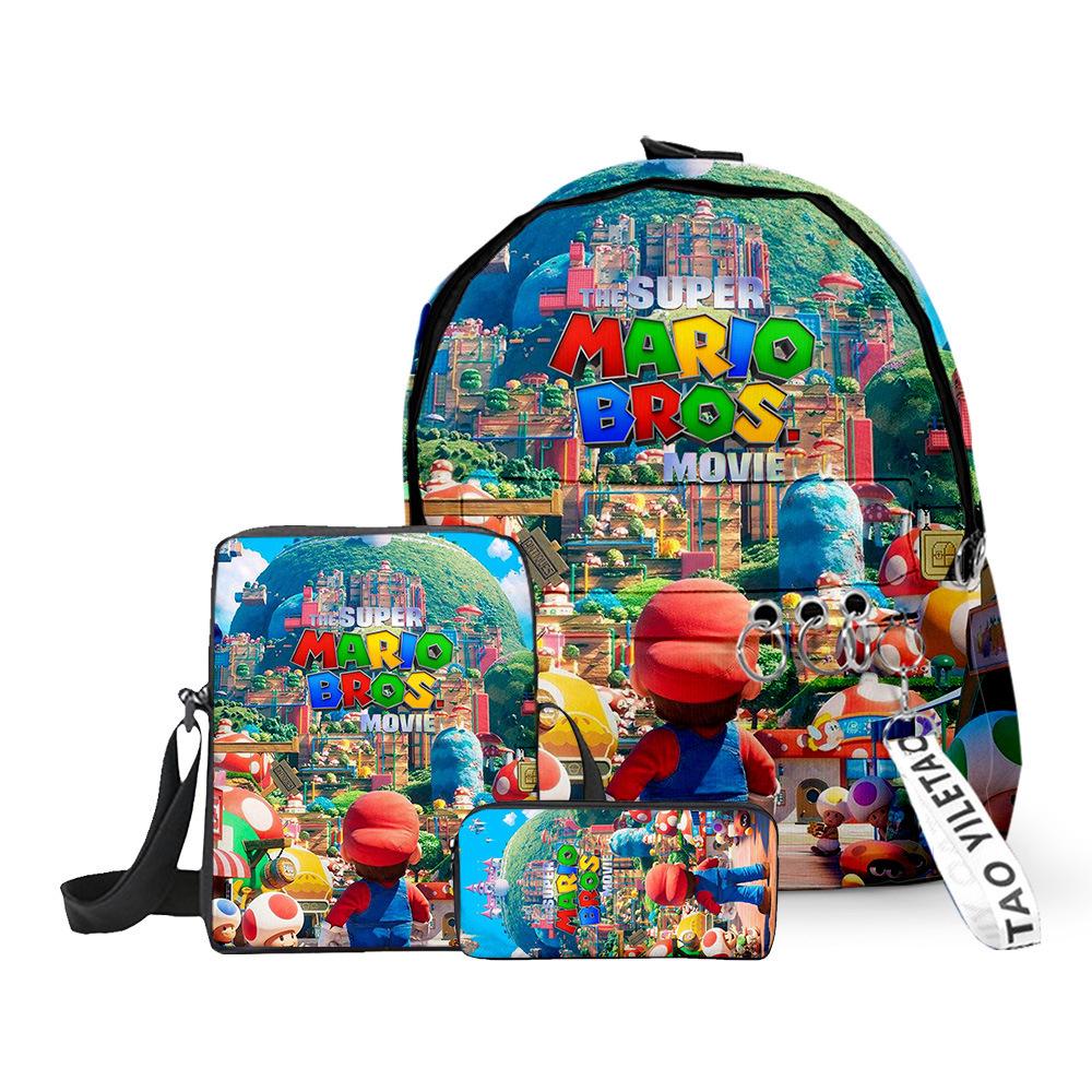 Mochila Escolar de Tres Piezas 3D Nueva Película Mario Brothers Mochila de Estudiante Mochila Bolso de Hombro Estuche para Lápices