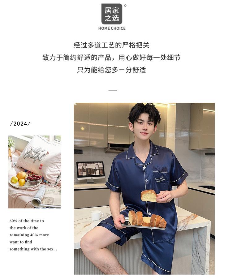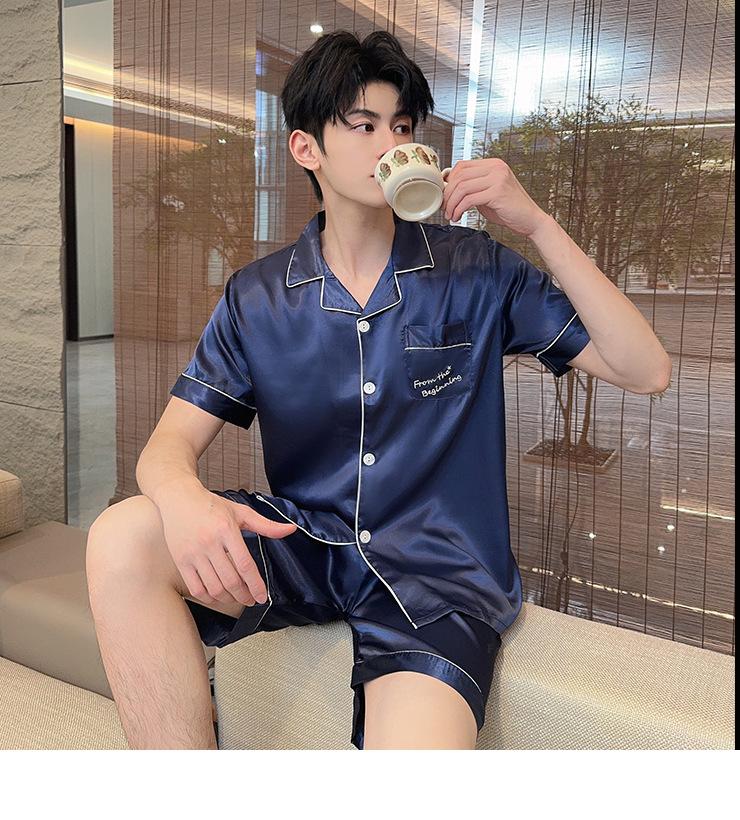 Pijamas de hombre, verano 2024, seda helada, nuevo, seda, verano, manga corta, holgado, para el hogar