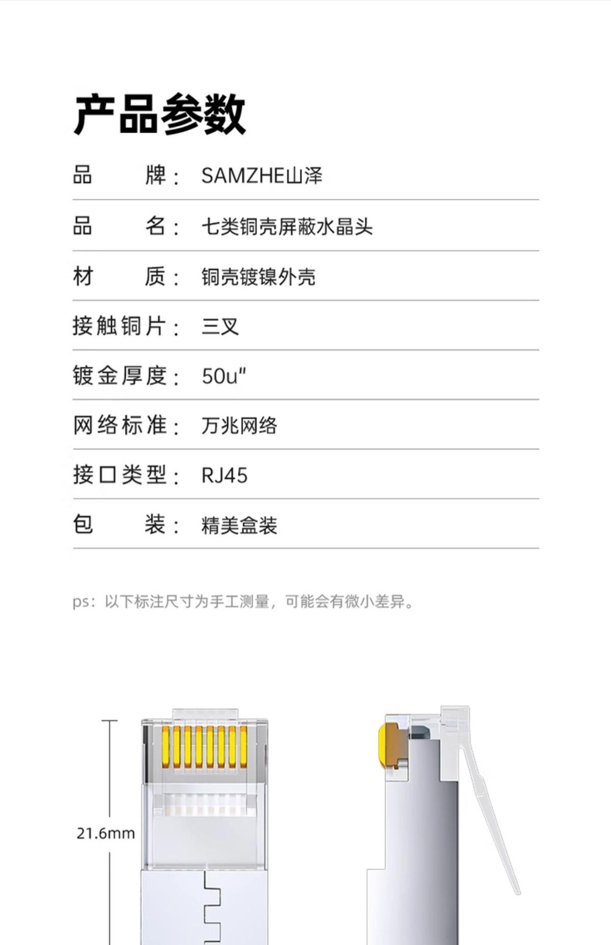 Shanze Categoría 6, Categoría 7, 10 Gigabit, Categoría 5, Cable de Red Blindado Conector de Red con Enchufe Rj45