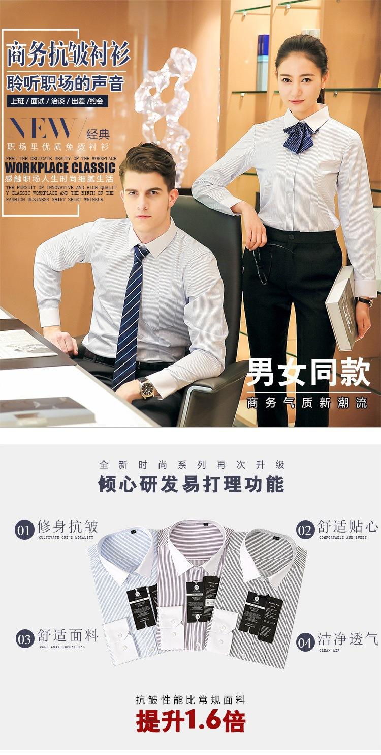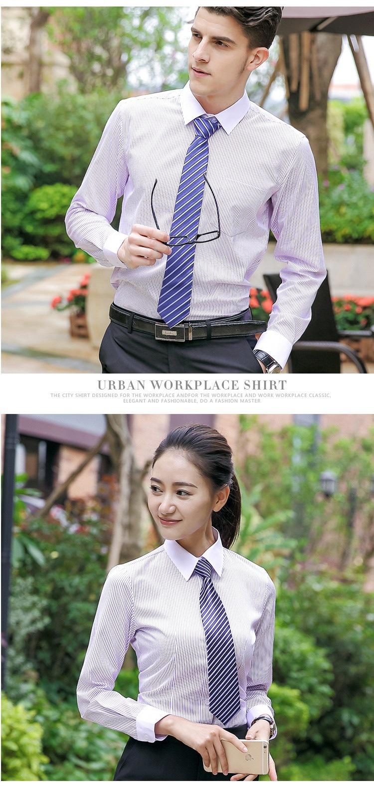 Camisa de negocios de primavera y verano para hombre y mujer, del mismo estilo, de manga larga, ajustada, a rayas, sin planchado, para hombre, ropa de trabajo, vestido