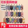 Bolsa de compras plegable cuadrada, bolsa de poliéster con patrón de colores, bolsa de almacenamiento portátil para publicidad de supermercados y censos.