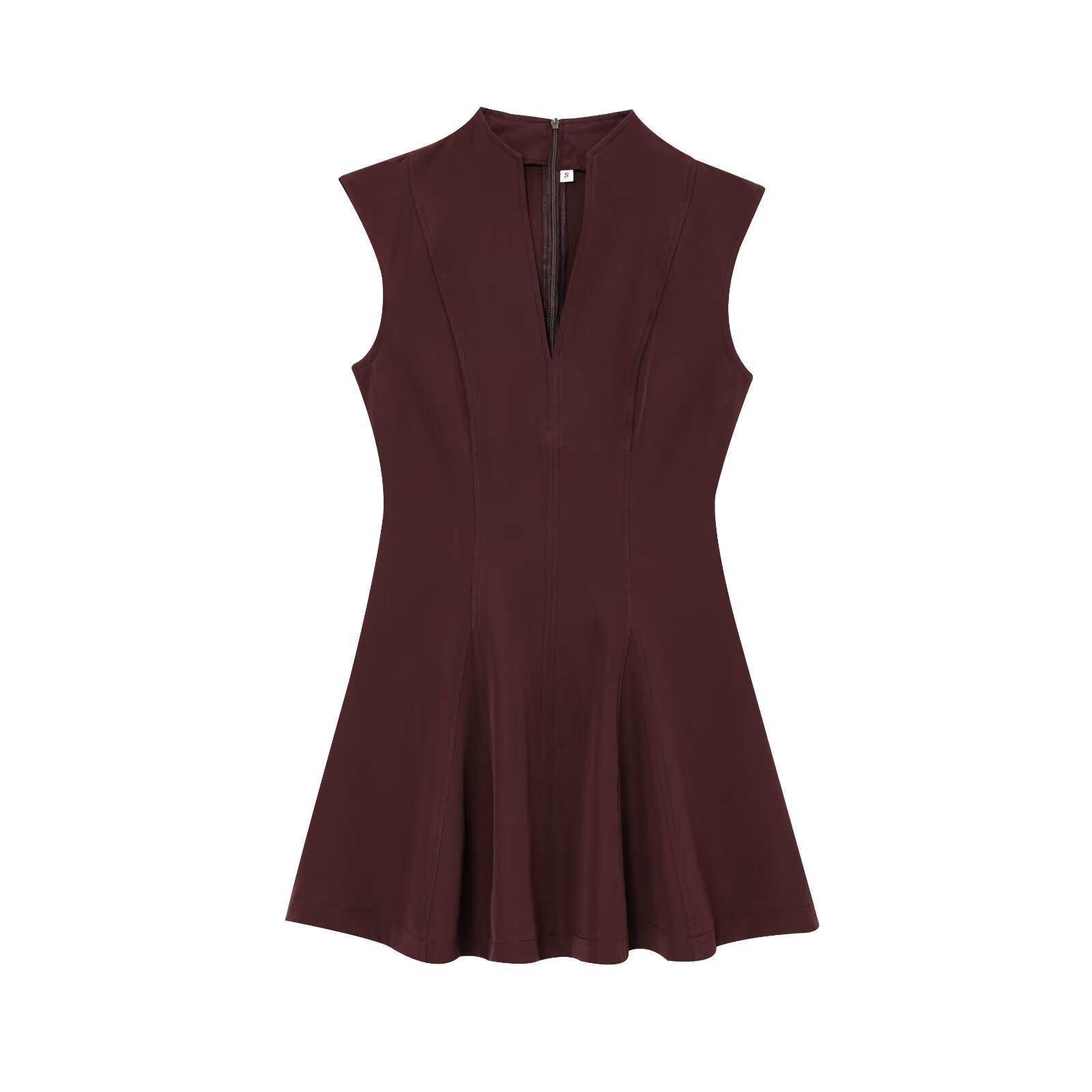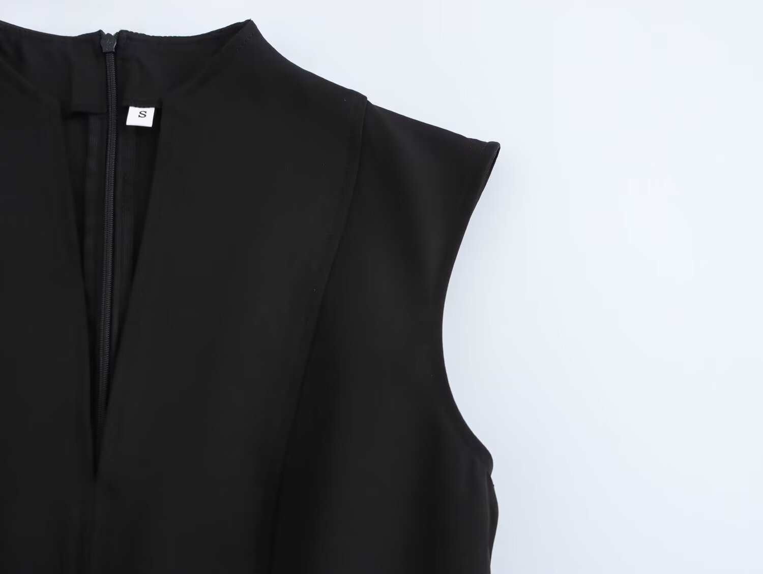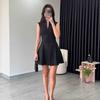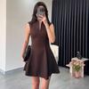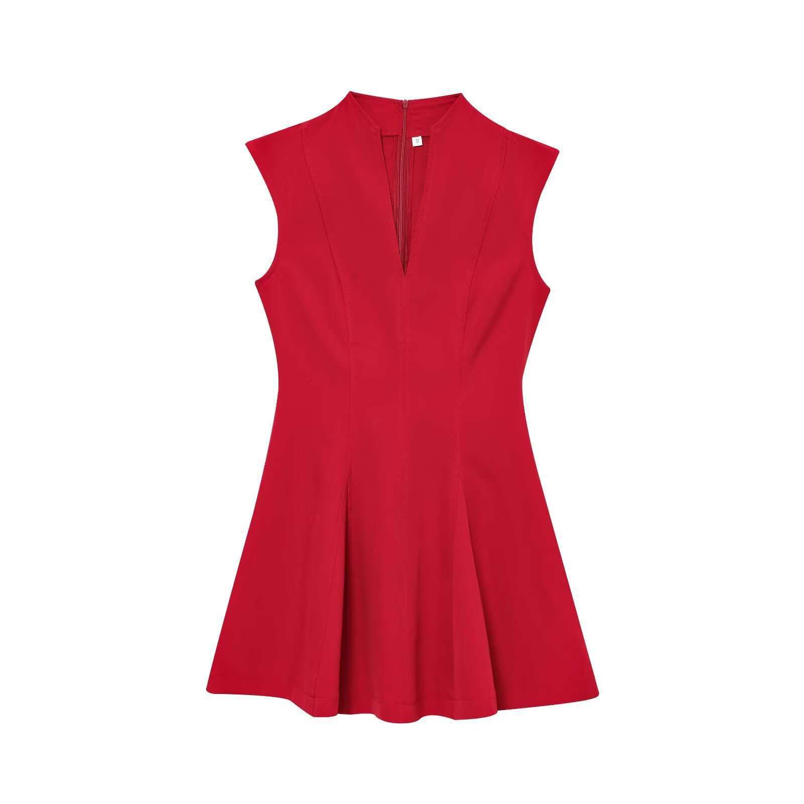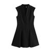 Nuevo Vestido Mini de Cintura con Cuello de Dobladillo Ancho sin Mangas Estilo Chaleco Crepé Transfronterizo de Onda Alta Estilo Europeo y Americano para Mujer
