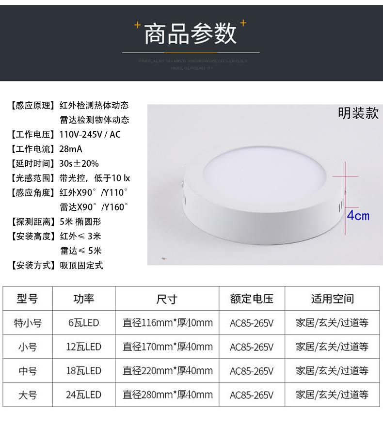 Led downlight de inducción de cuerpo humano montado en superficie sin agujeros pasillo corredor vestíbulo balcón radar techo techo lámpara de techo