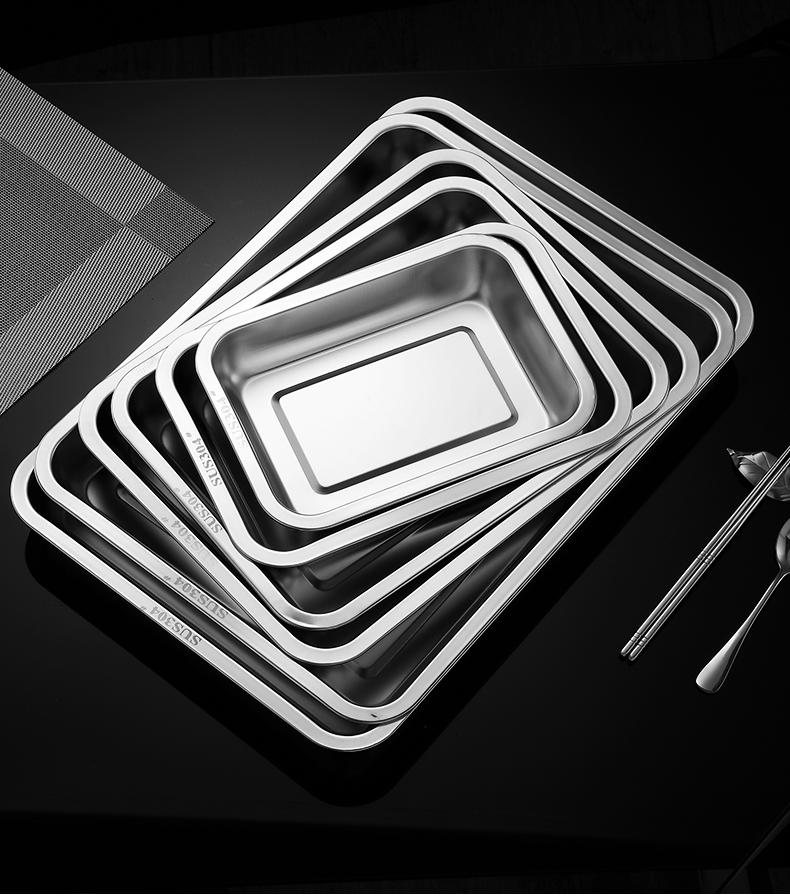 Bandeja de Acero Inoxidable 304 de Grado Alimenticio Plato para Pescado a la Parrilla Plato para Vaporizar Plato Doméstico Comercial Plato Rectangular de Hierro Plato Cuadrado