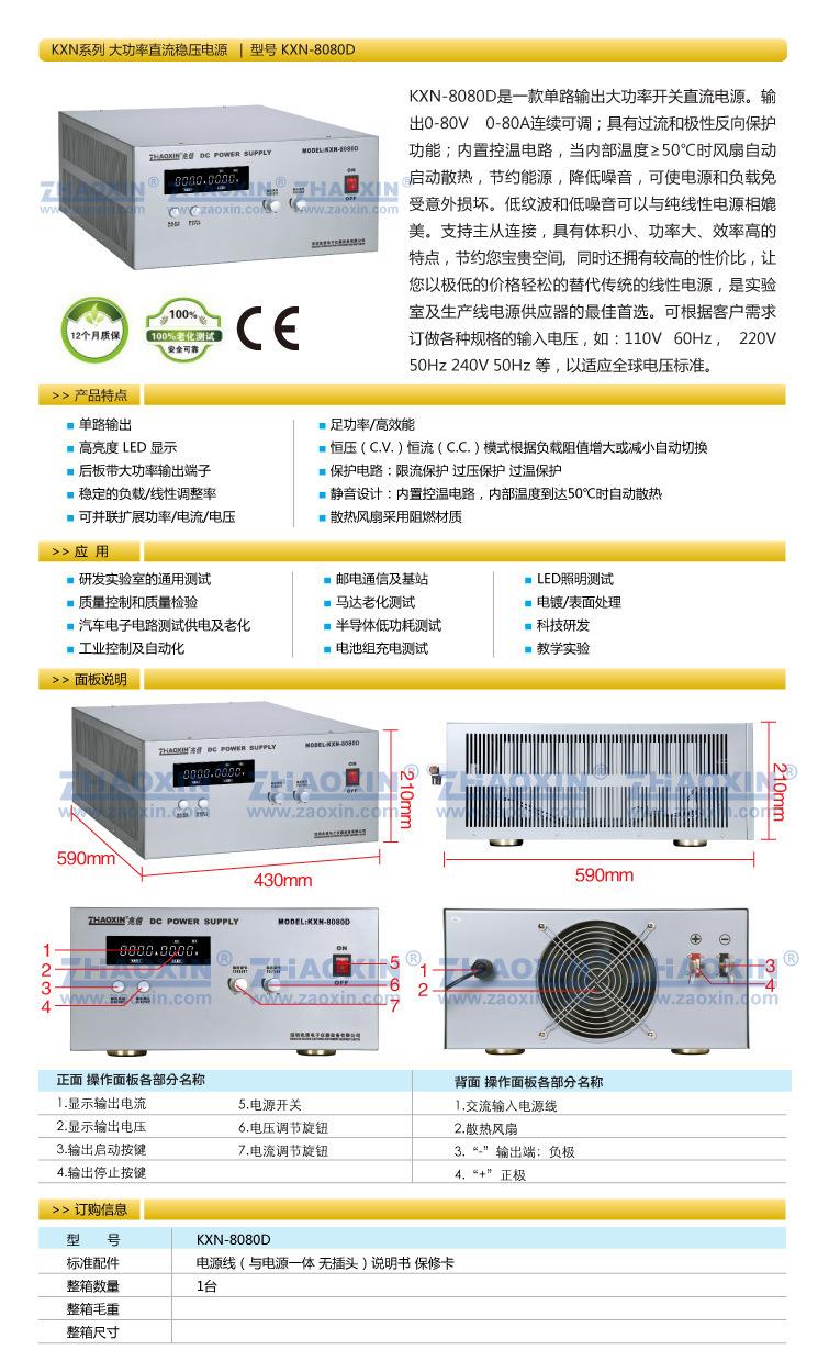 Fuente de alimentación de CC de alta potencia KXN-8080D, 0-80 V, 0-80 A, con recubrimiento de envejecimiento de CC ajustable, fuente de alimentación de corriente constante.