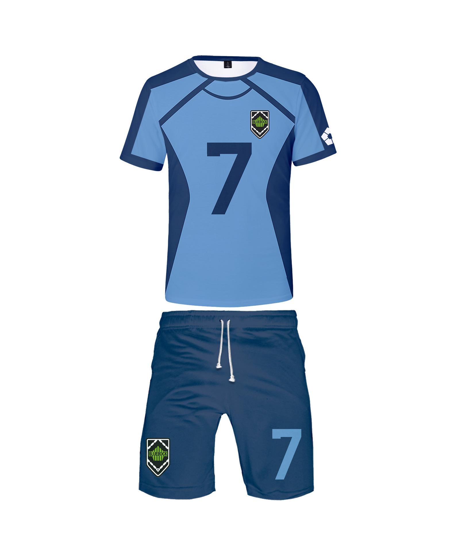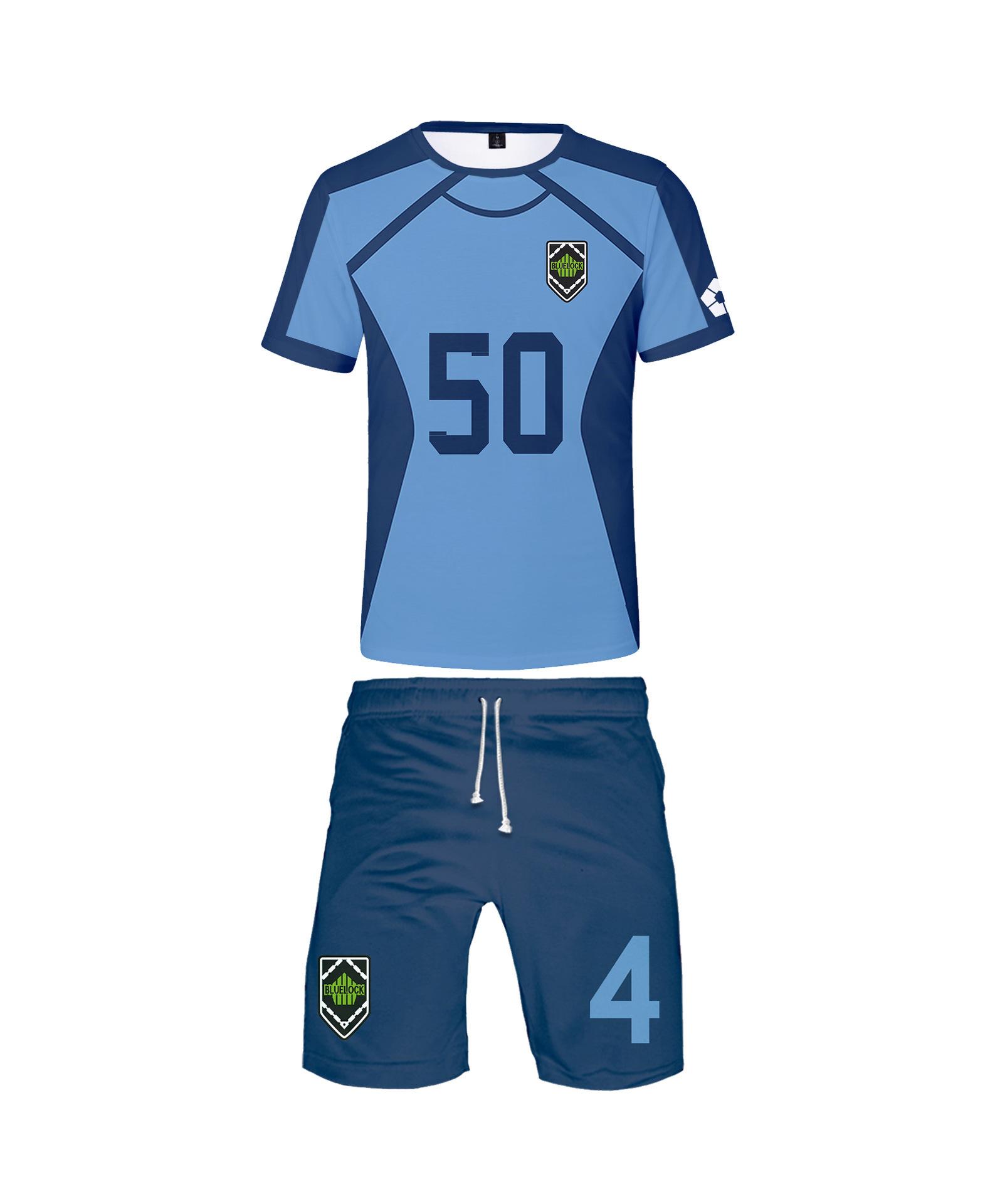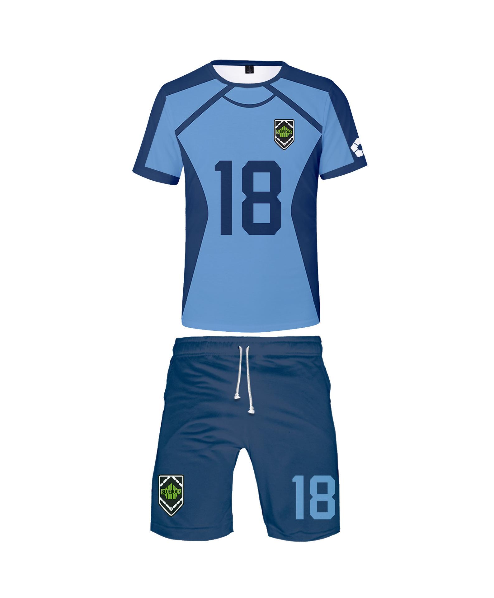 Pantalones cortos holgados de manga corta para hombre y mujer con estampado digital de prisión azul circundante de Amazon Ri Man BLUE LOCK transfronterizo