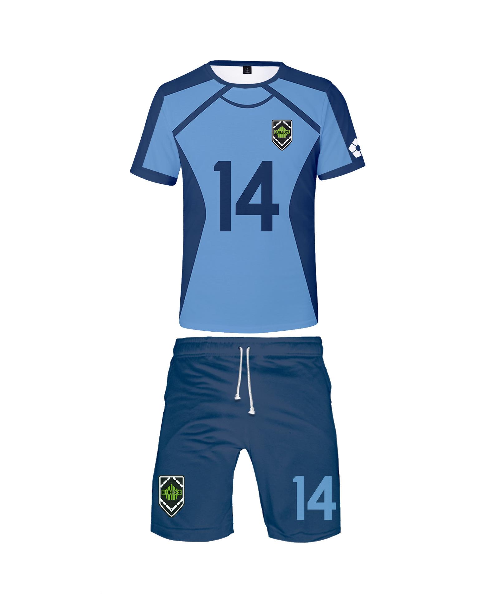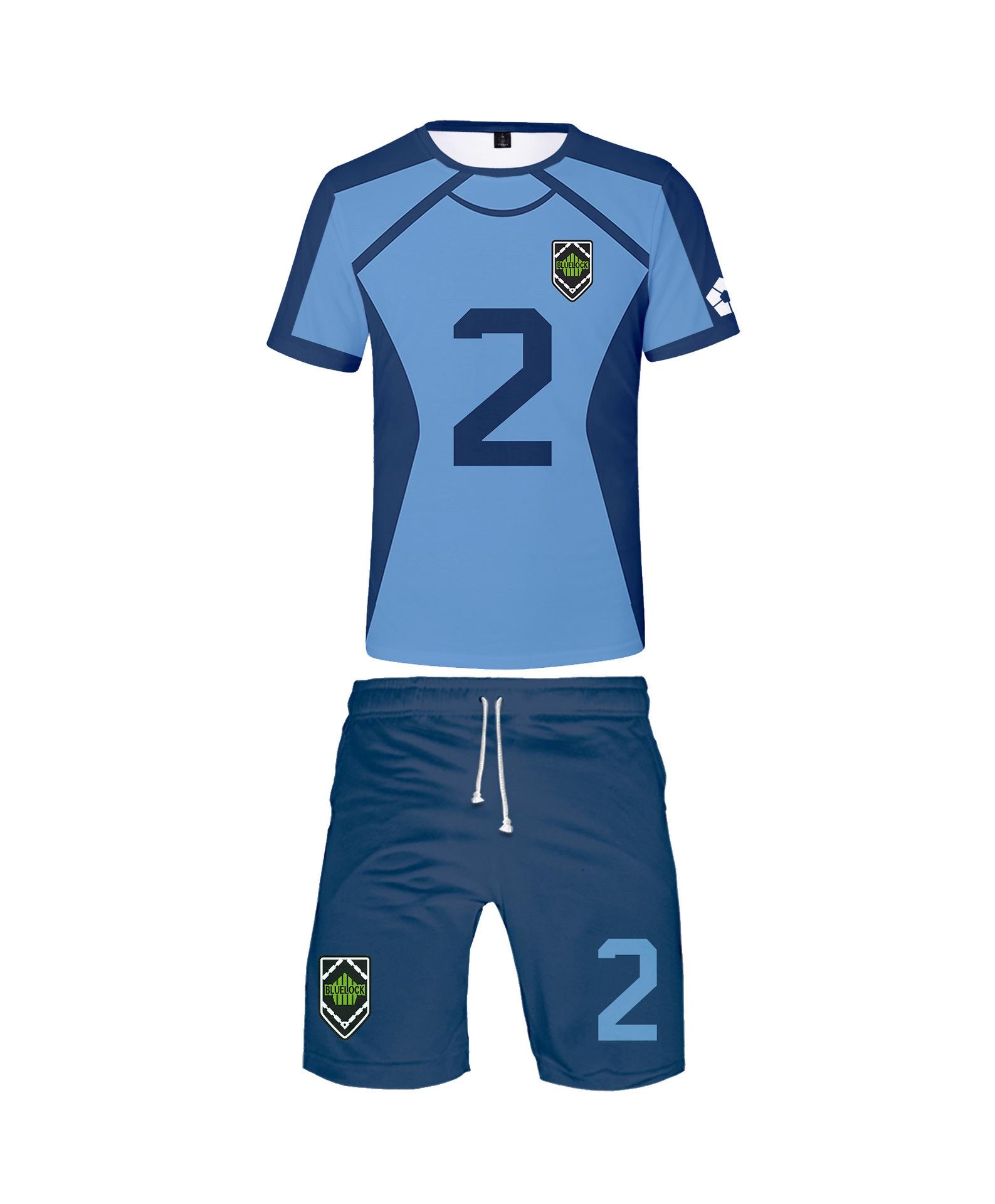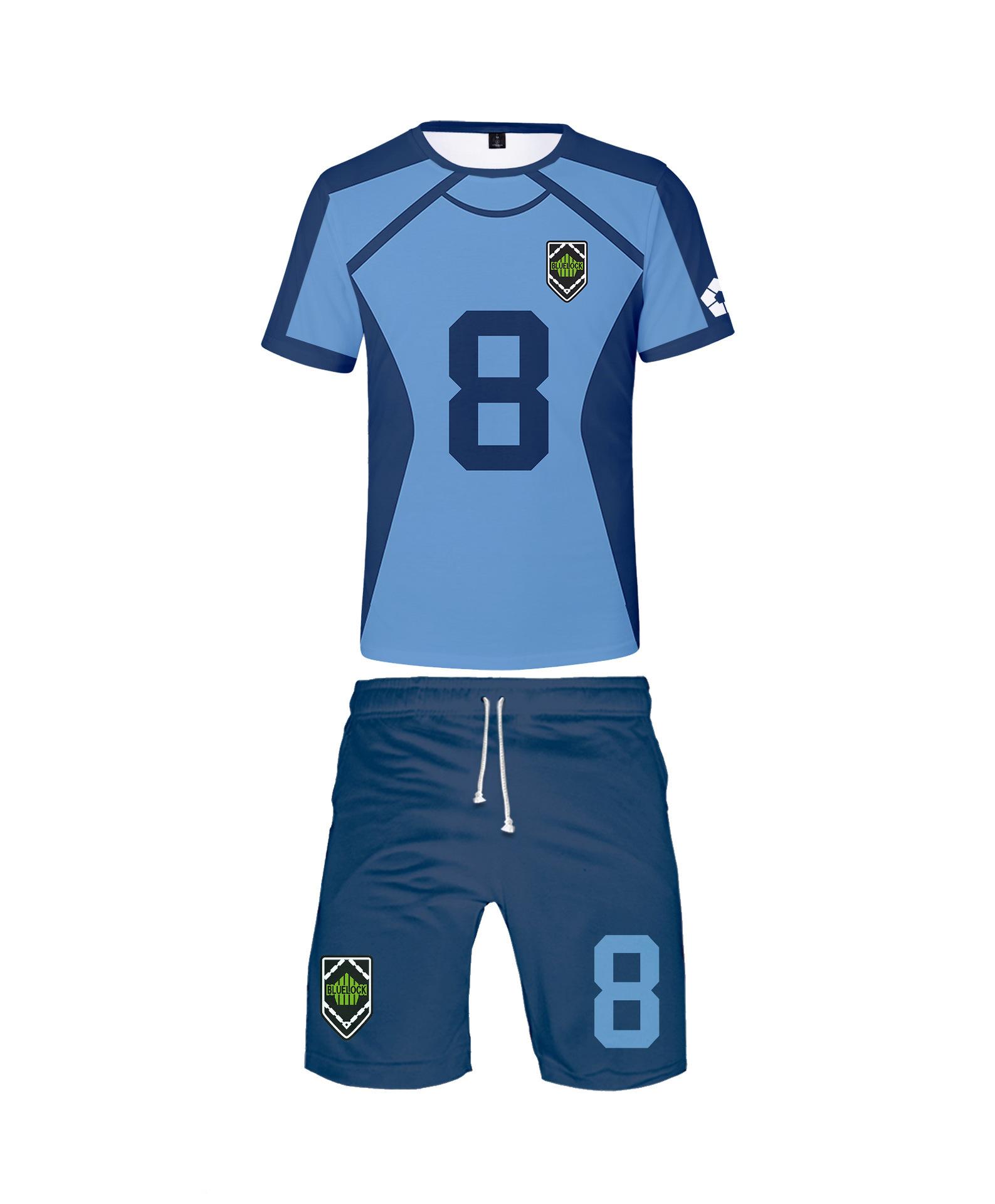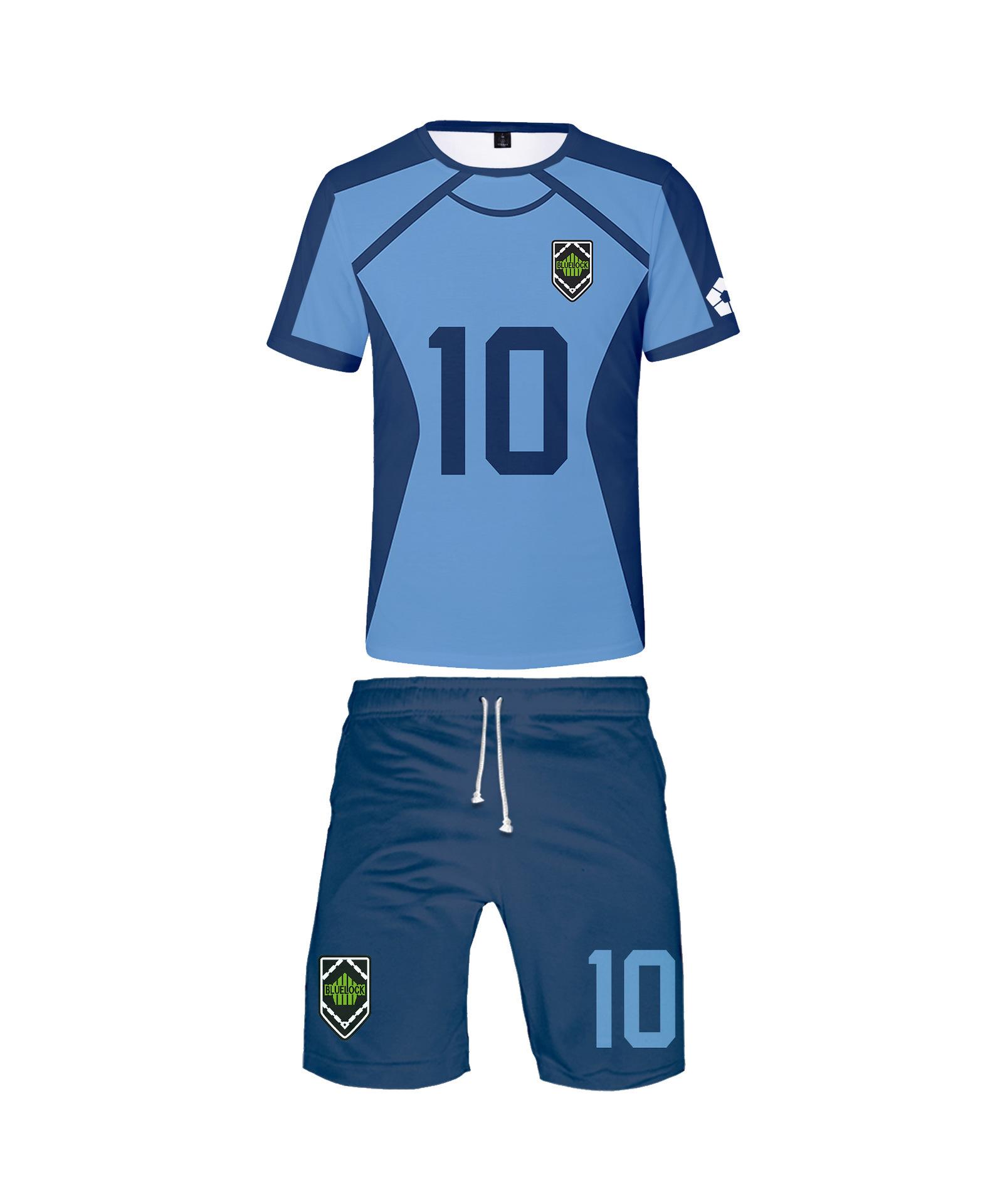 Pantalones cortos holgados de manga corta para hombre y mujer con estampado digital de prisión azul circundante de Amazon Ri Man BLUE LOCK transfronterizo