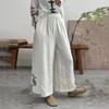 Pantalones de Verano Delgados Cortos de Pierna Ancha para Mujer 2025 Nuevo Bordado Artístico Retro Estilo Étnico Pantalones Casuales Holgados