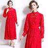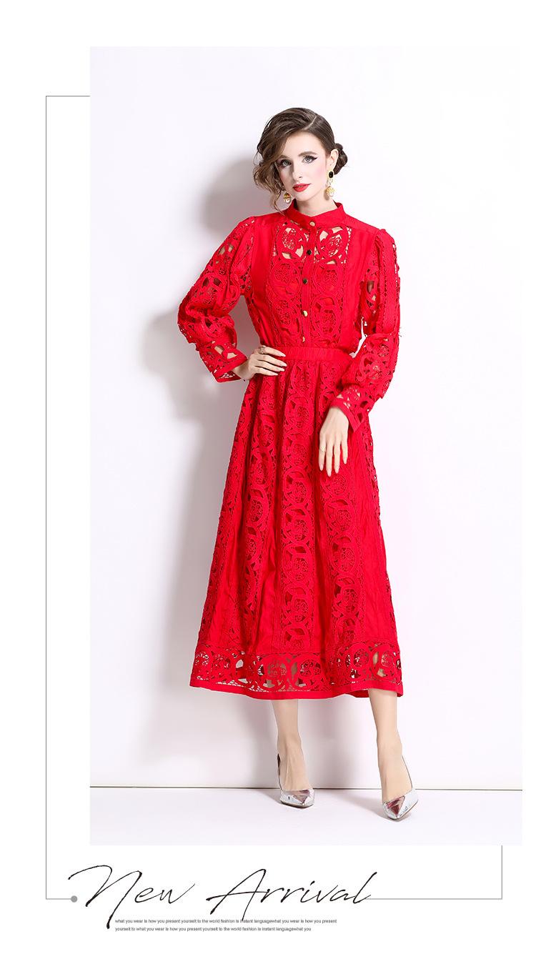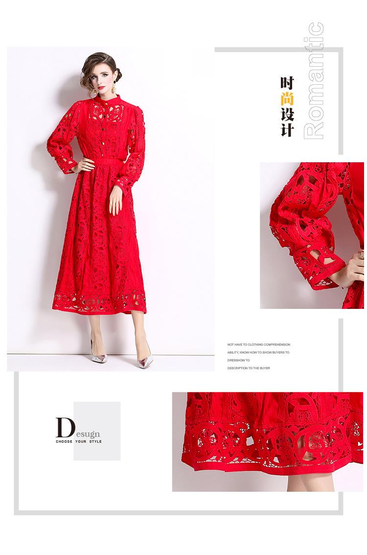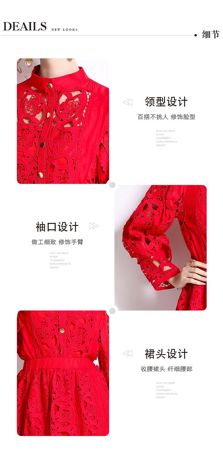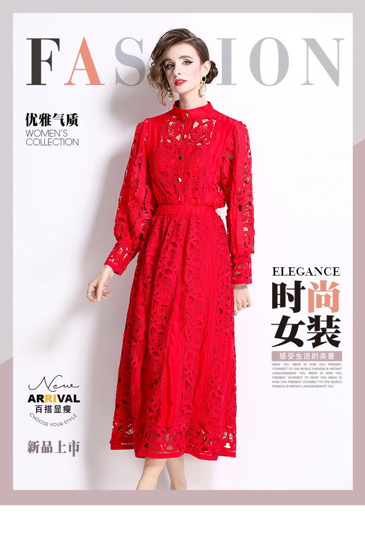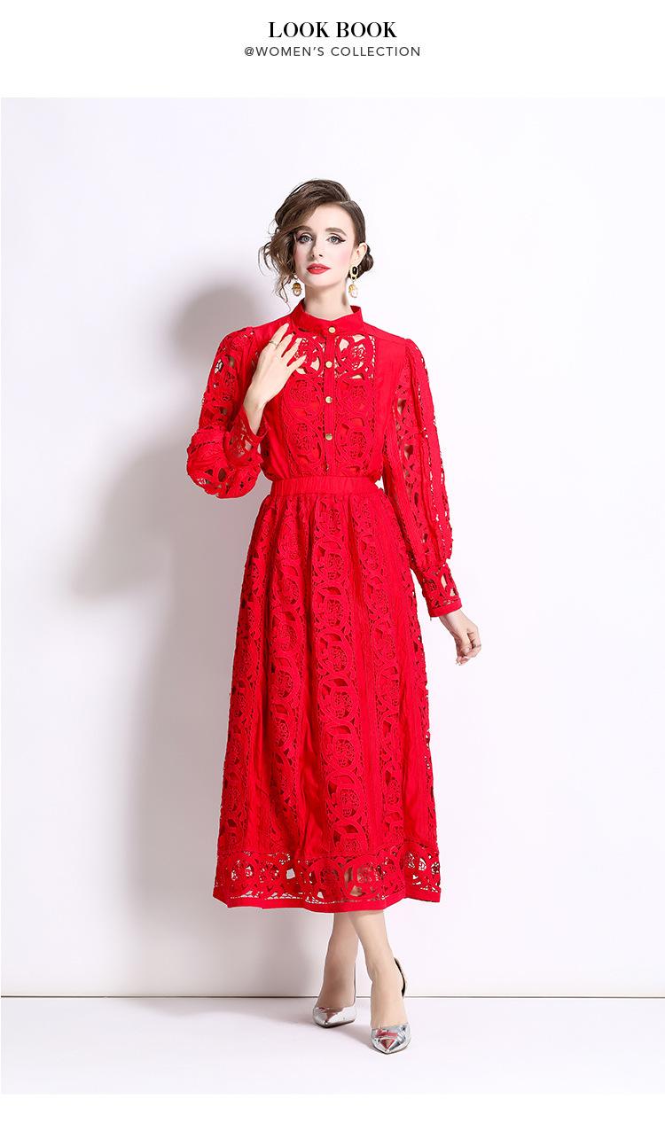 Moda transfronteriza 2024 nuevo temperamento francés top de encaje calado falda de cintura elástica conjunto de dos piezas