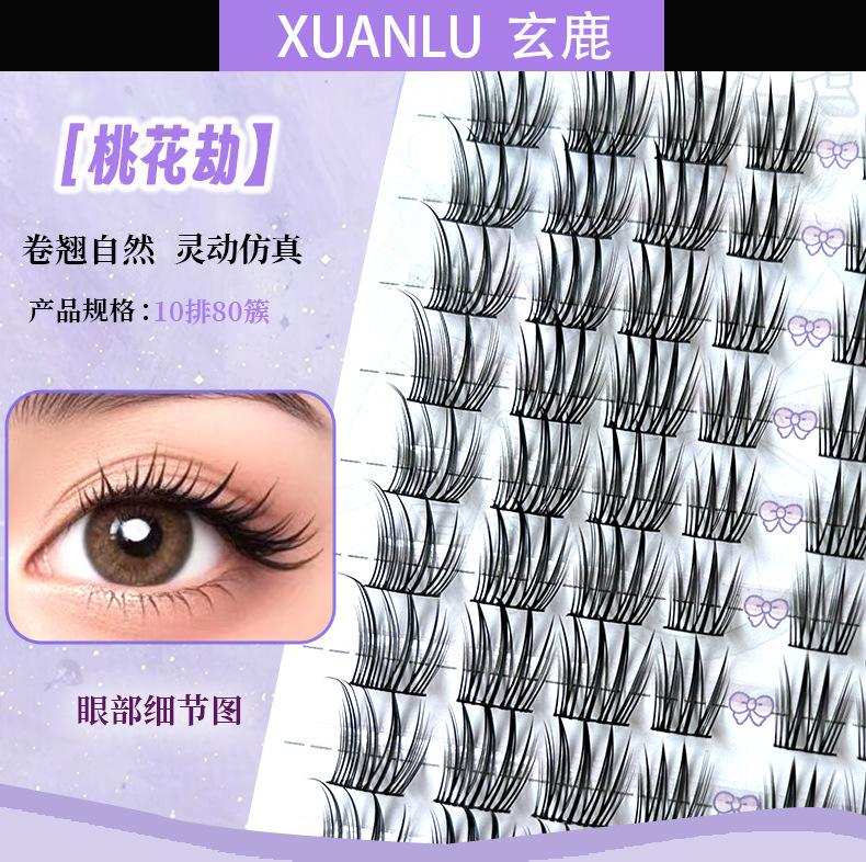 [xuanlu peach blossom fake eyelashes]-10 rows of 80 clusters-single box
