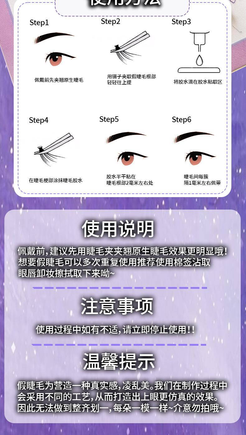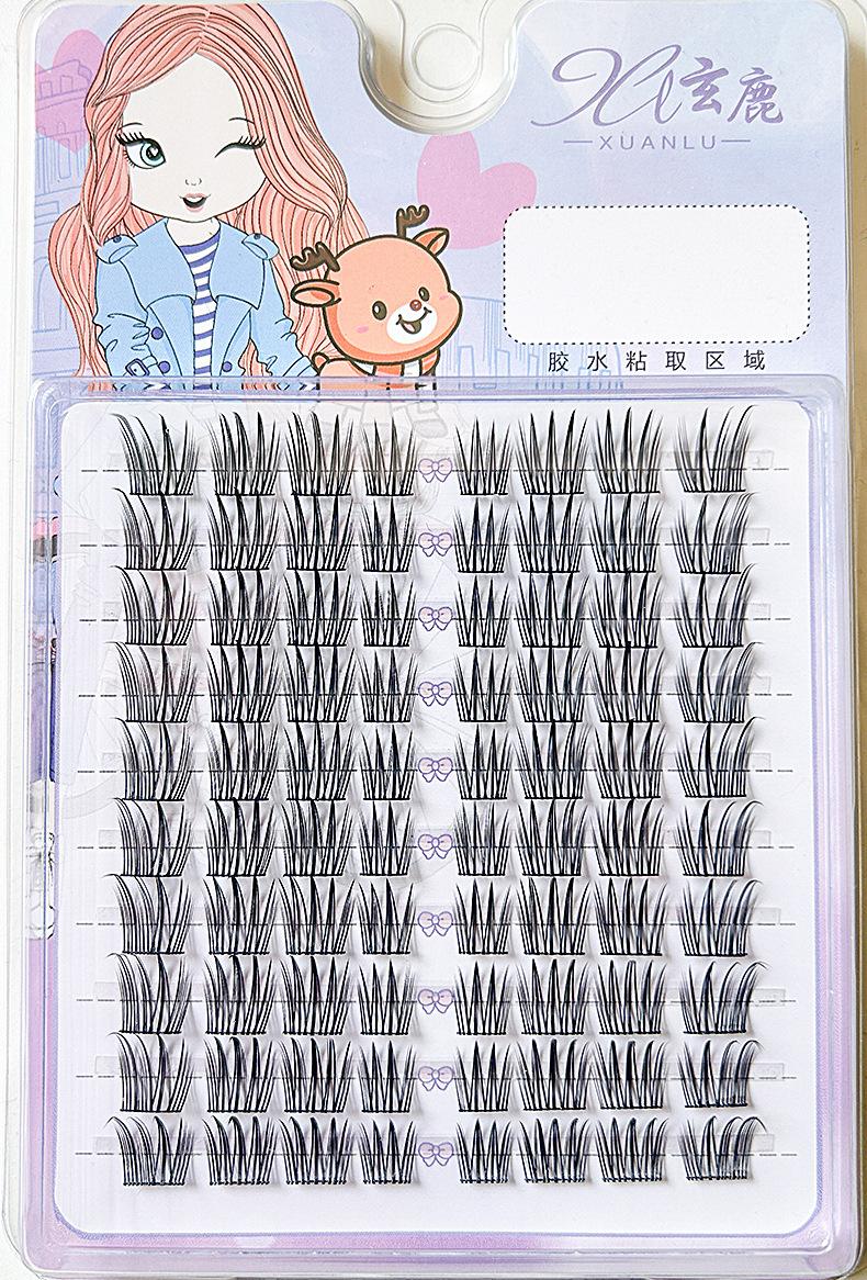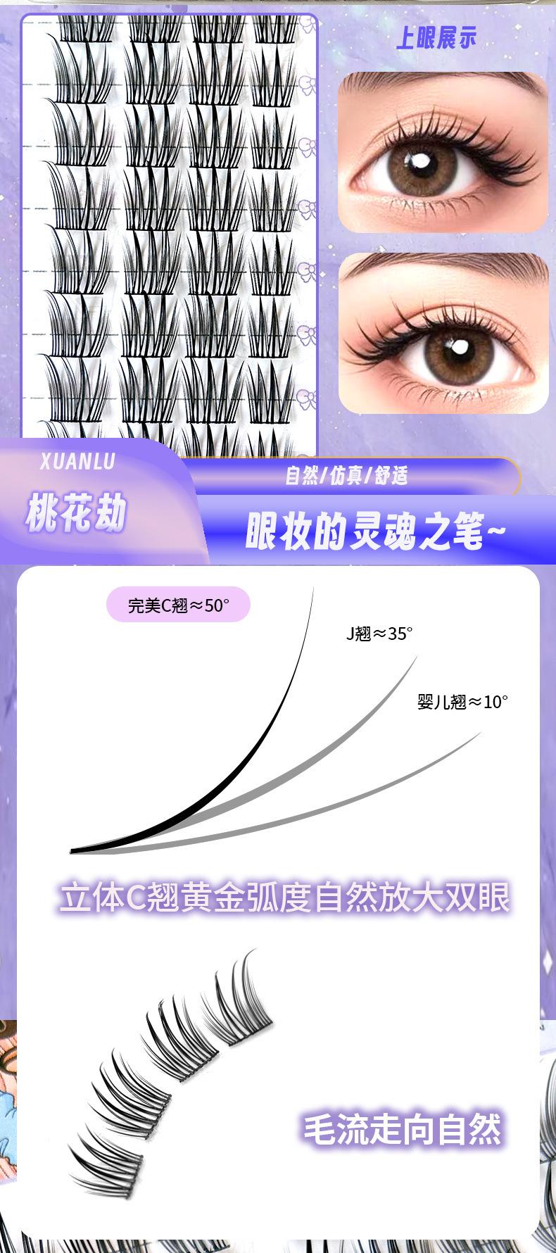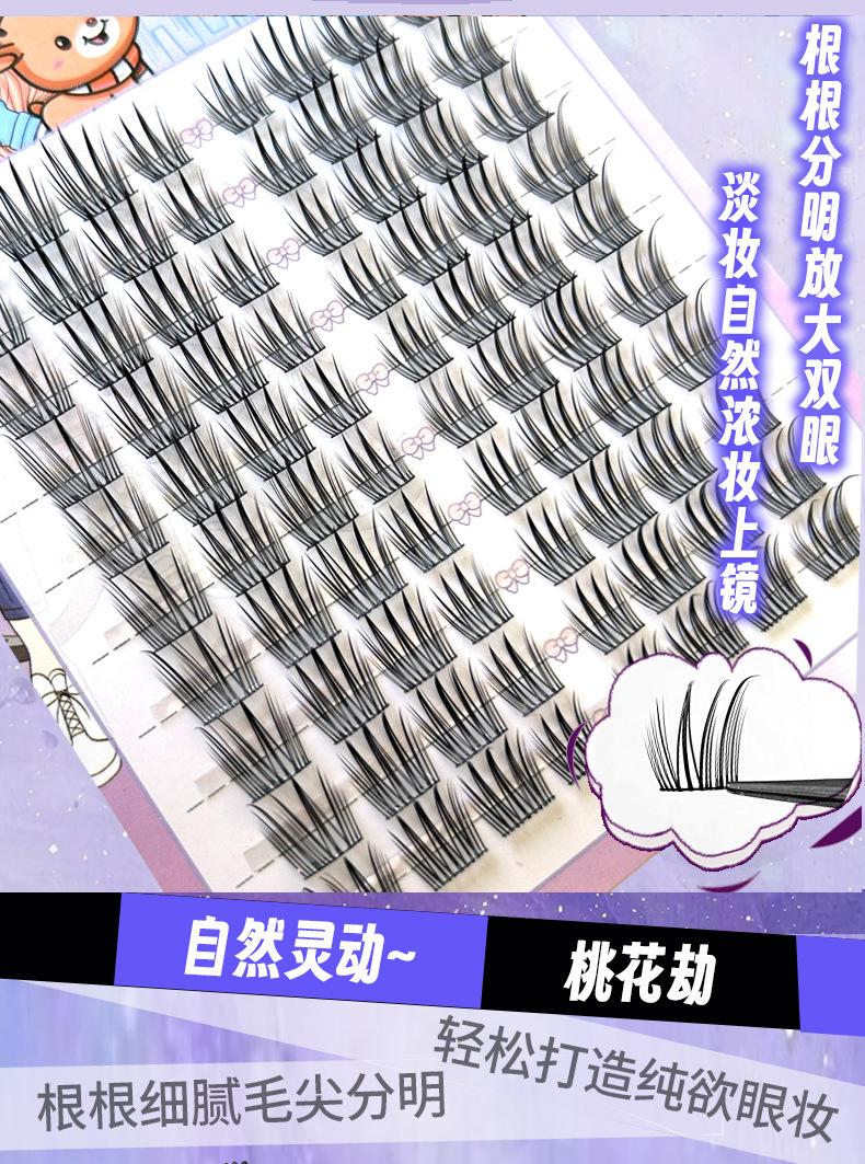 [xuanlu peach blossom fake eyelashes] - 10 rows of 80 clusters - single box + glue + tweezers
