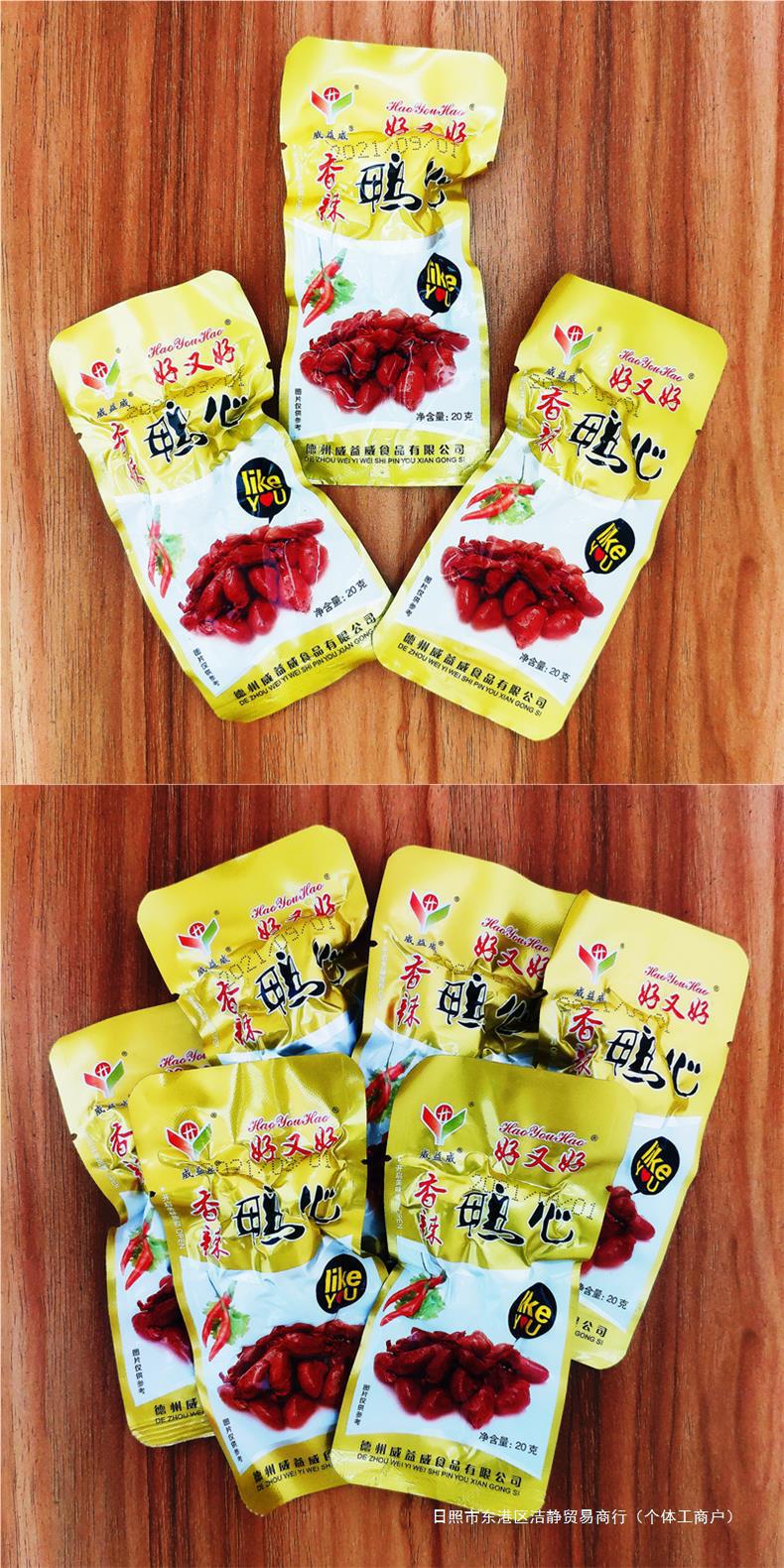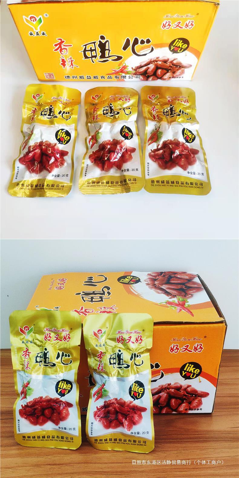 Bocadillos de corazón de pato picante Haohao, hígado de pato, callos crujientes, aperitivos delicatessen estofados listos para comer, corazones de pollo Texas Wei Yi Wei