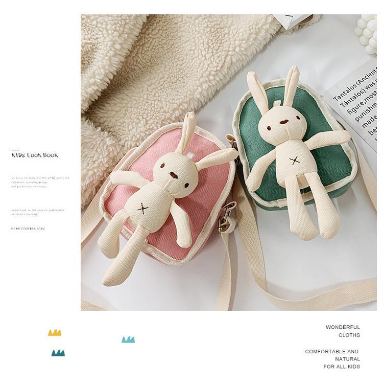 Lindo bolso de dibujos animados para niños, bolso bandolera para niñas, bolso de lona para niños, bolso pequeño de conejo, monedero para niños