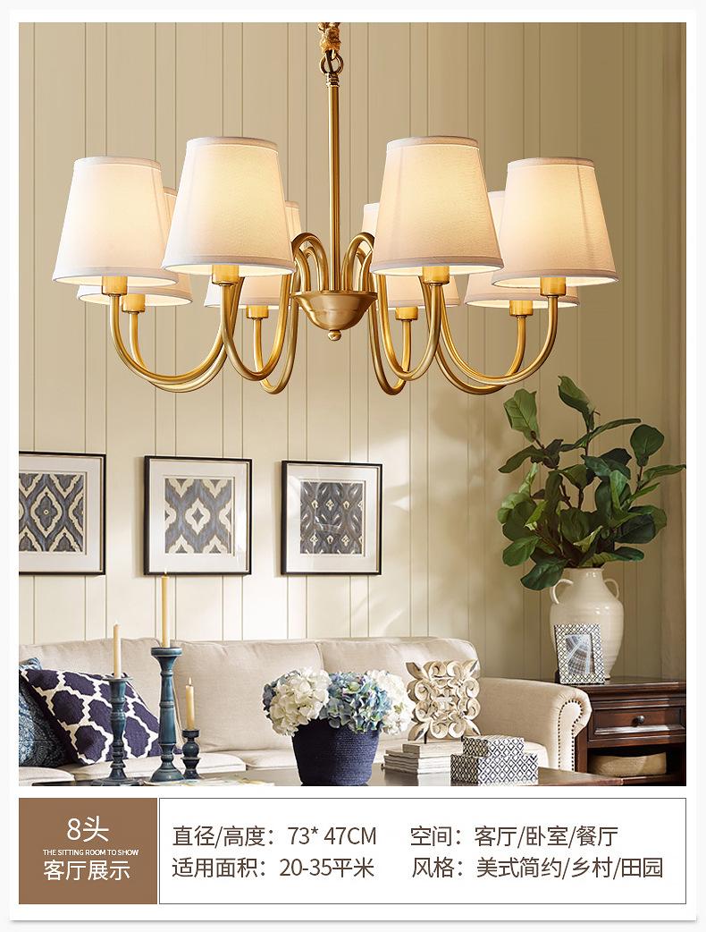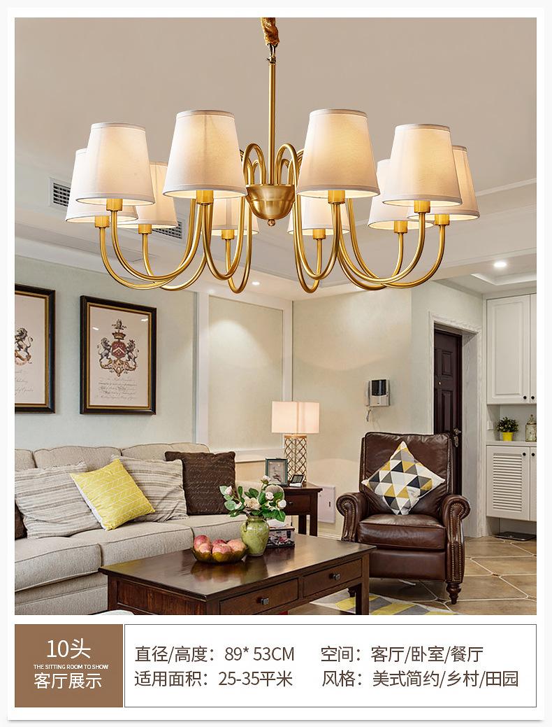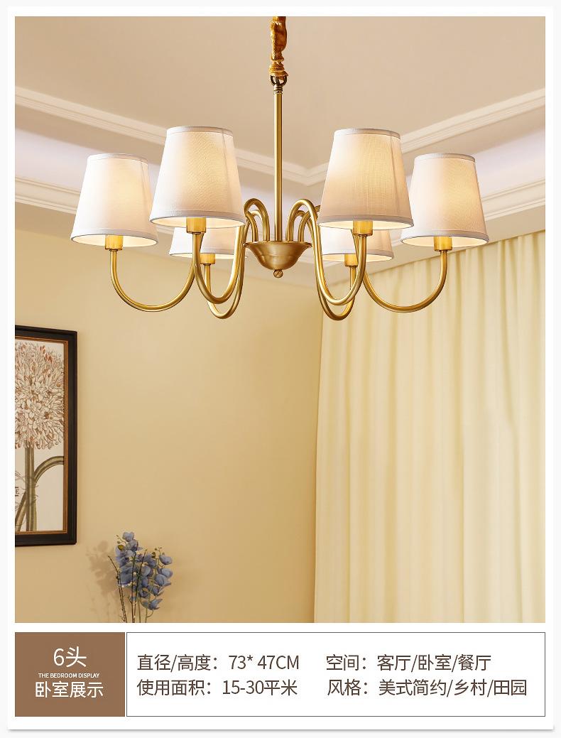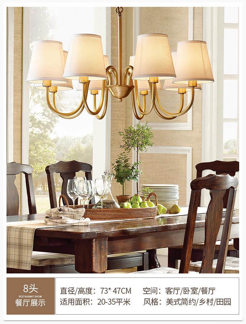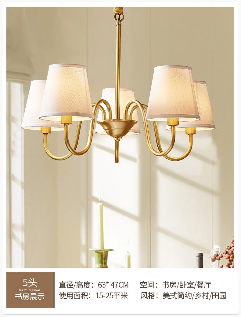 Candelabro americano de cobre de espectro completo lámpara de sala de estar simple moderna lámpara de dormitorio de restaurante lámpara de hogar elegante retro europea