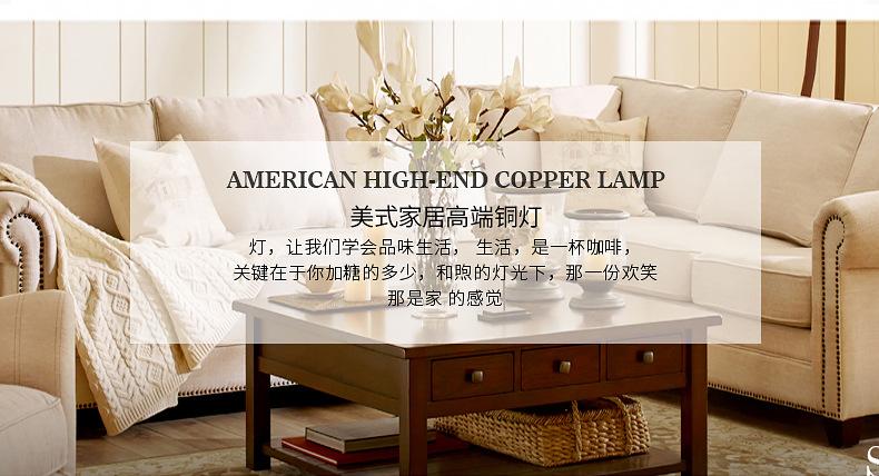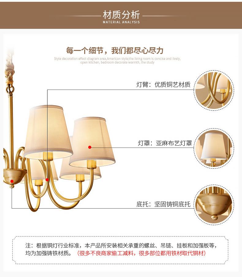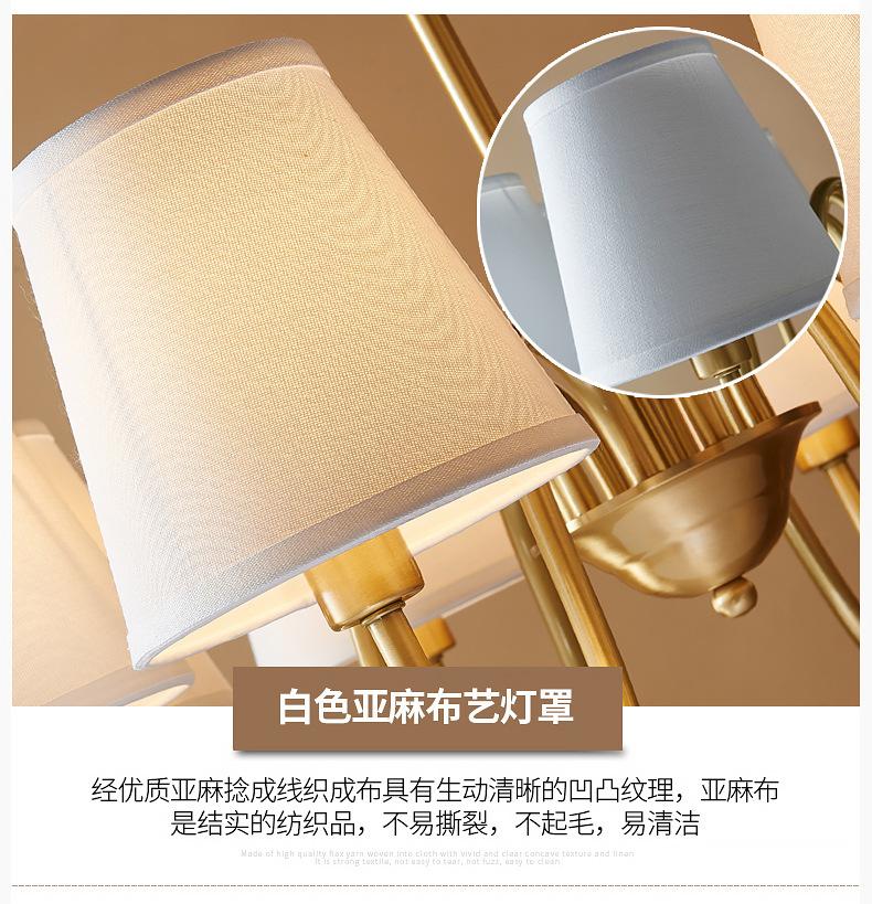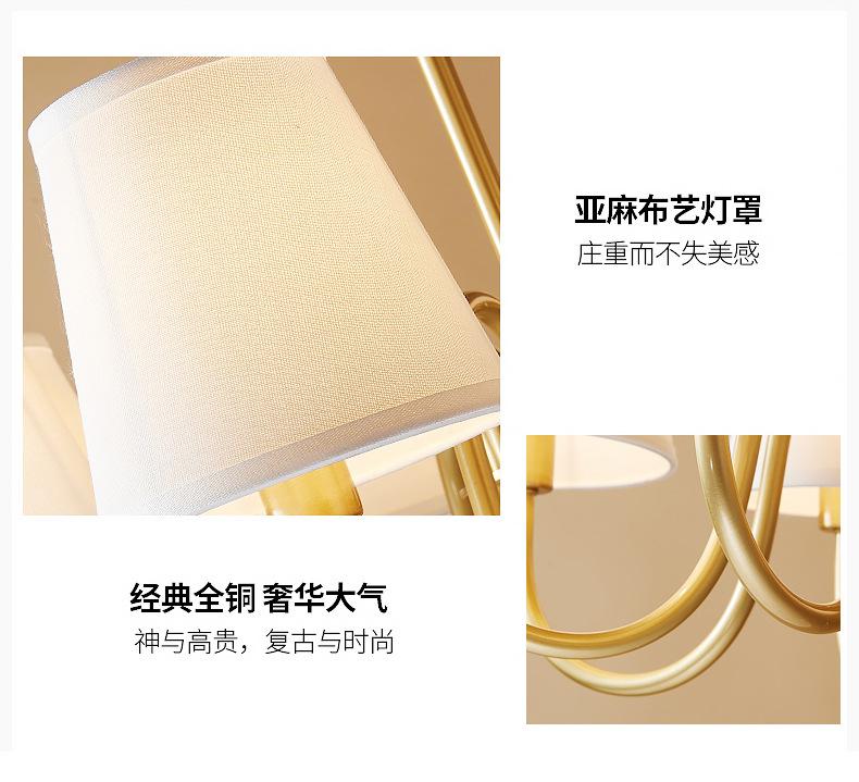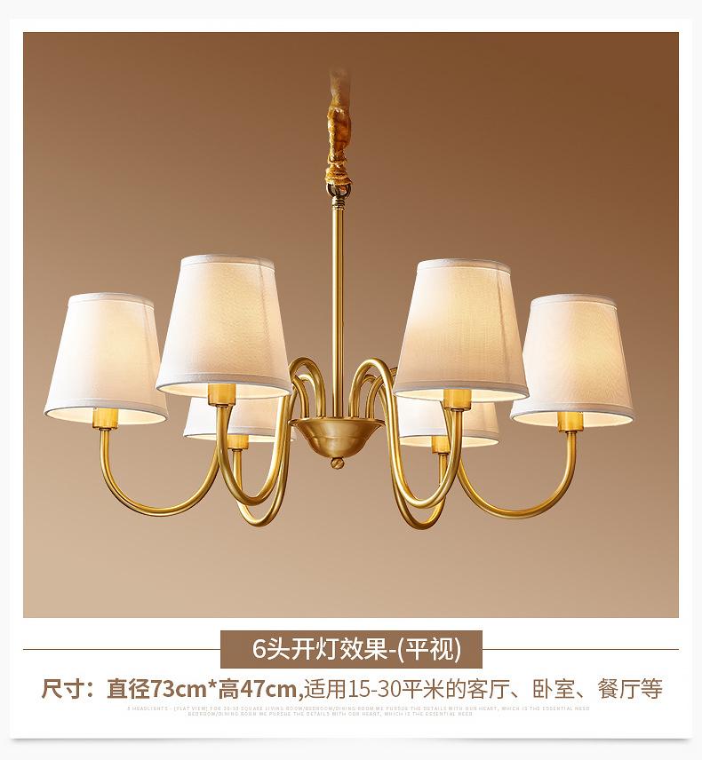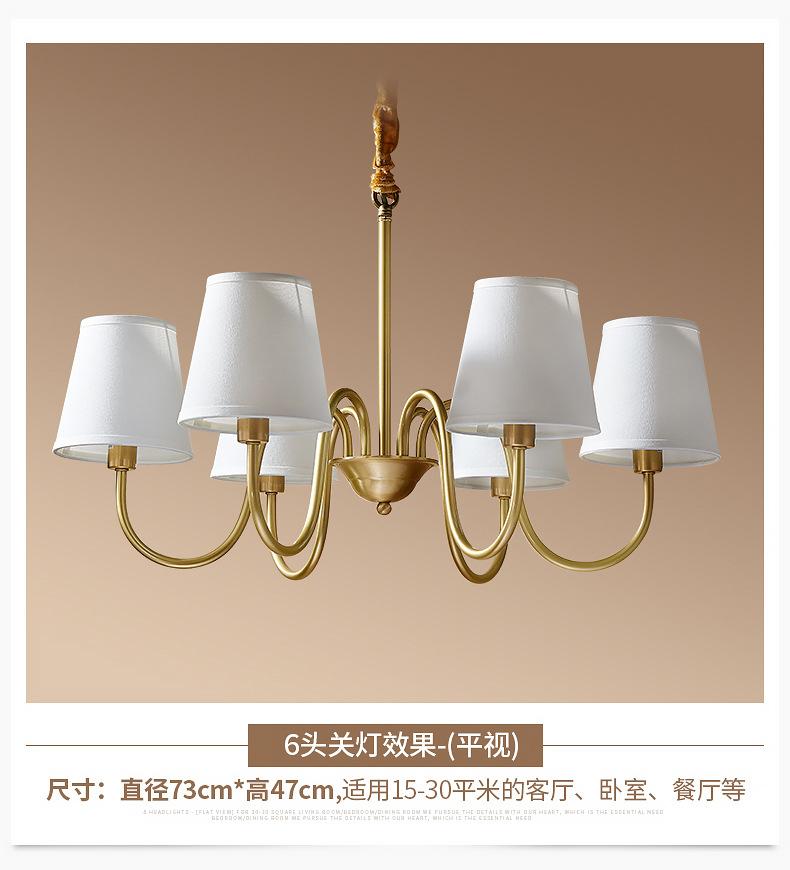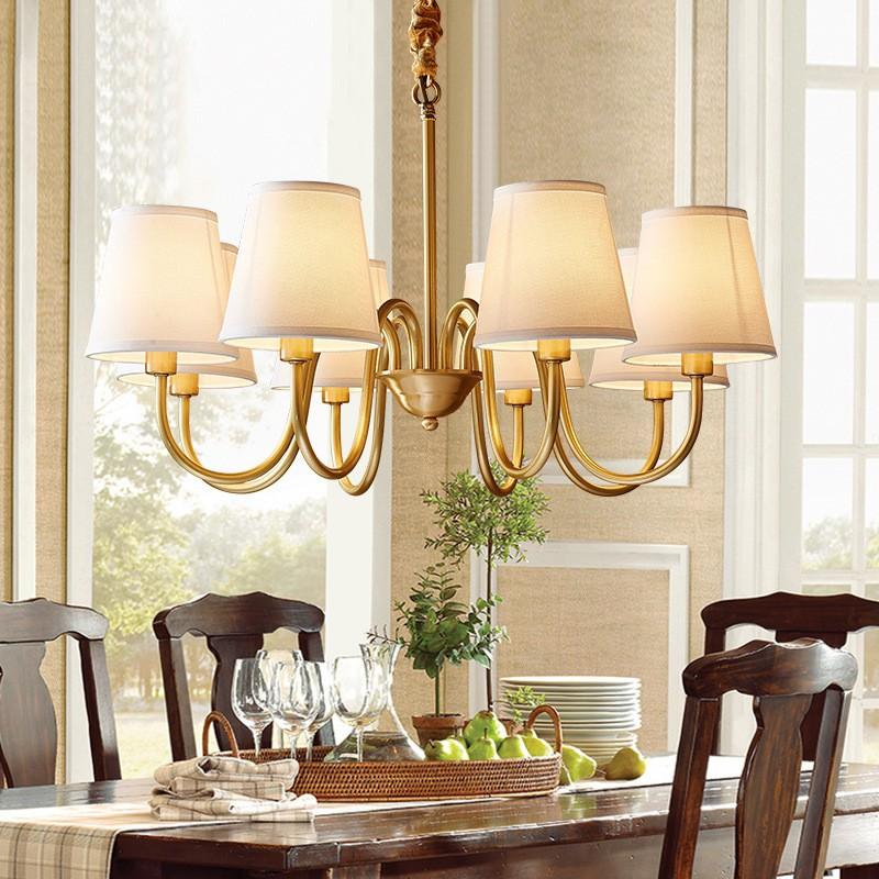 Candelabro americano de cobre de espectro completo lámpara de sala de estar simple moderna lámpara de dormitorio de restaurante lámpara de hogar elegante retro europea