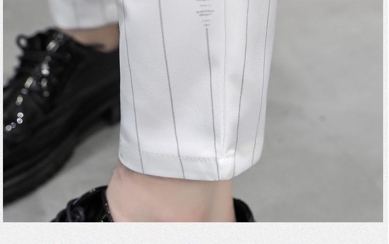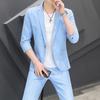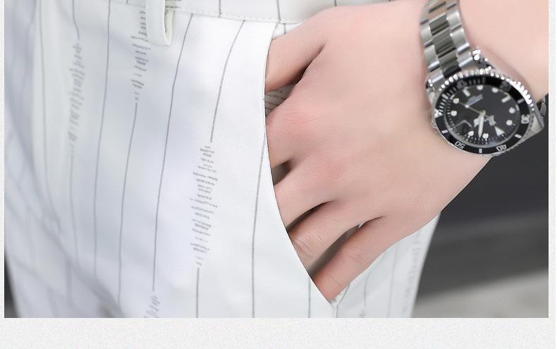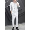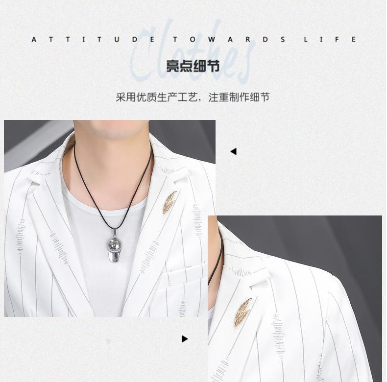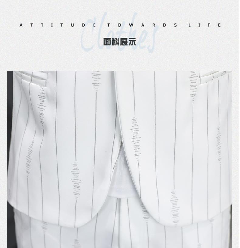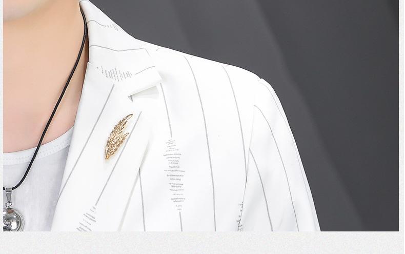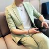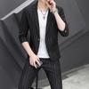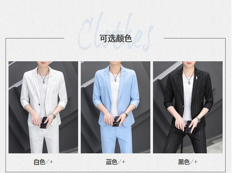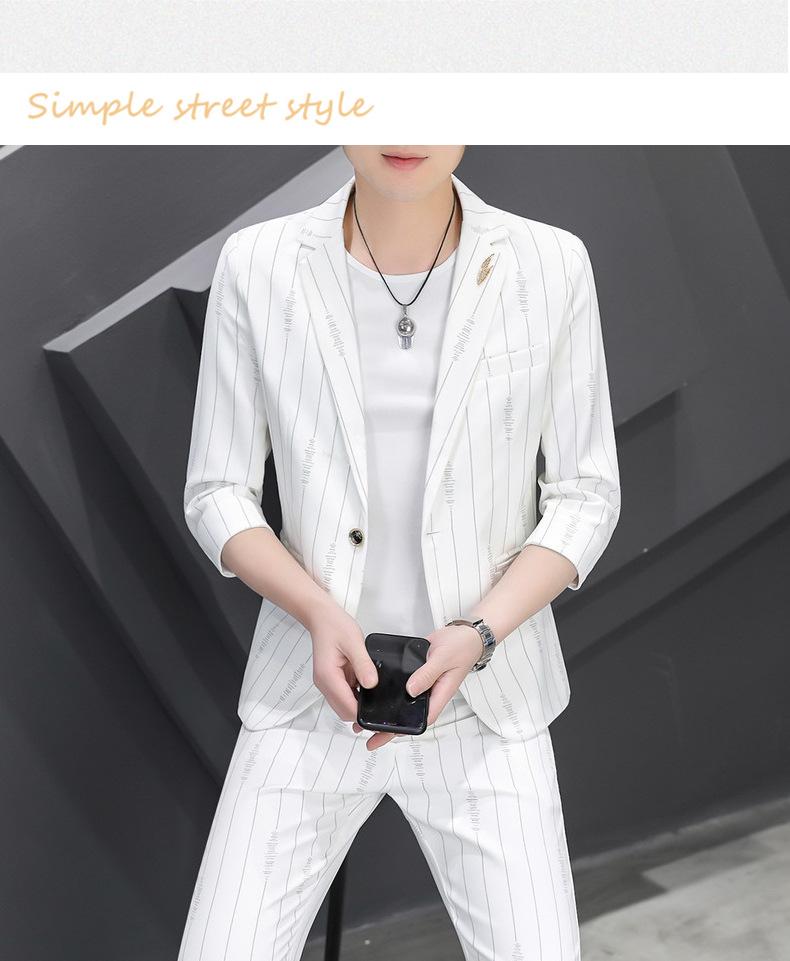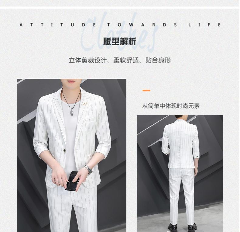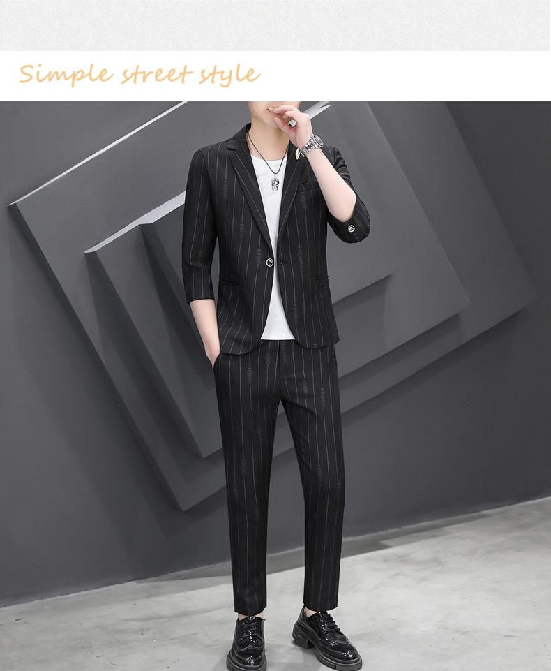 Traje de verano para hombre, traje informal fino a rayas de manga media, chaqueta para hombre, traje de dos piezas ajustado estilo coreano