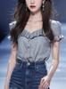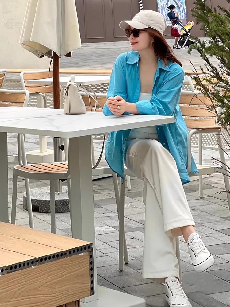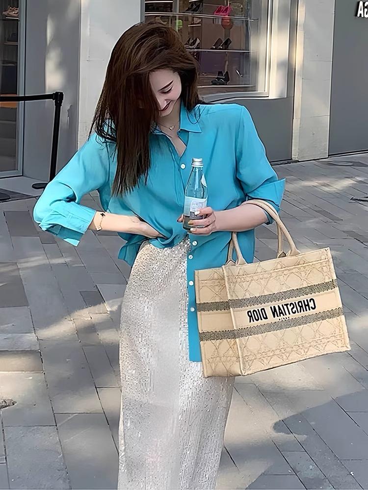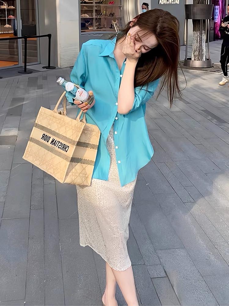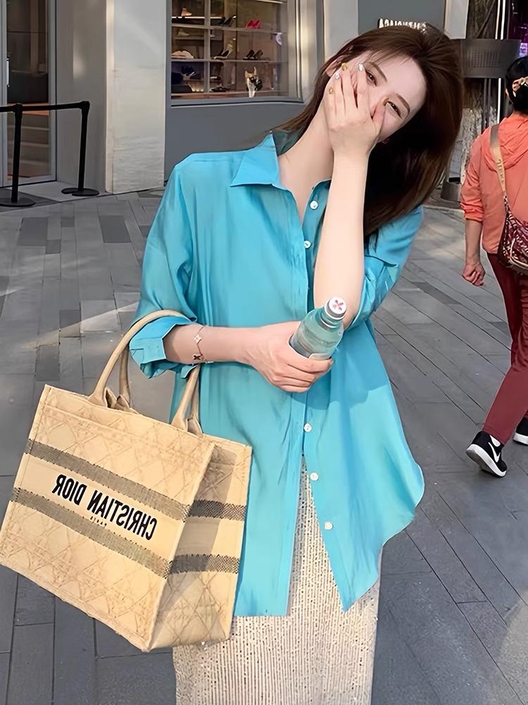 Camisas Hermosas Populares de Este Año 2025 Nuevas Camisas Femeninas de Gasa Tops Delgados de Verano Camisas Azules de Protección Solar