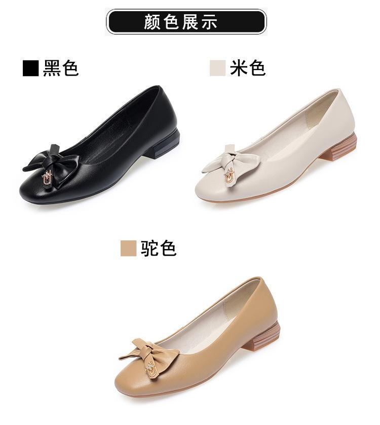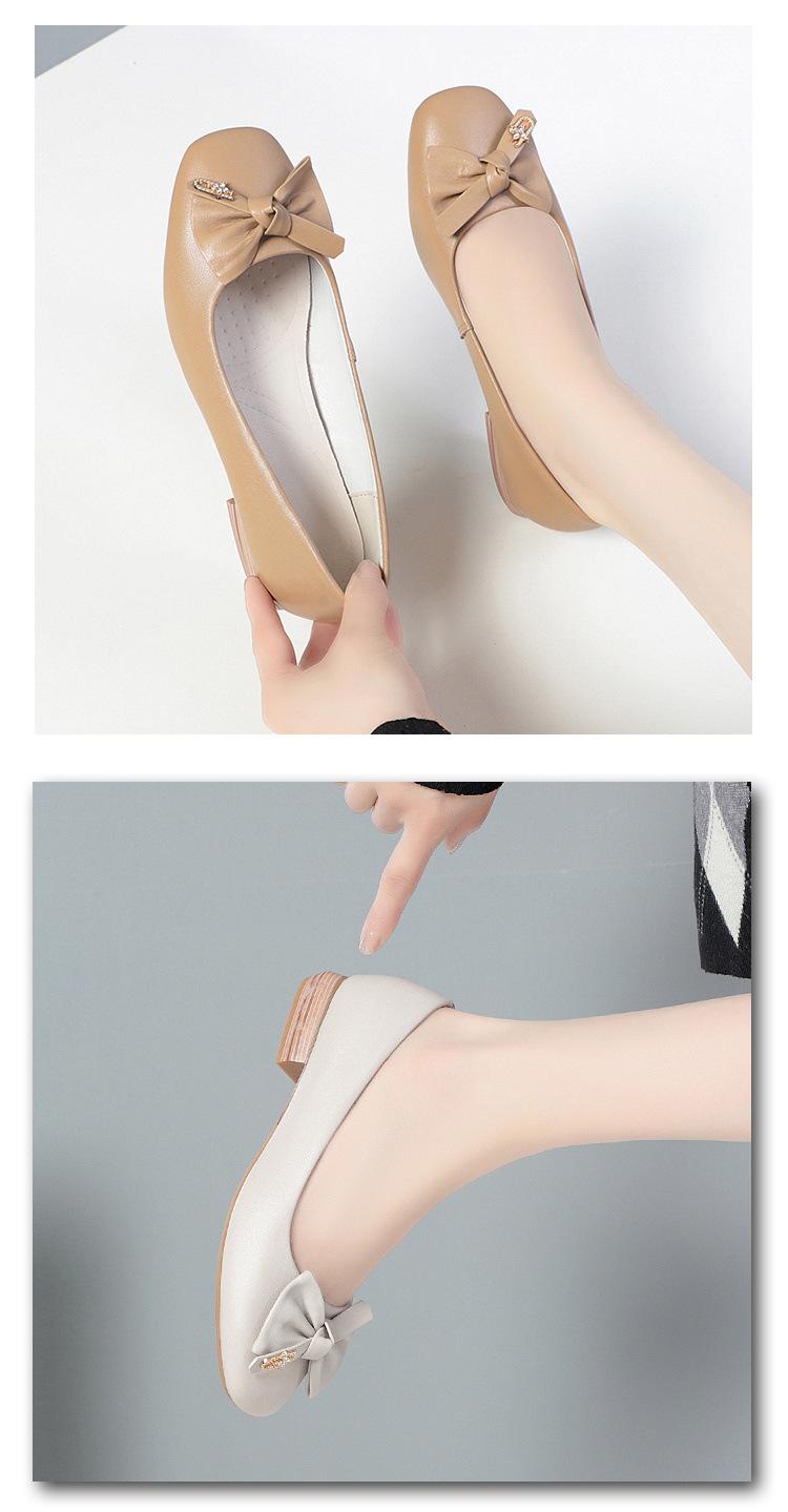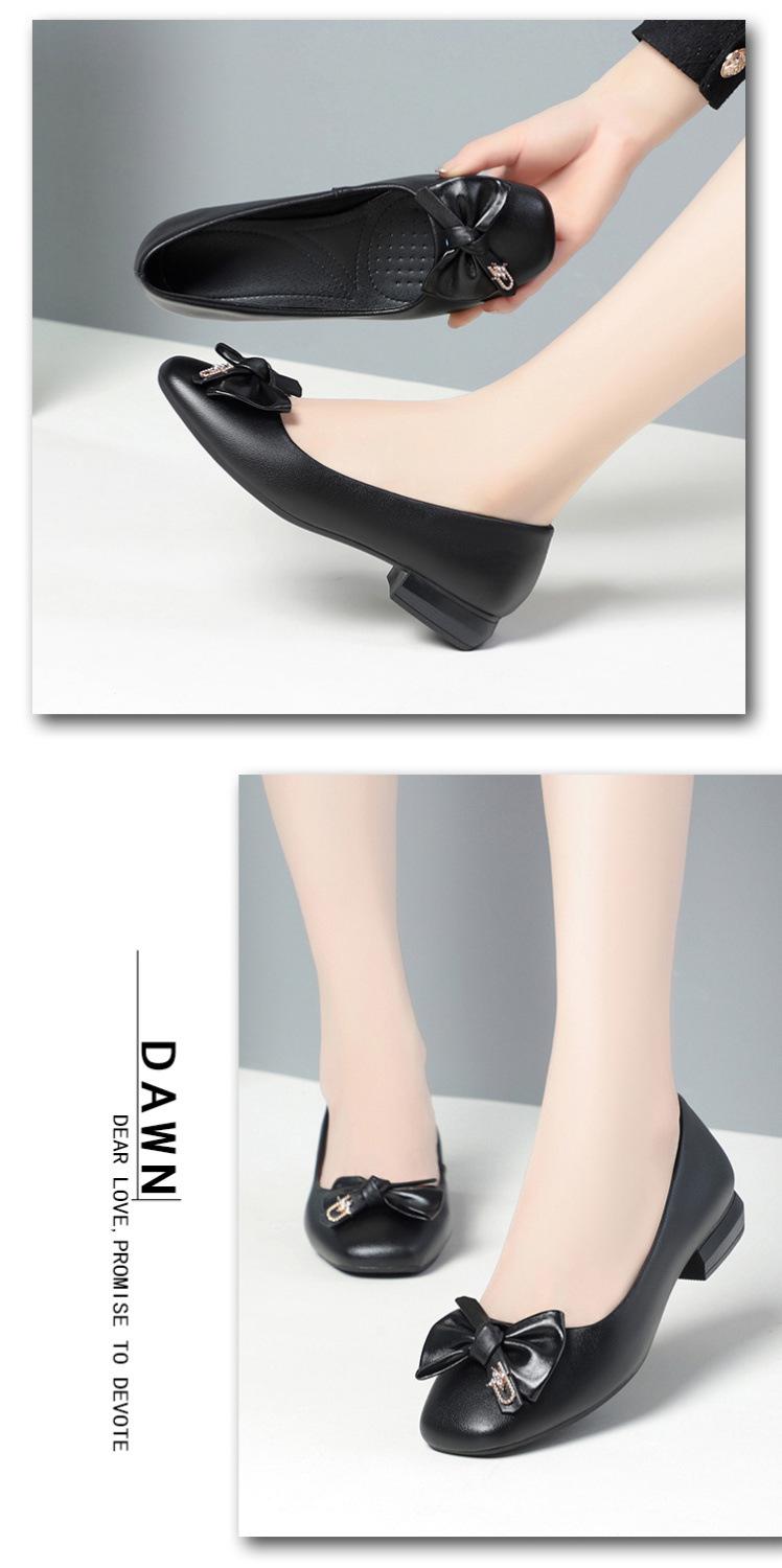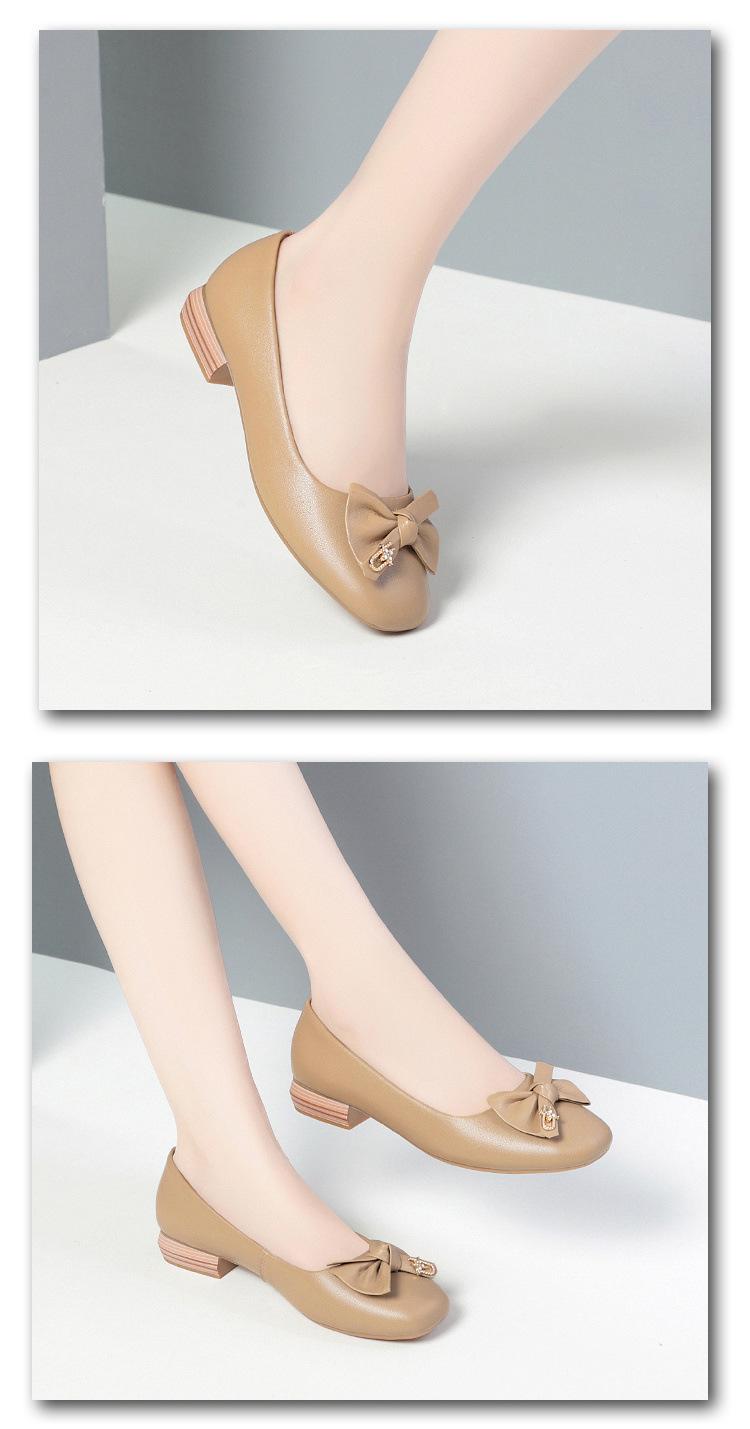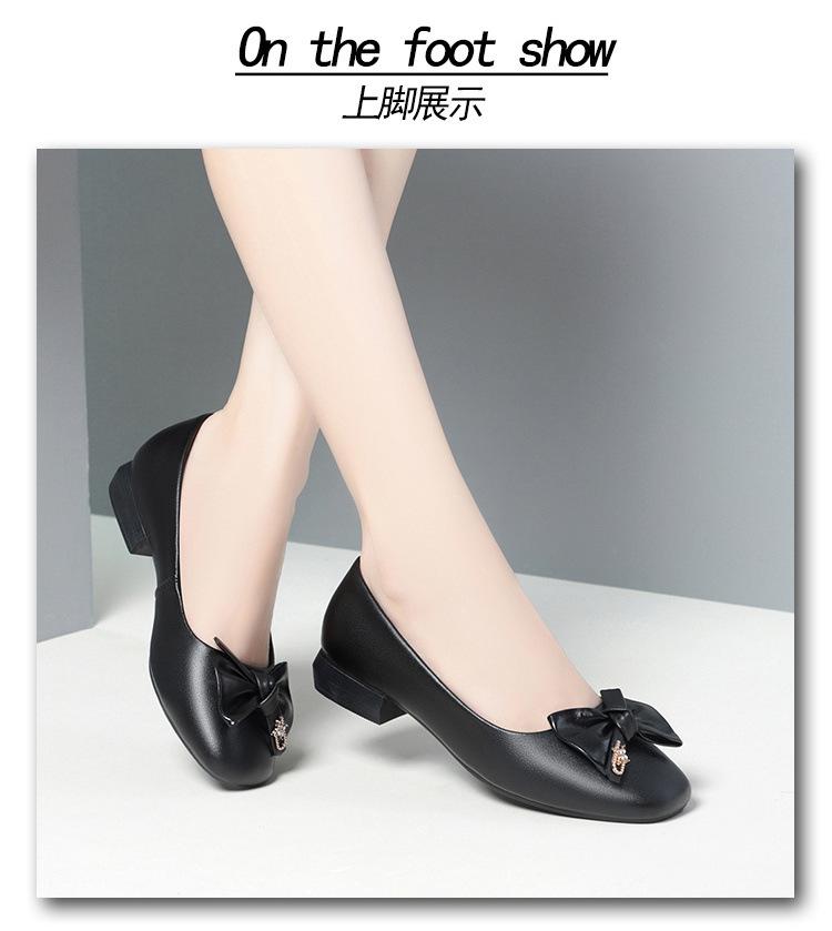Otoño Nuevo Zapatos de Mujer de Cuero Genuino de Tacón Bajo Antideslizantes Zapatos Tipo Beanie Versátiles Zapatos de Mujer Talla Grande Zapatos de Madre