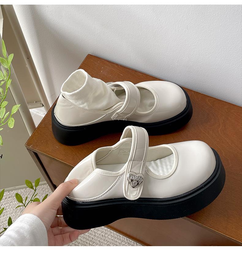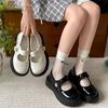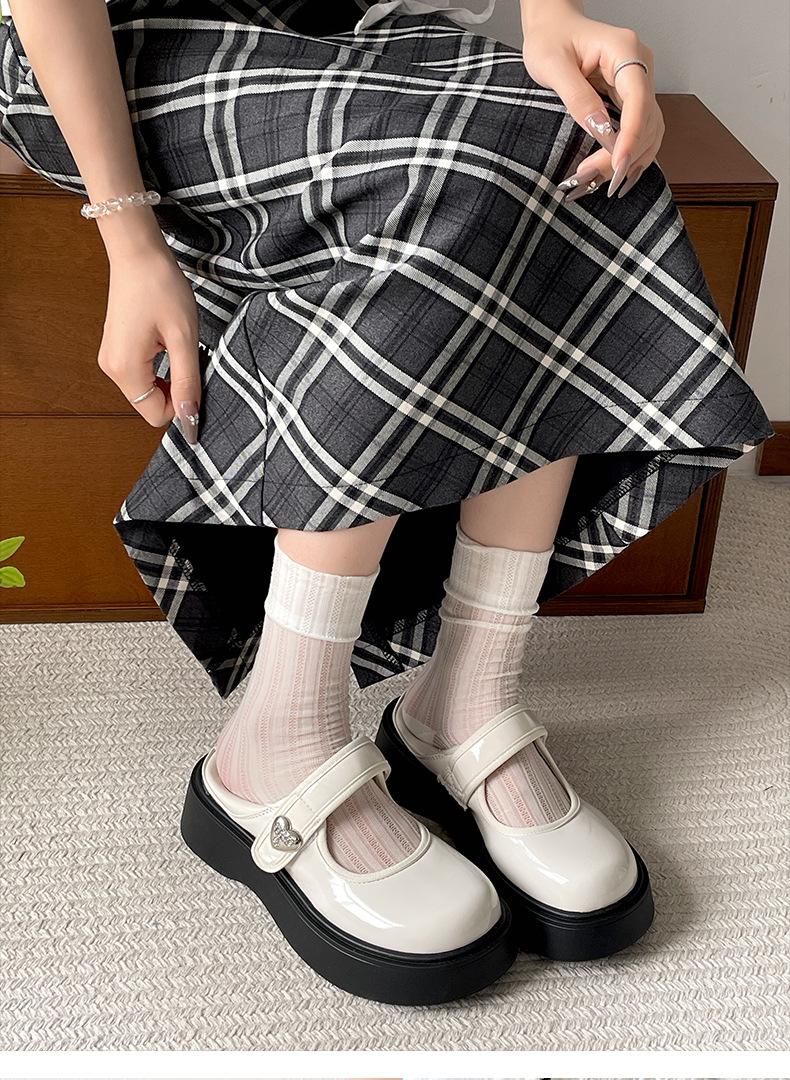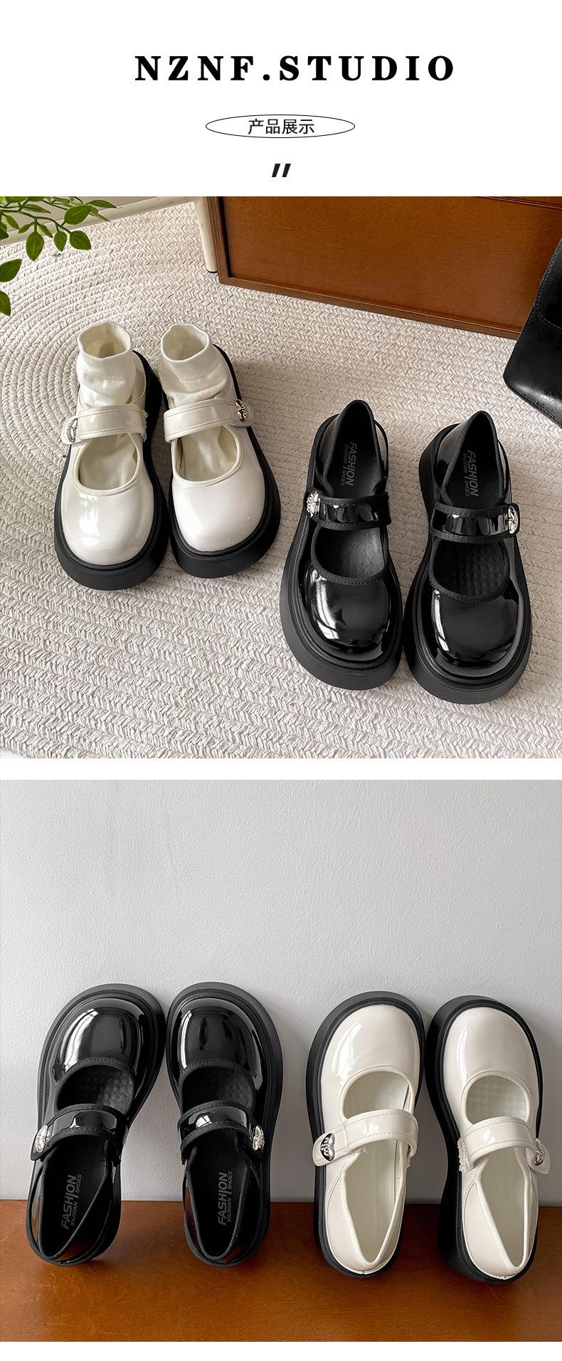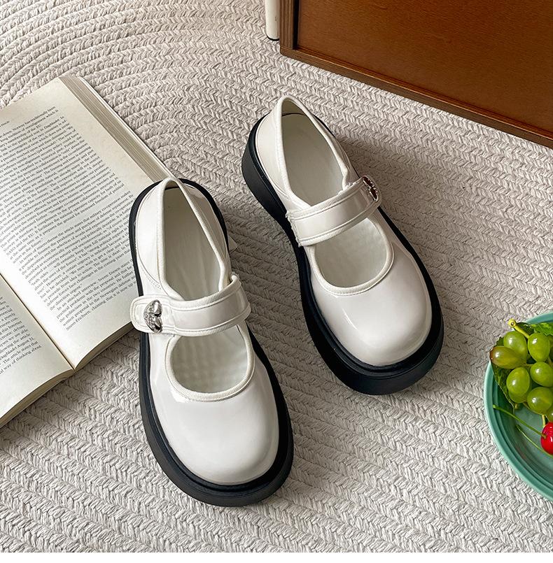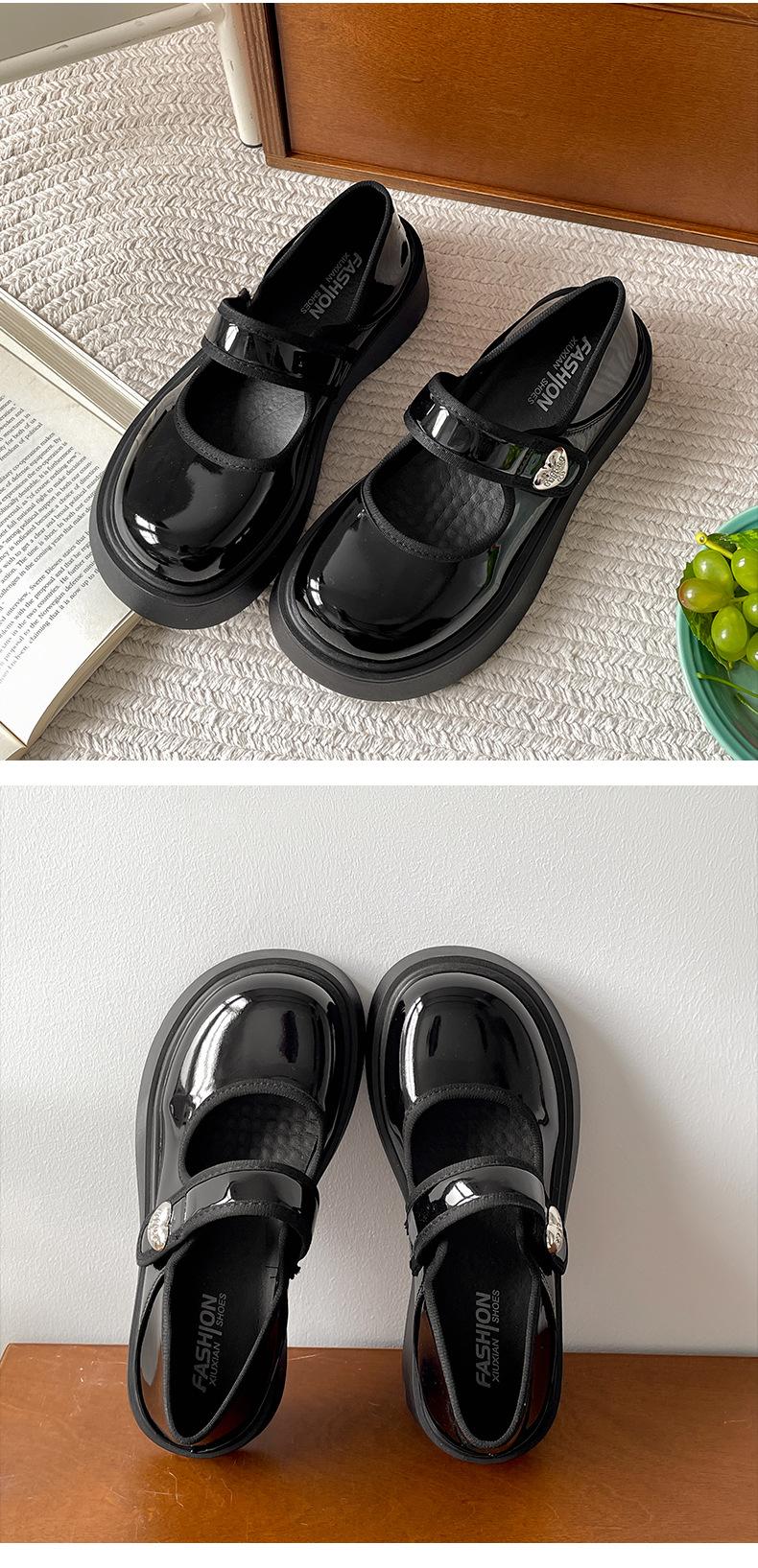Zapatos individuales de moda versátiles retro negros de suela gruesa y boca poco profunda para mujer Verano 2025 con falda Zapatos Mary Jane de cuero pequeño para aumentar la altura