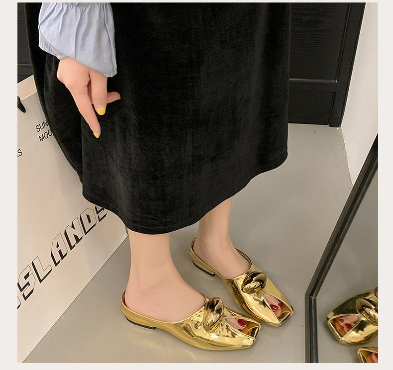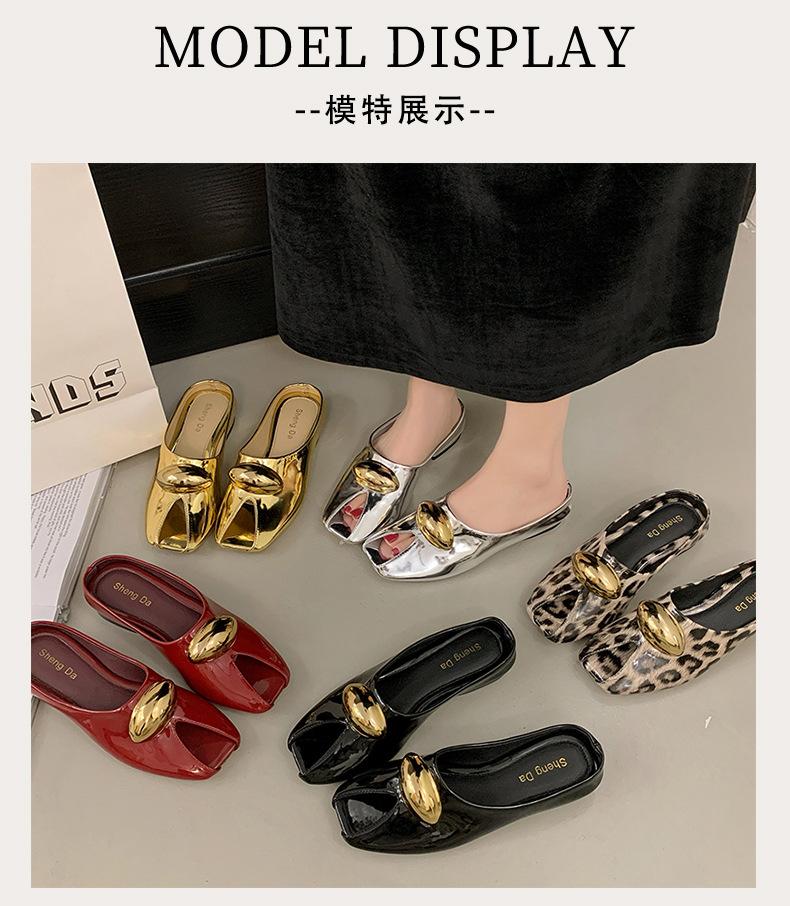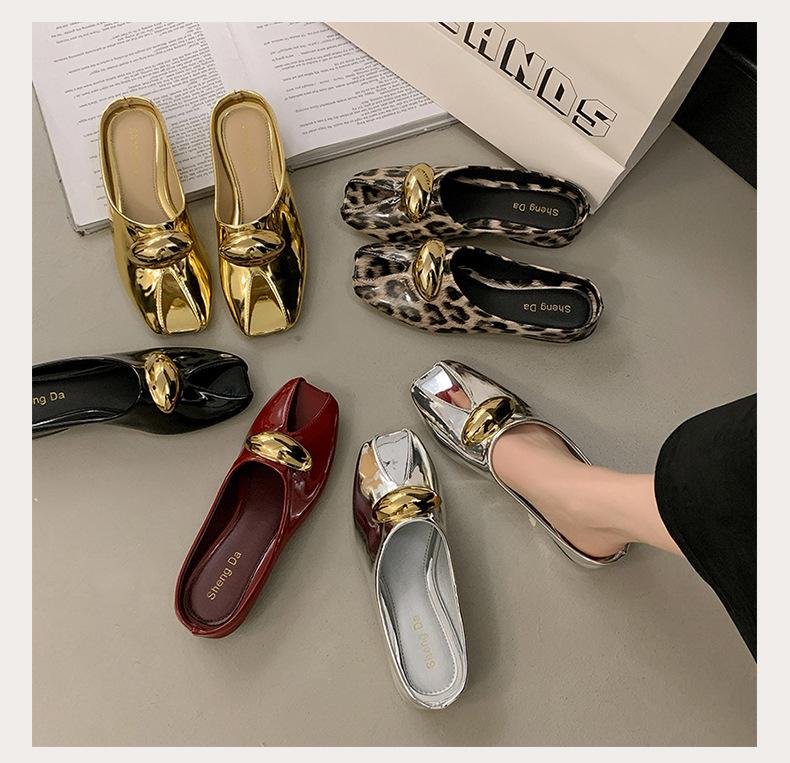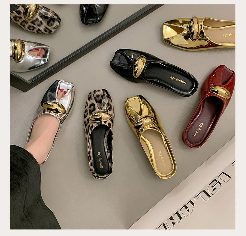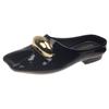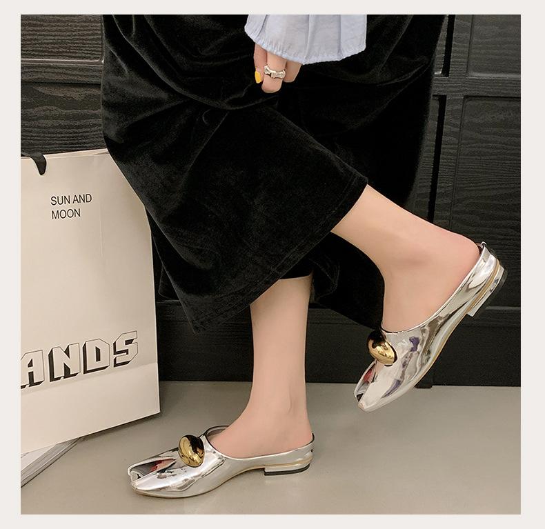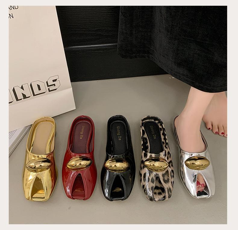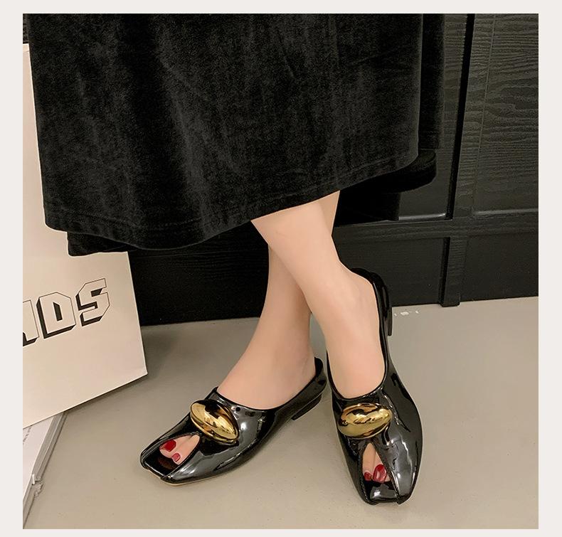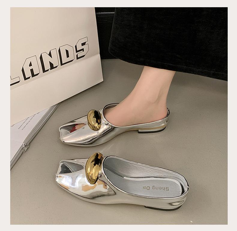 2025 Nuevas Elegantes Elegantes Hebilla Metálica Pantuflas Triangulares Boca de Pez Zapatos Planos de Moda Sandalias Francesas para Mujer