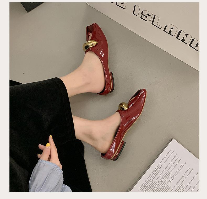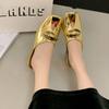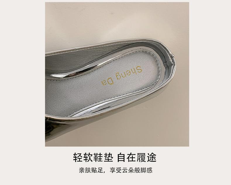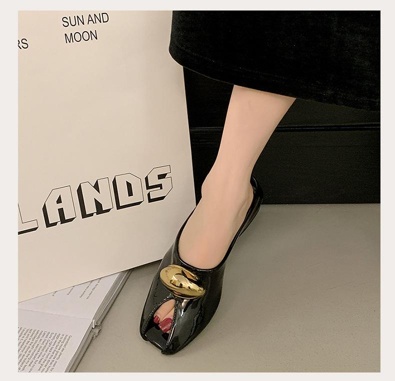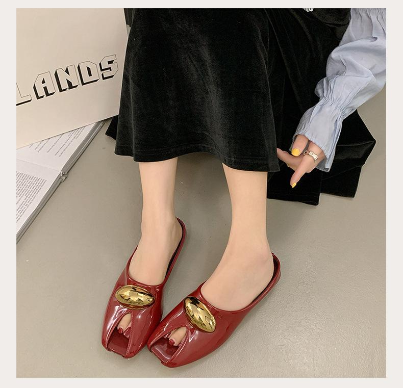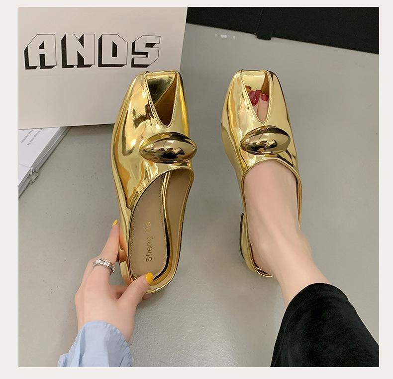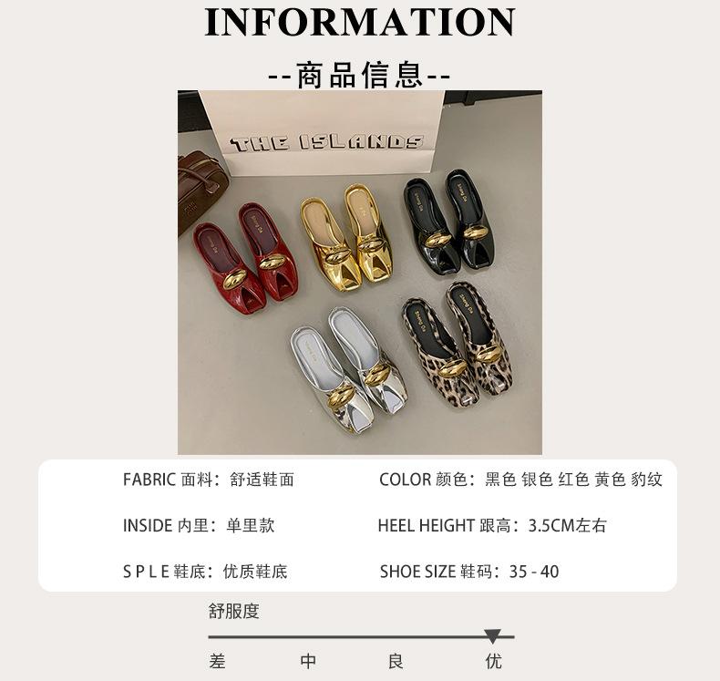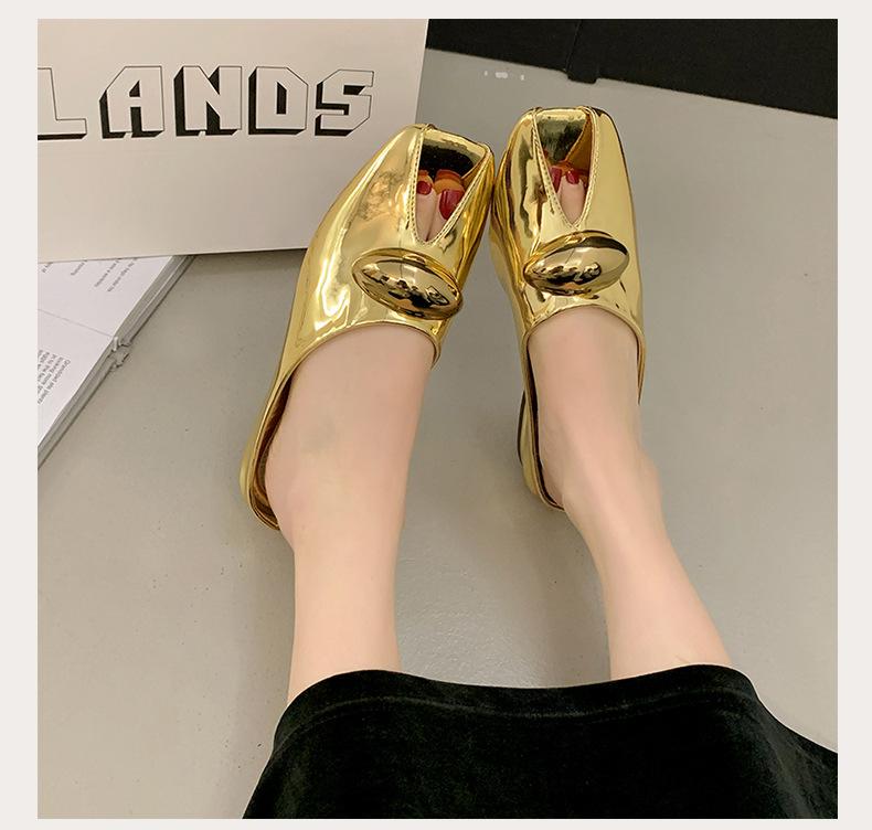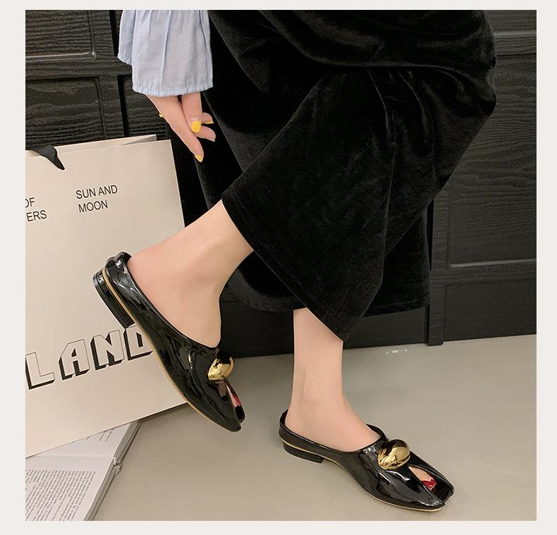 2025 Nuevas Elegantes Elegantes Hebilla Metálica Pantuflas Triangulares Boca de Pez Zapatos Planos de Moda Sandalias Francesas para Mujer