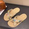 Sandalias y pantuflas para mujer, ropa de exterior de verano 2025, nuevas sandalias de playa planas retro francesas, pantuflas antideslizantes para mujer