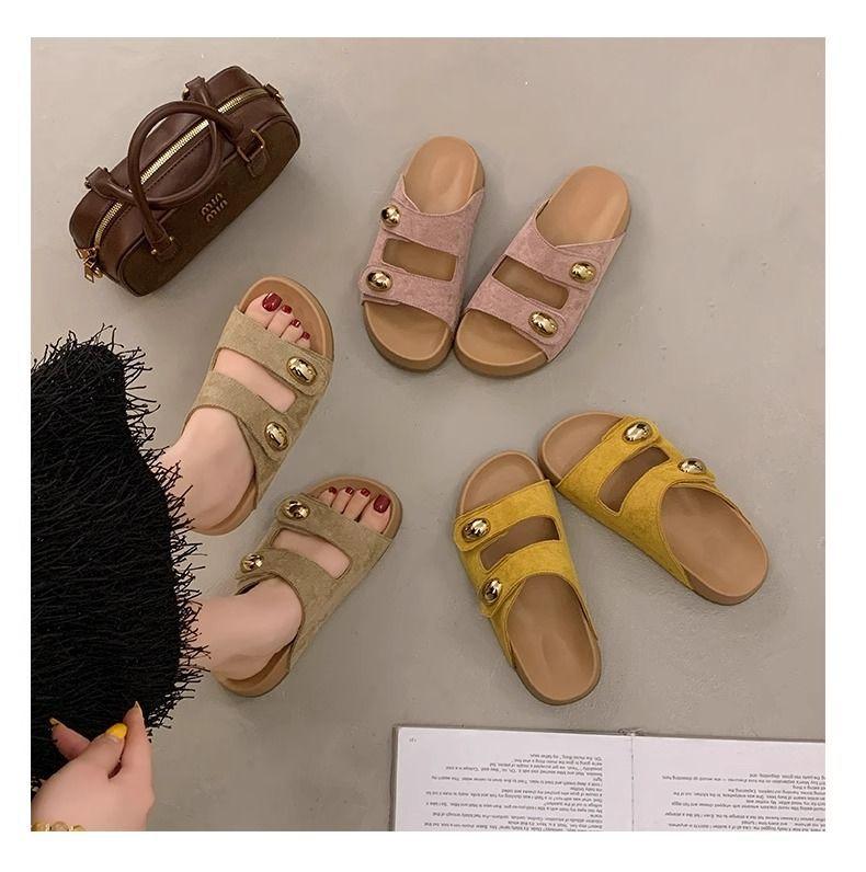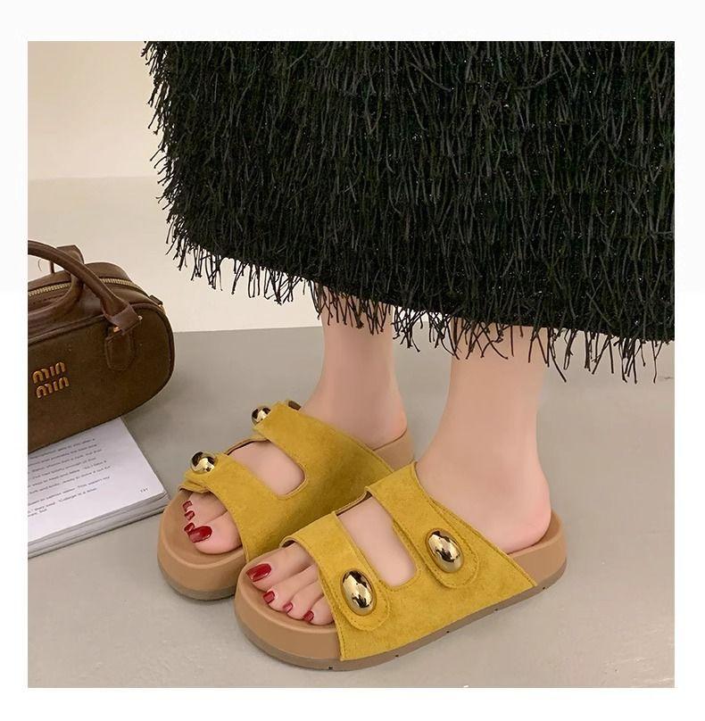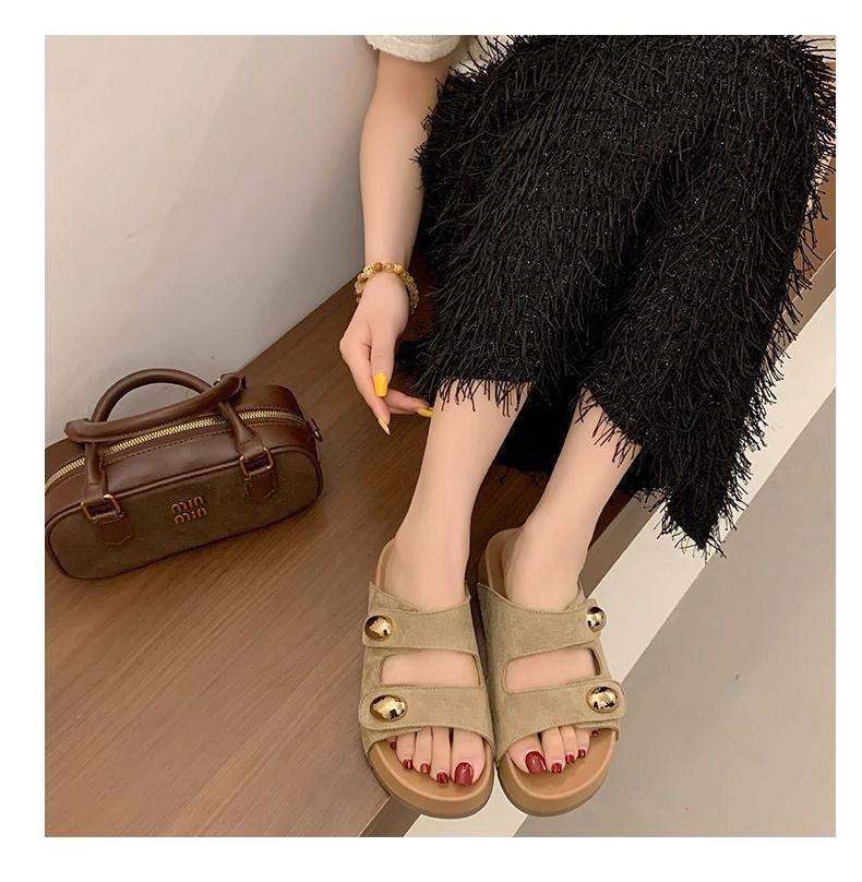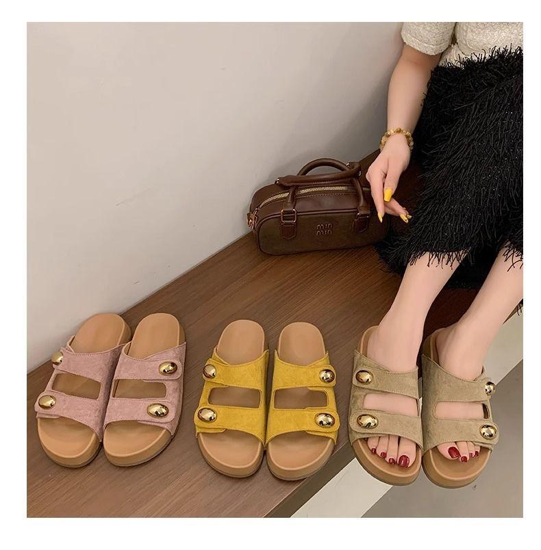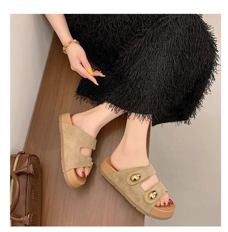 Pantuflas de Pierna Elevada de Fondo Grueso Largo Zapatos de Playa Ropa de Exterior Nuevas Sandalias de Verano con Sentido del Diseño Retro