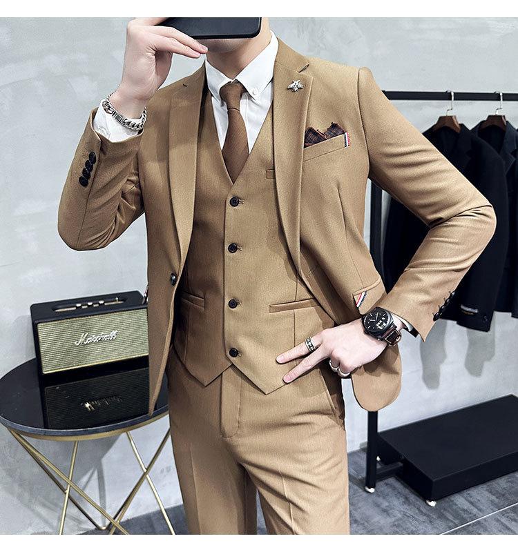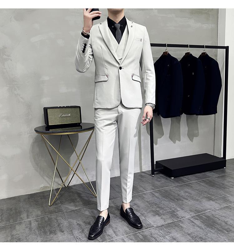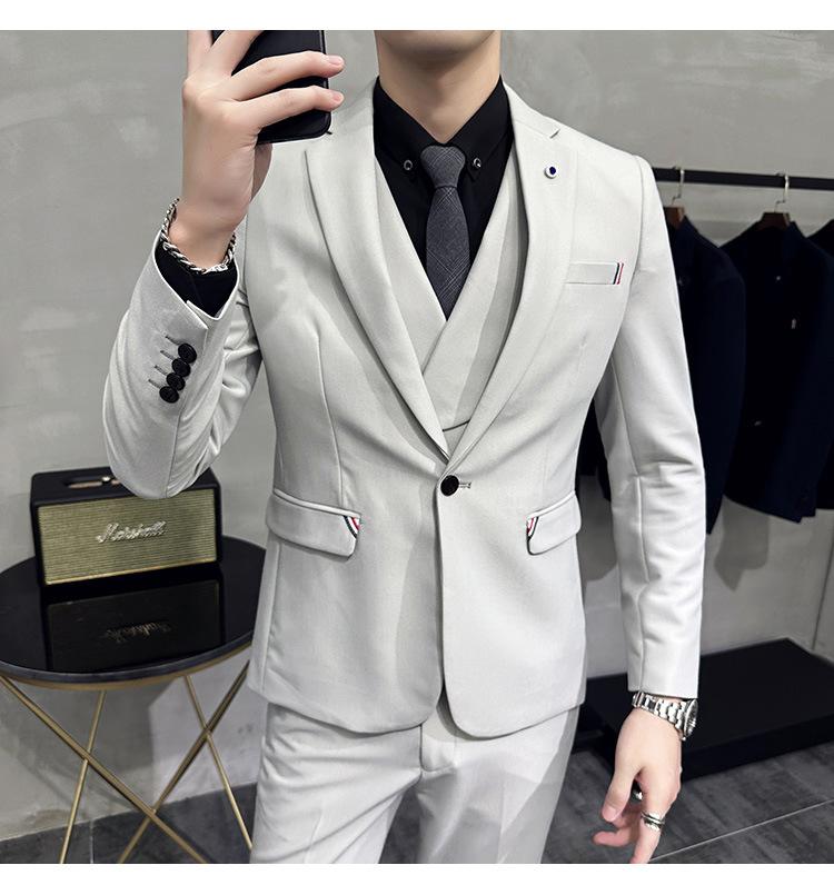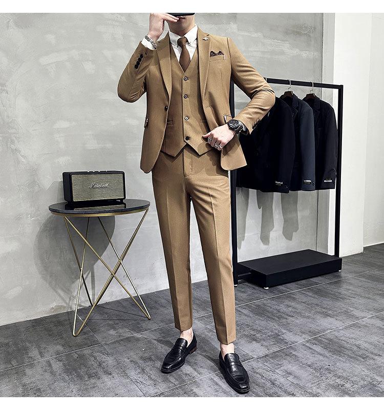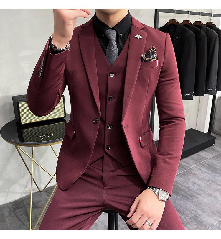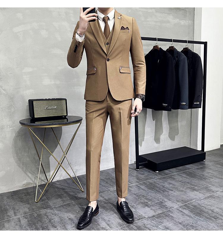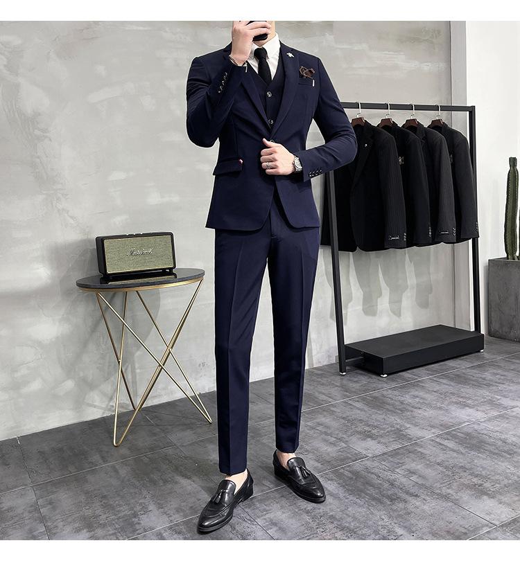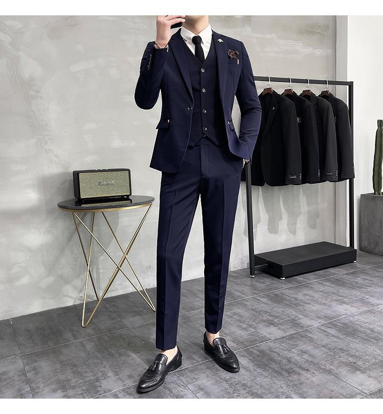 Traje de tres piezas para hombre, estilo coreano, informal, de negocios, con un solo botón y corte entallado, para comercio exterior transfronterizo.