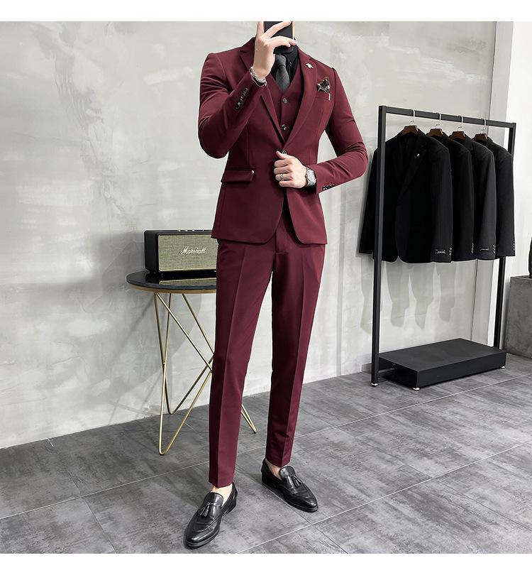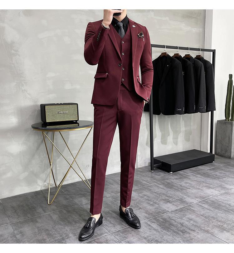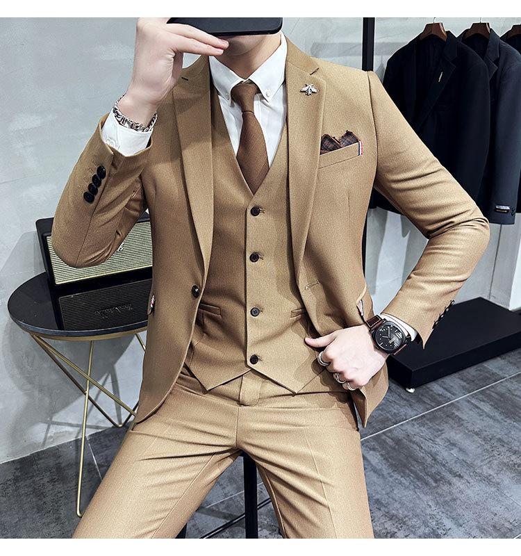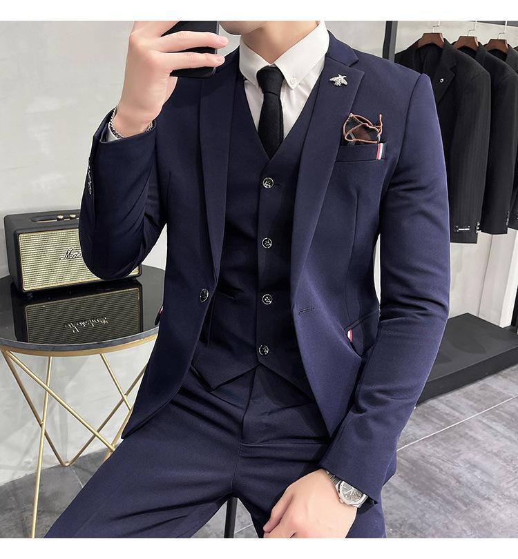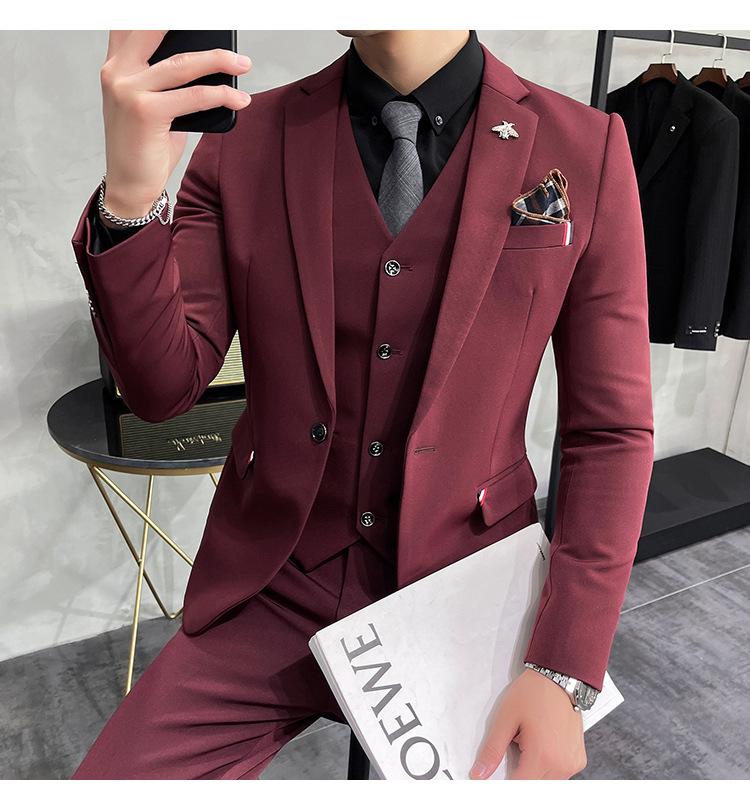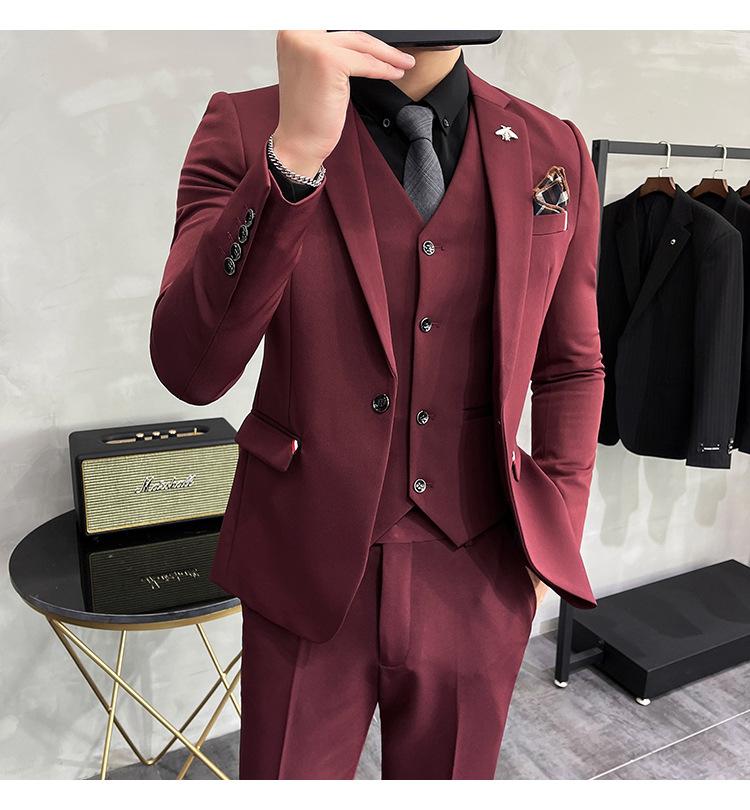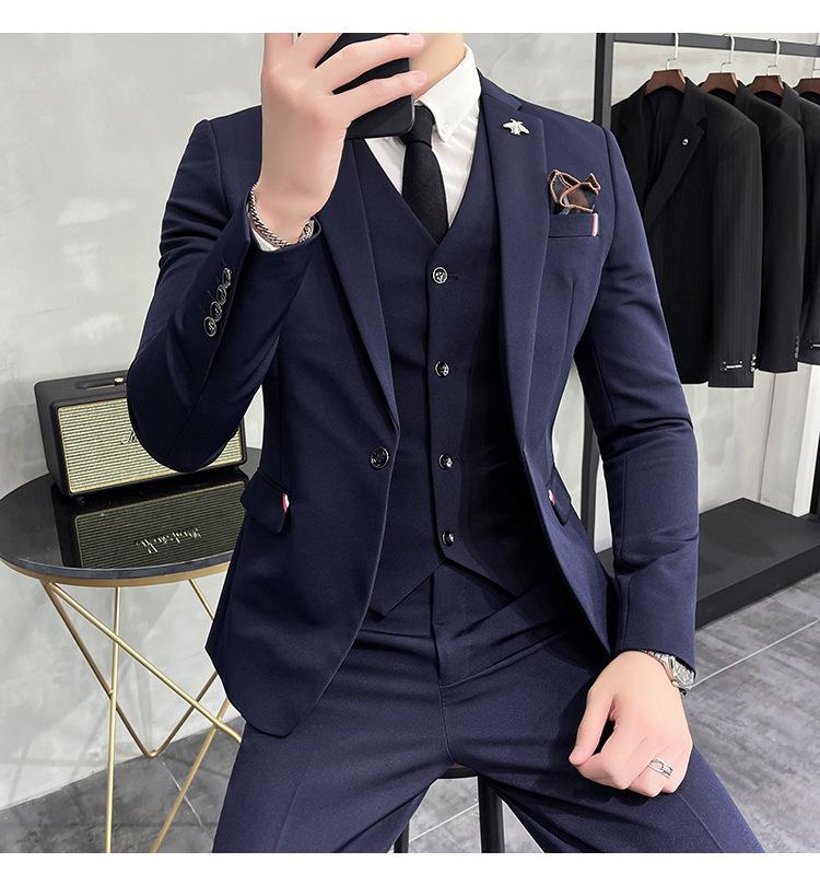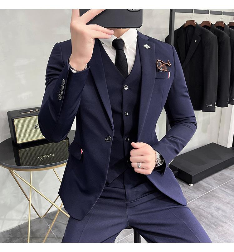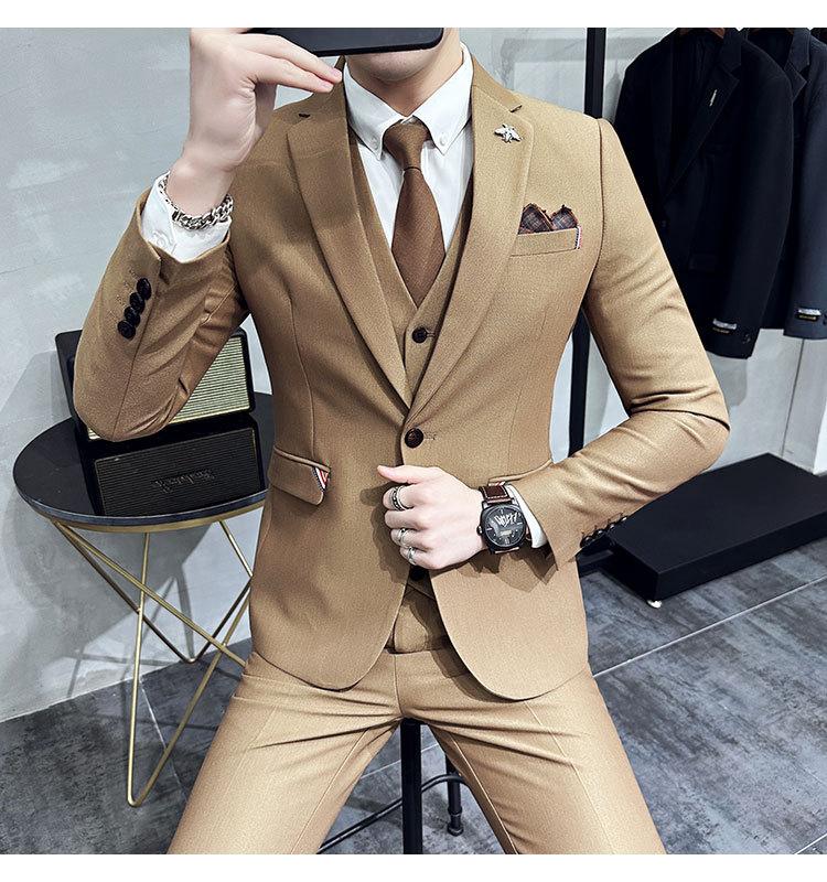 Traje de tres piezas para hombre, estilo coreano, informal, de negocios, con un solo botón y corte entallado, para comercio exterior transfronterizo.