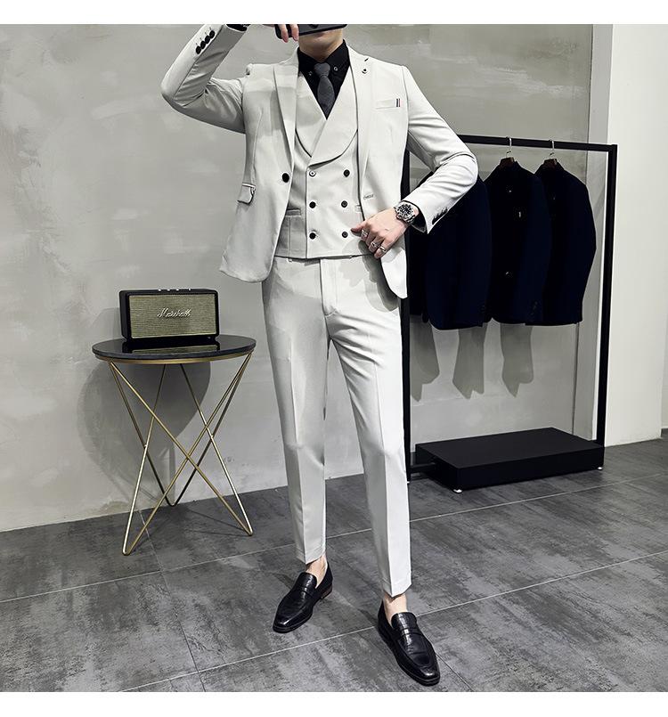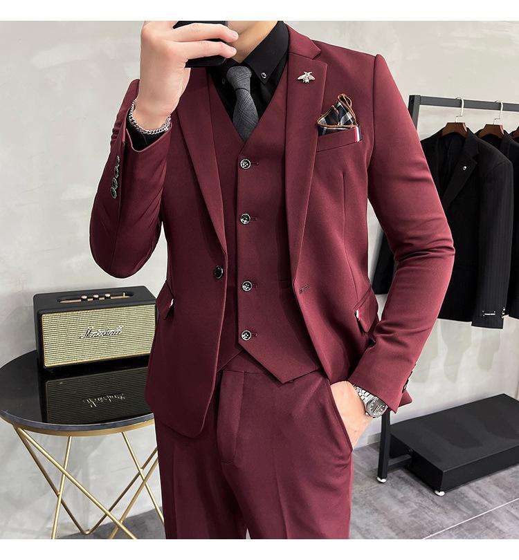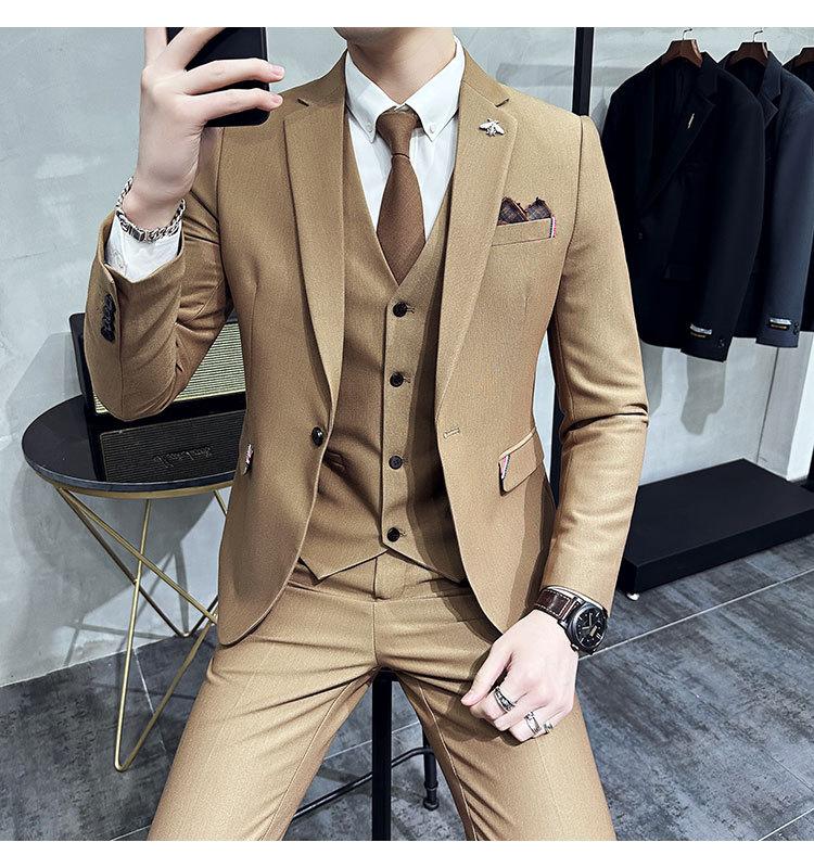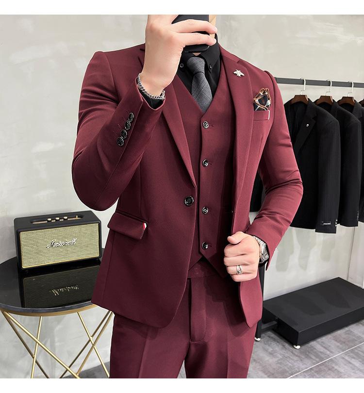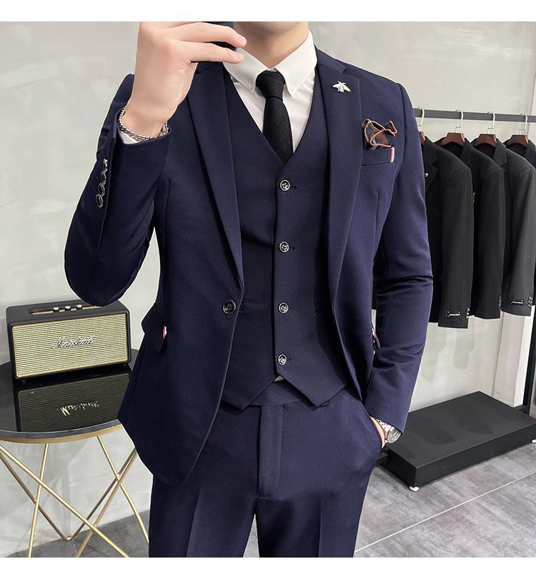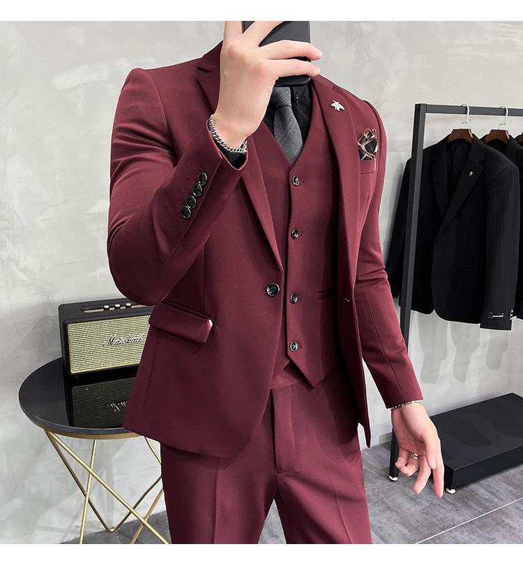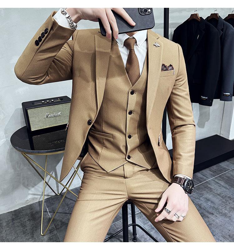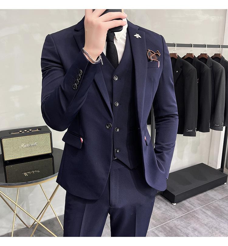 Traje de tres piezas para hombre, estilo coreano, informal, de negocios, con un solo botón y corte entallado, para comercio exterior transfronterizo.
