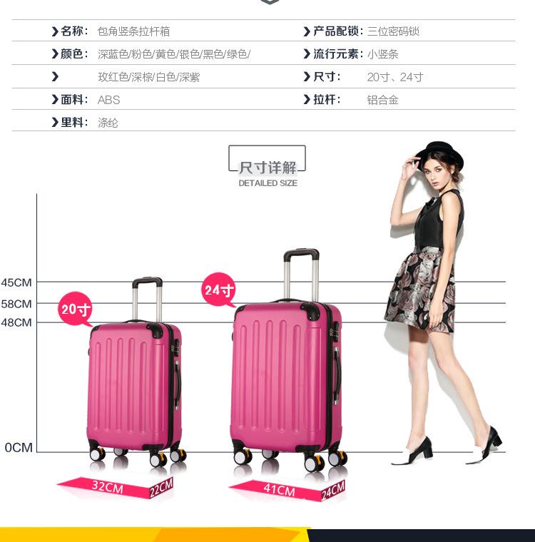 Moda coreana maleta trolley con cremallera y rueda de freno universal ABS para estudiantes con contraseña equipaje de mano para abordar hombres y mujeres