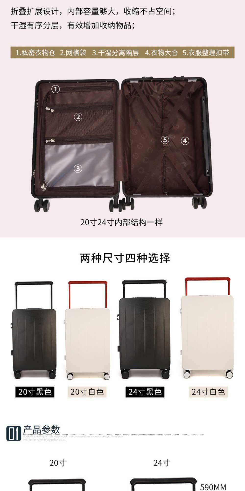 Maleta duradera de 20 pulgadas con ruedas universales y ruedas unisex de 24 pulgadas para PC