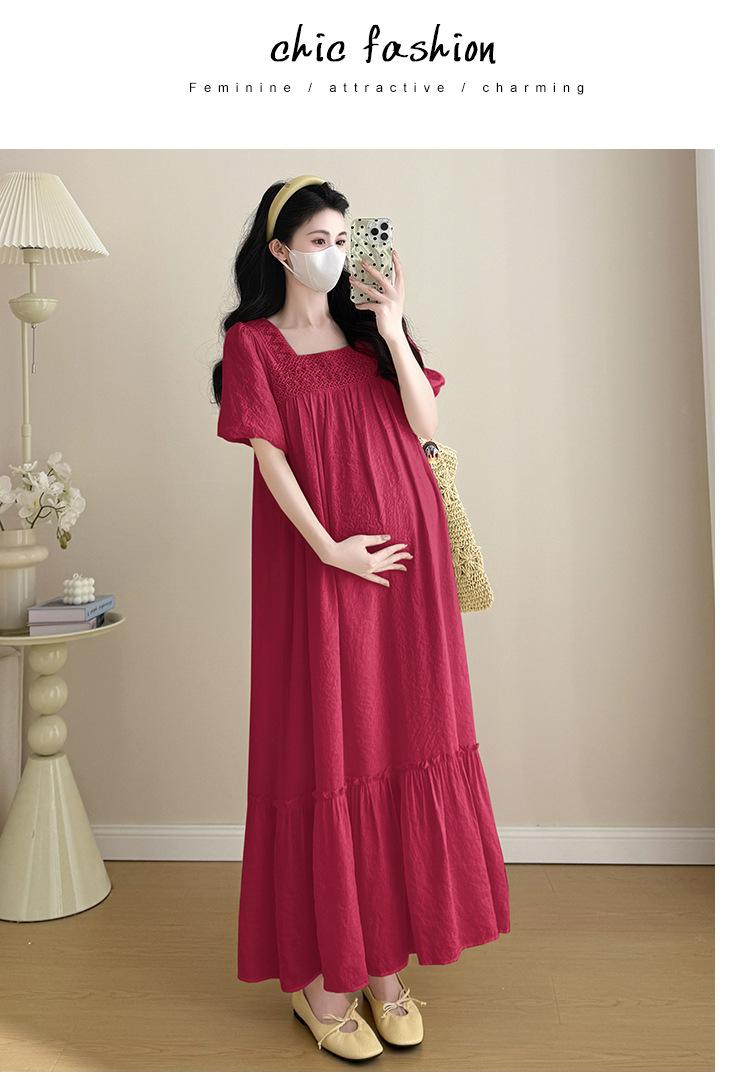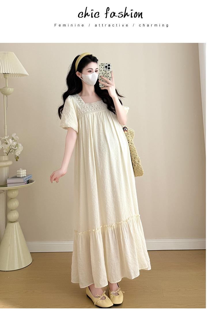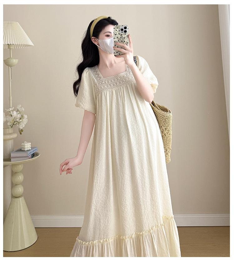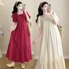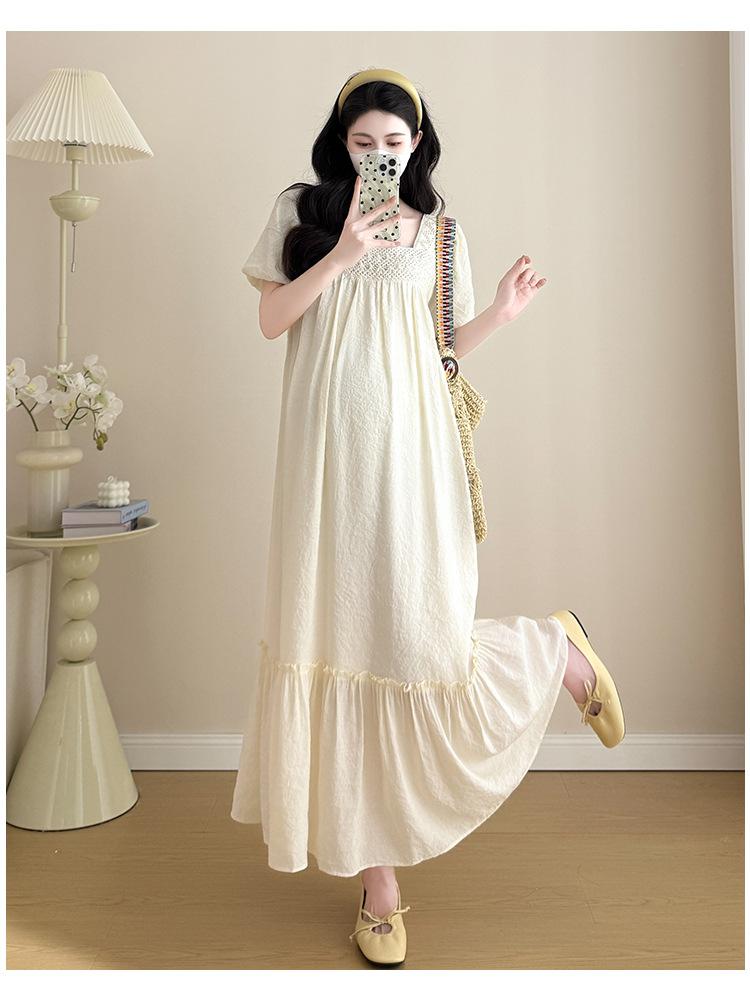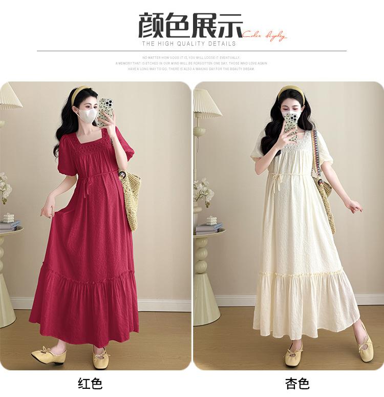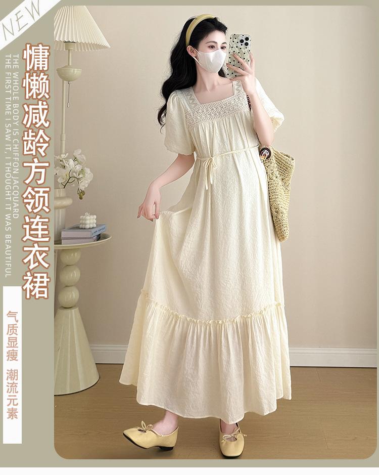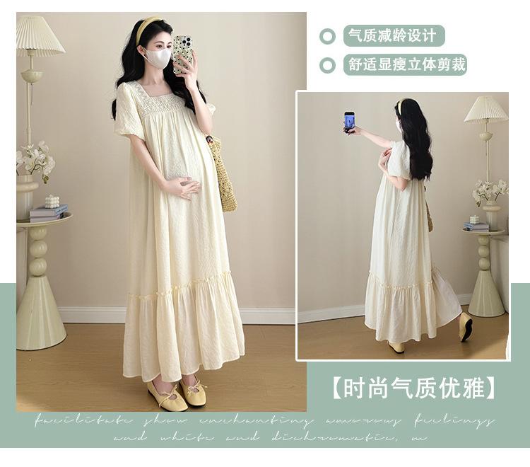 Vestido de maternidad de verano 2025, nuevo, dulce, a la moda, con cuello cuadrado francés, reductor de edad, holgado, de talla grande, para embarazadas