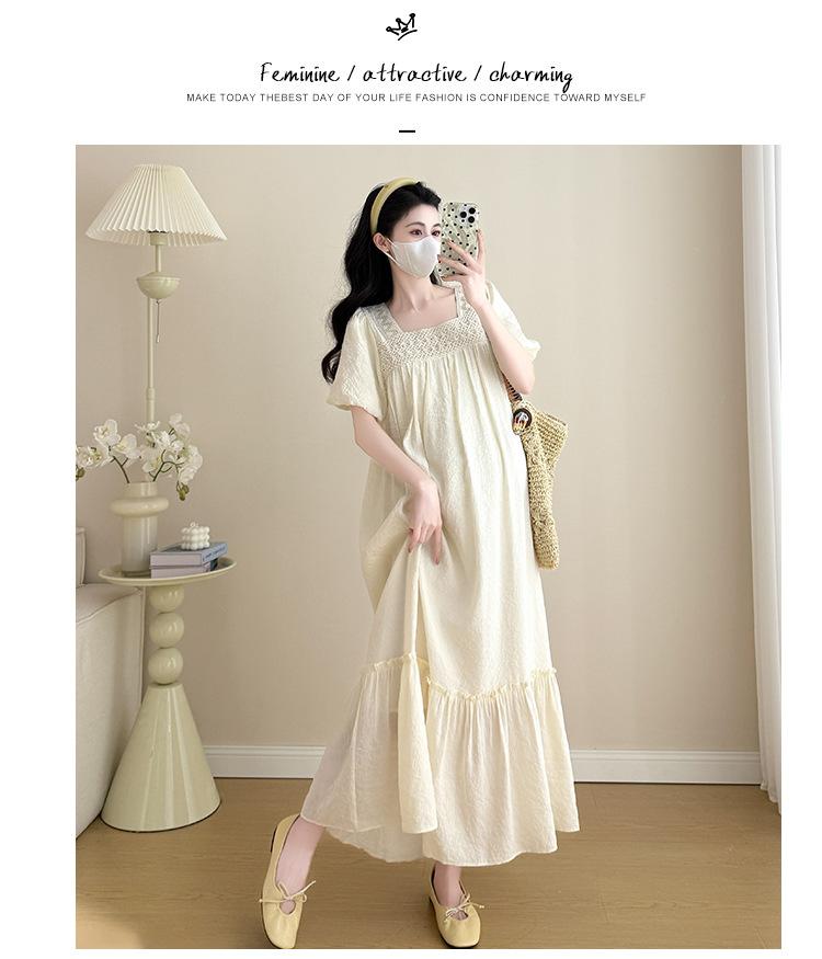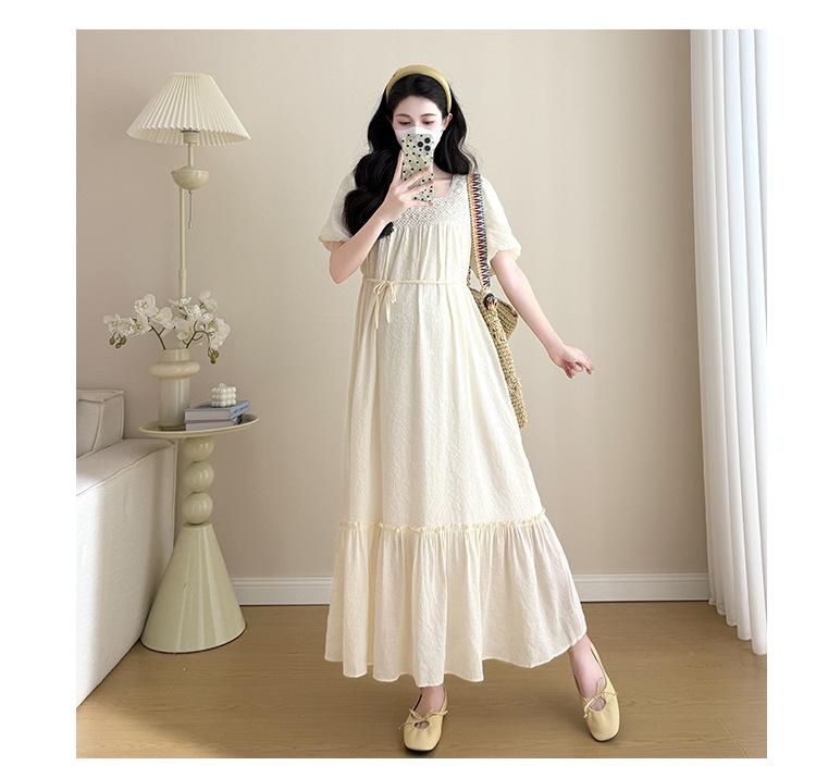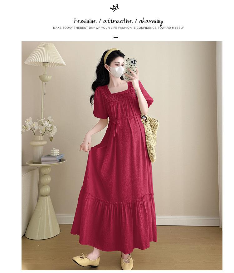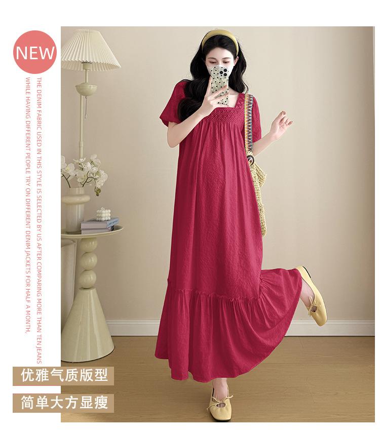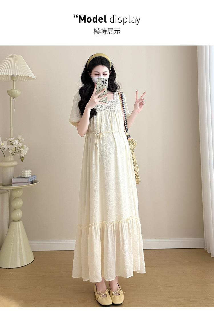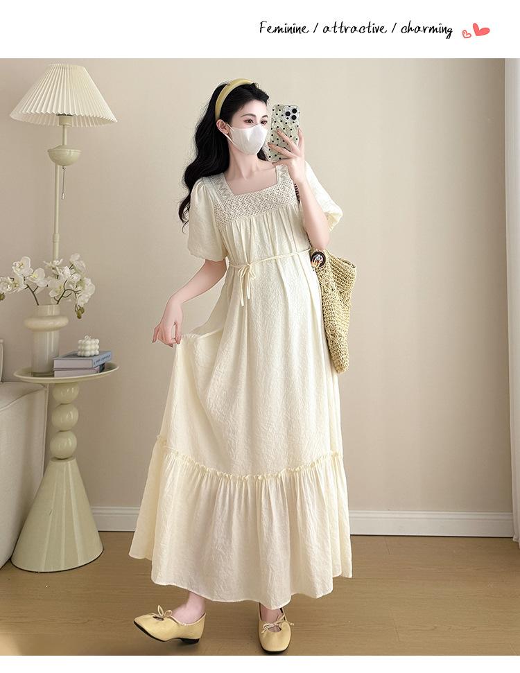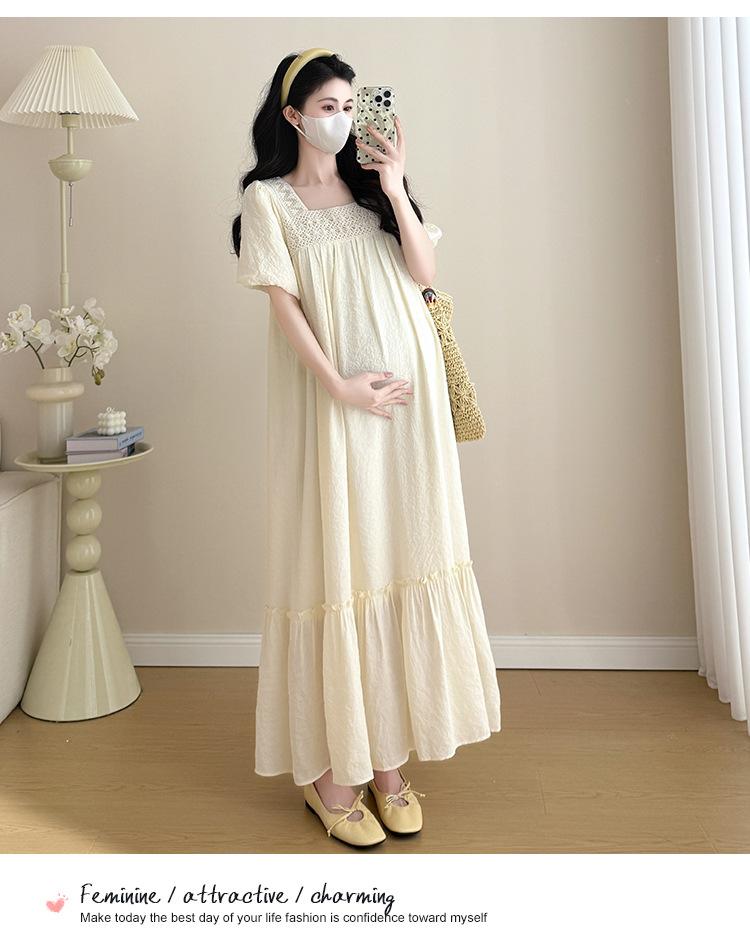 Vestido de maternidad de verano 2025, nuevo, dulce, a la moda, con cuello cuadrado francés, reductor de edad, holgado, de talla grande, para embarazadas