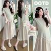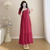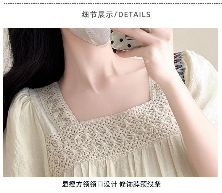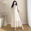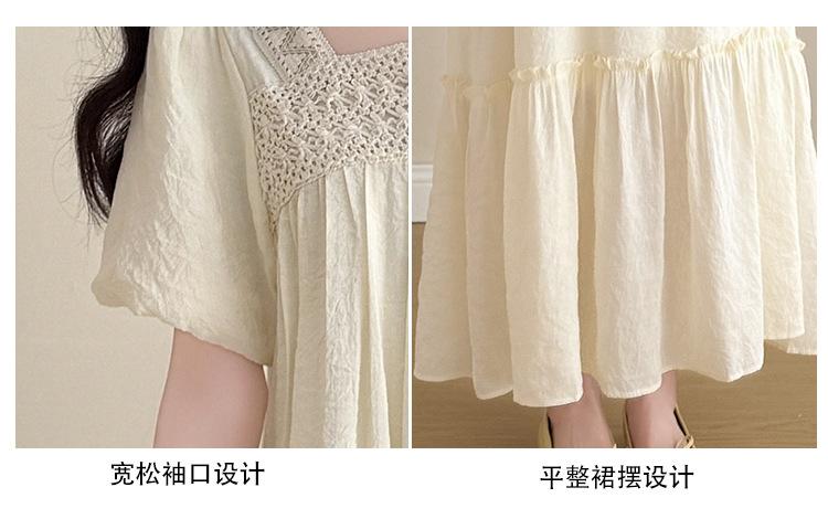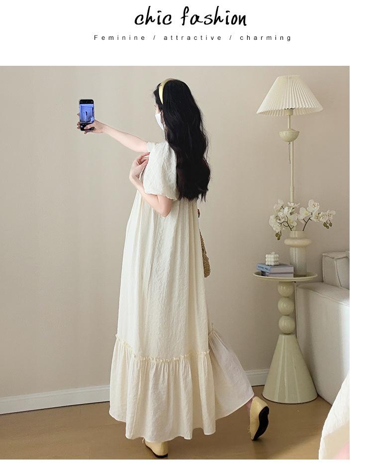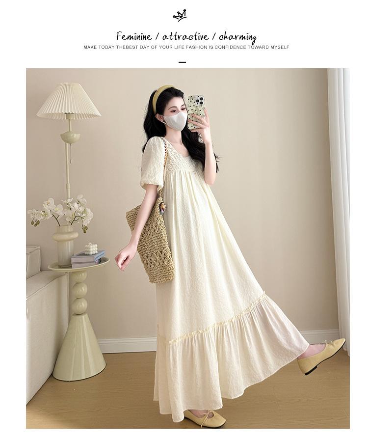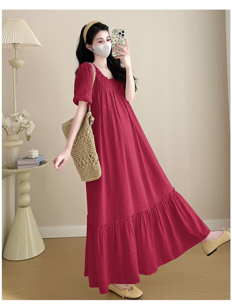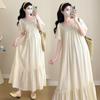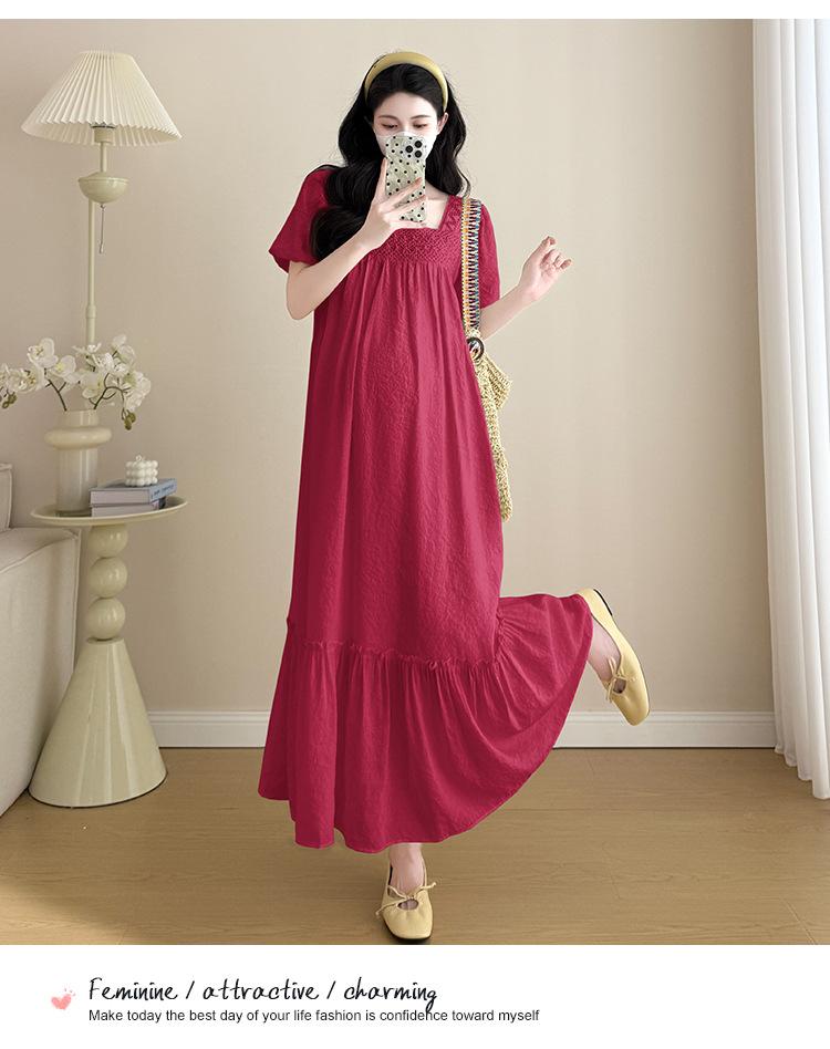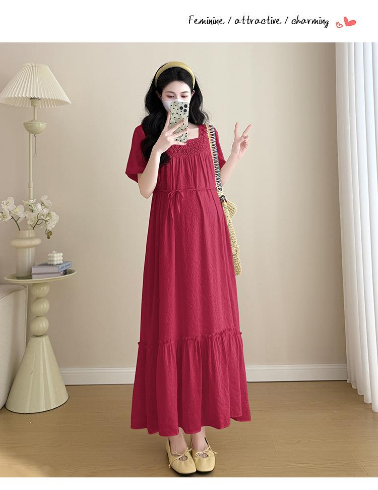 Vestido de maternidad de verano 2025, nuevo, dulce, a la moda, con cuello cuadrado francés, reductor de edad, holgado, de talla grande, para embarazadas