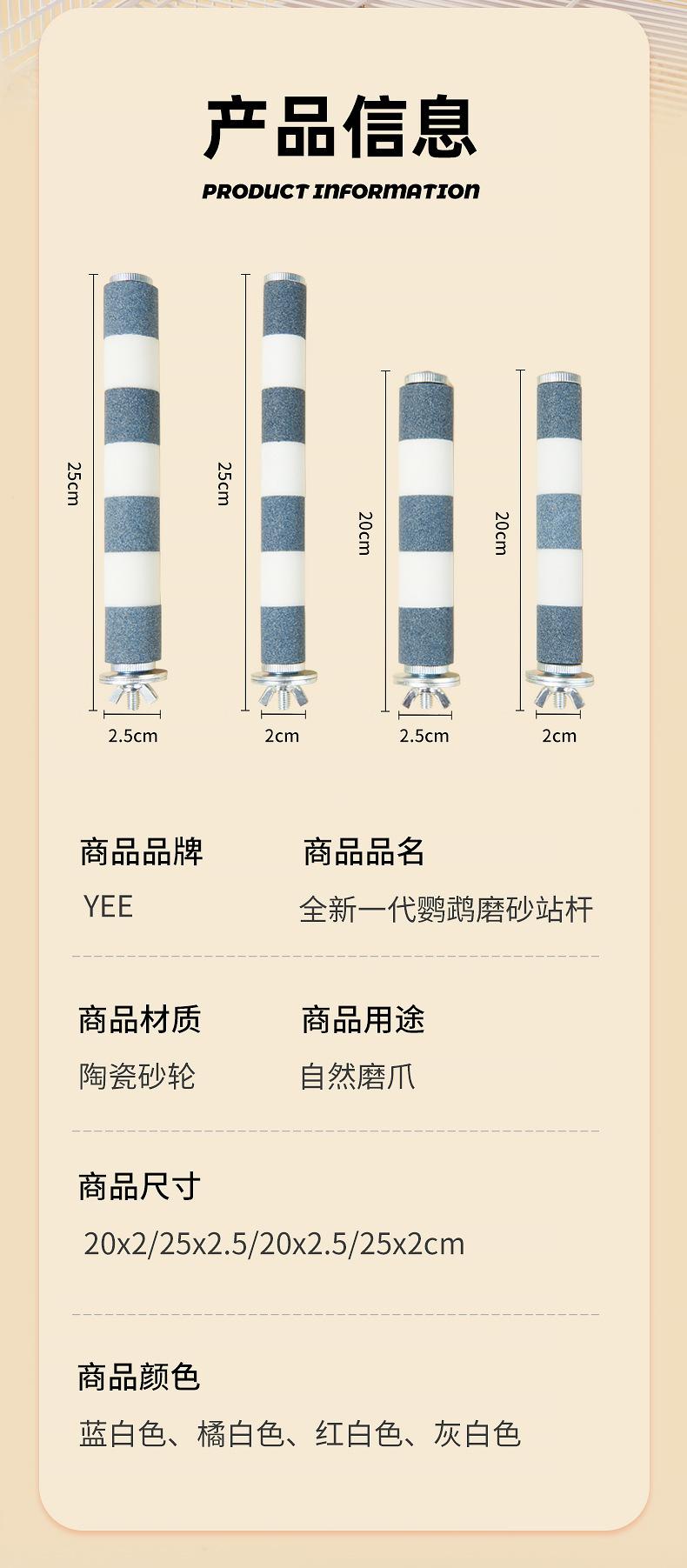 Bird claw grinding stone 20cm*2.5cm - blue and white (diameter suitable for parrots such as xuanfeng)