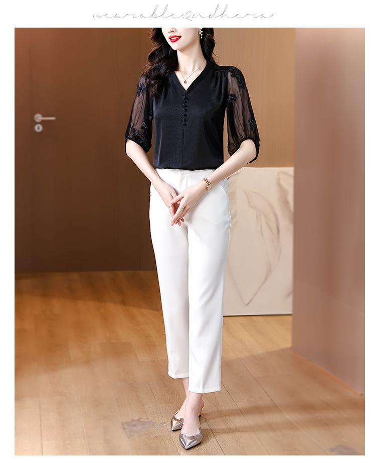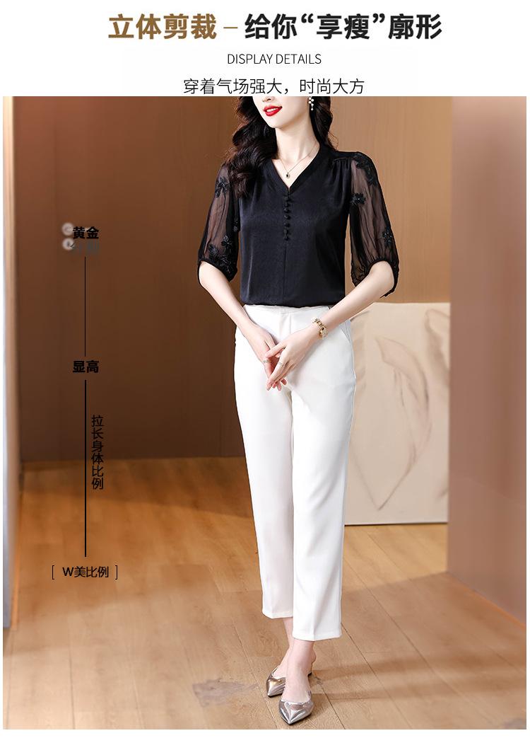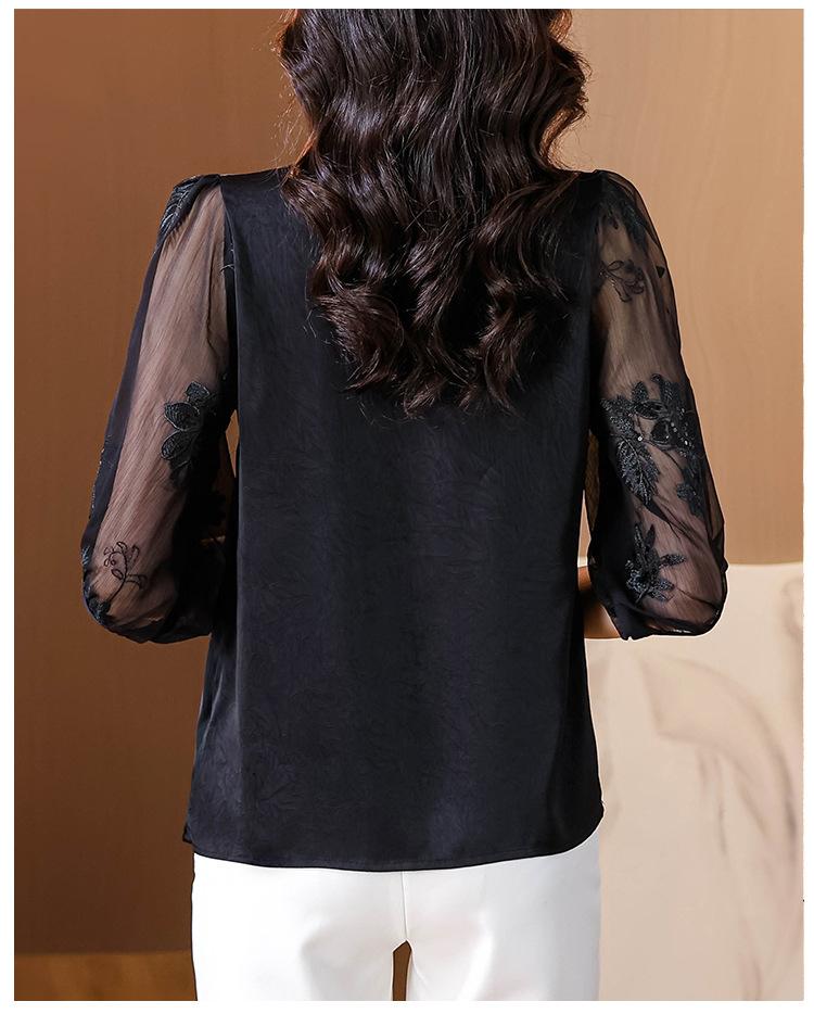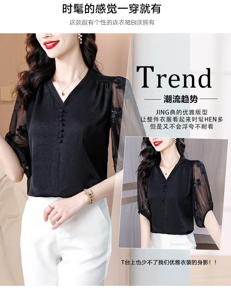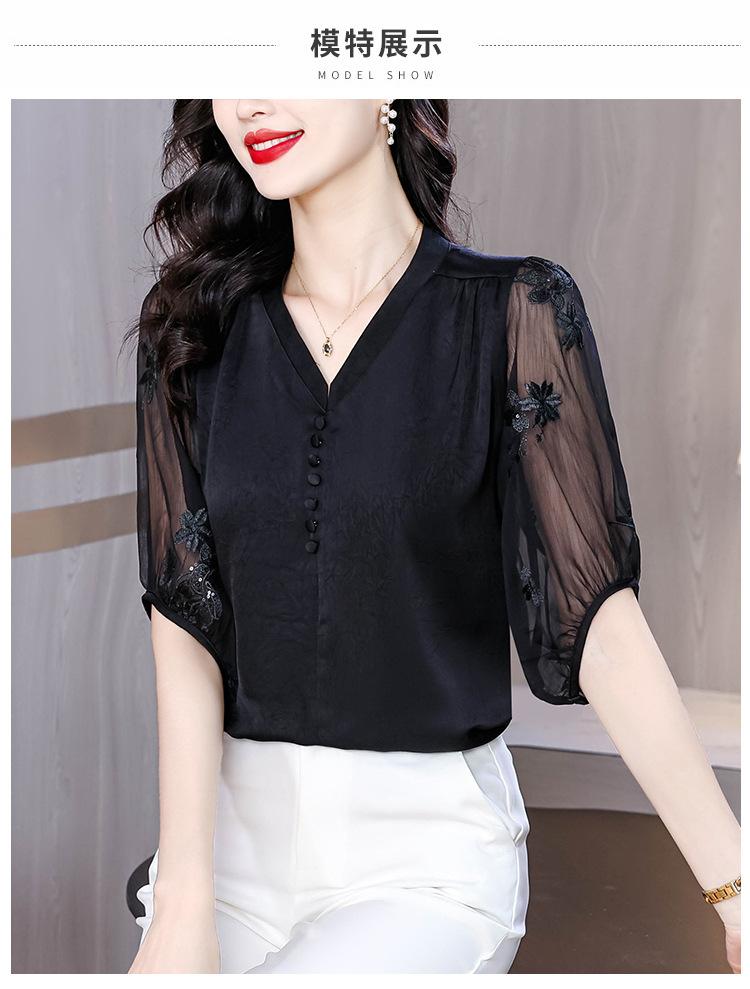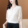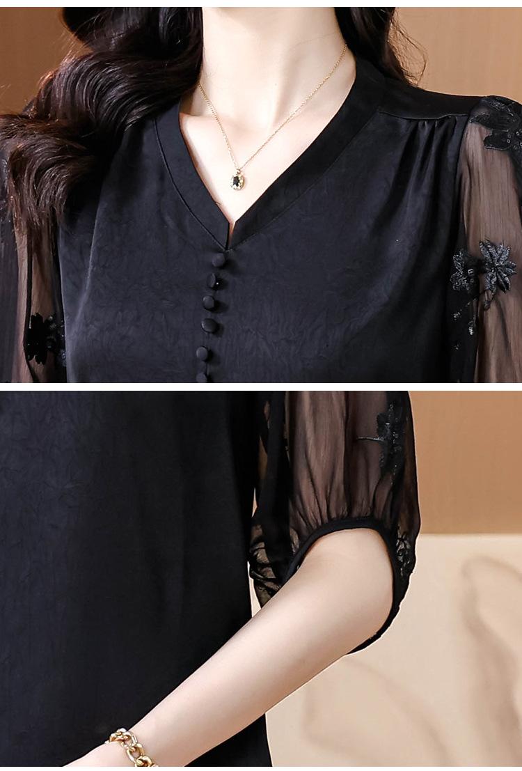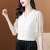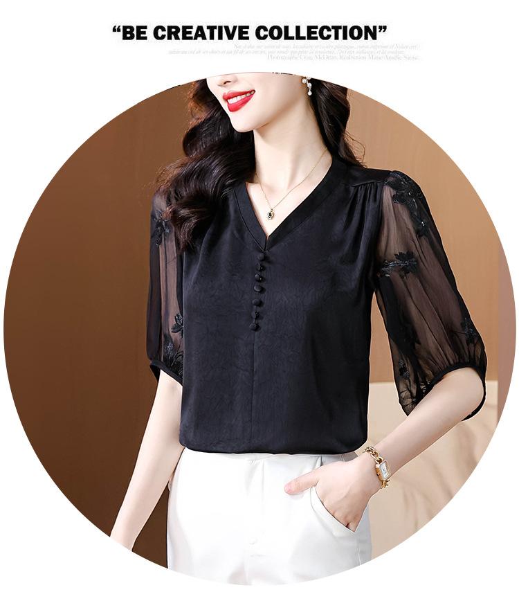Camisa de gasa con bordado intenso para mujer, estilo nuevo de verano 2025, con cuello en V, holgada, antiedad, adelgazante y fina.