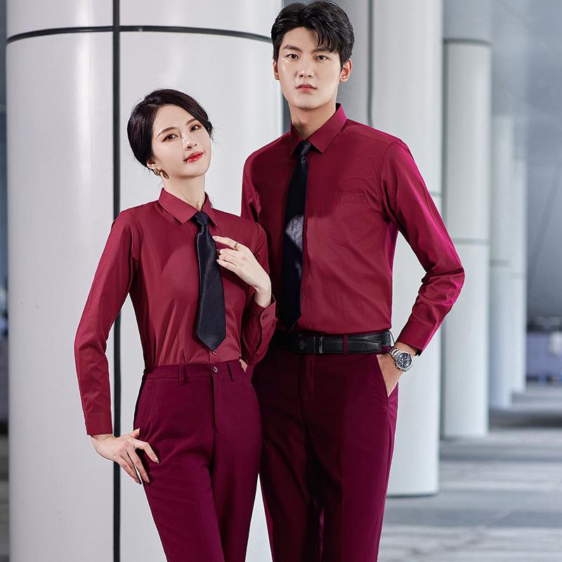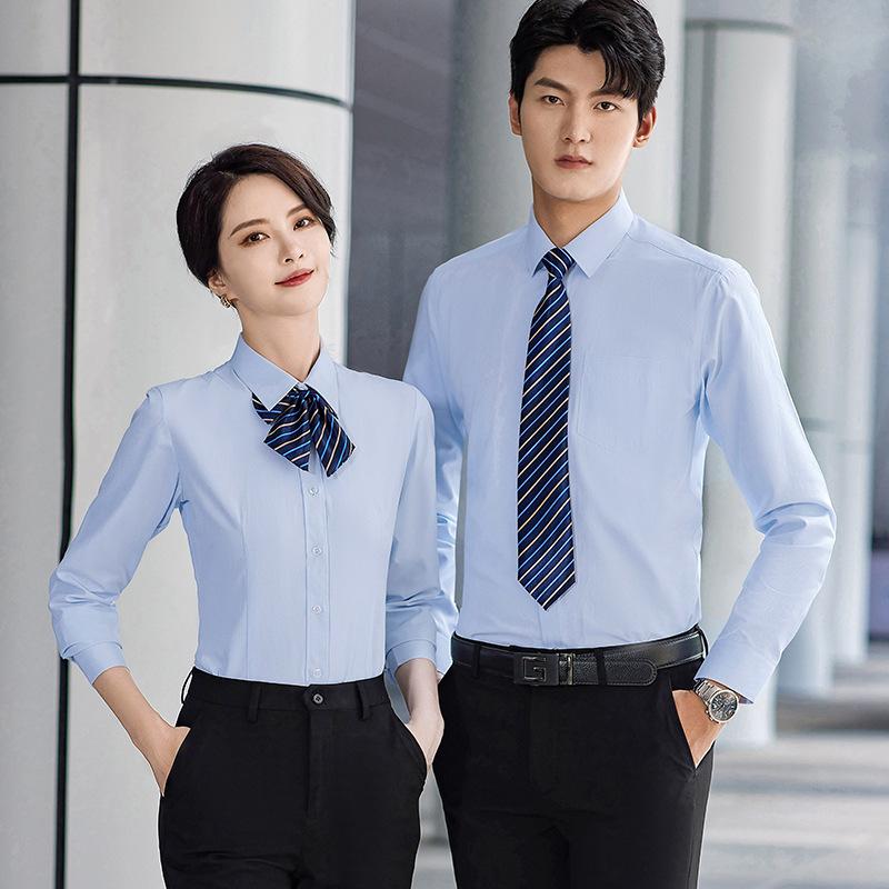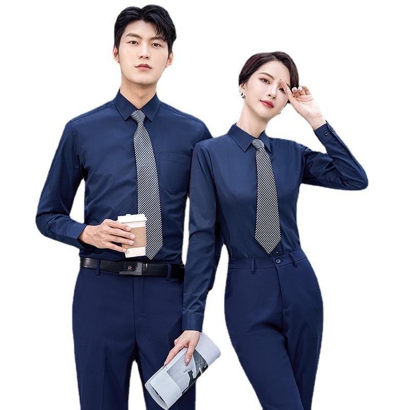 Camisa Lisa de Algodón de Manga Larga y Corta Entrevista Vestido Formal para Hombre y Mujer Mismo Estilo Camisa de Vestir para Negocios Ajuste Slim Vestido de Trabajo LOGO Bordado
