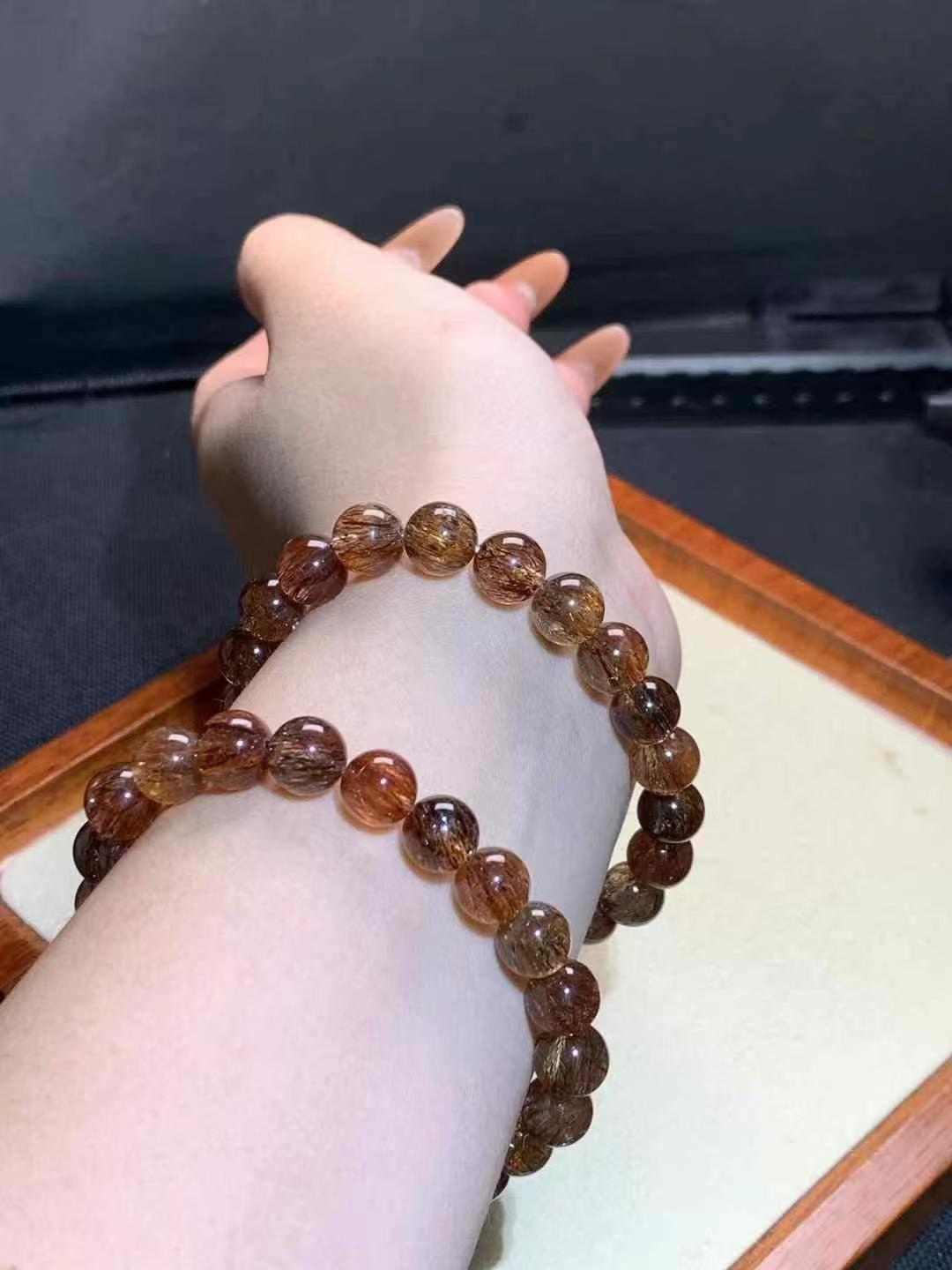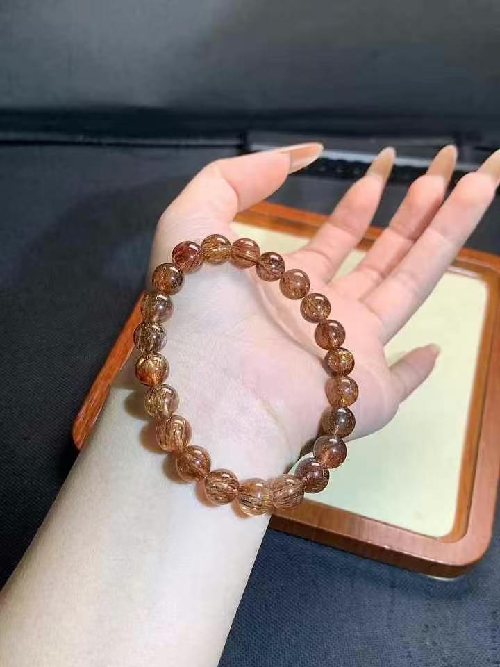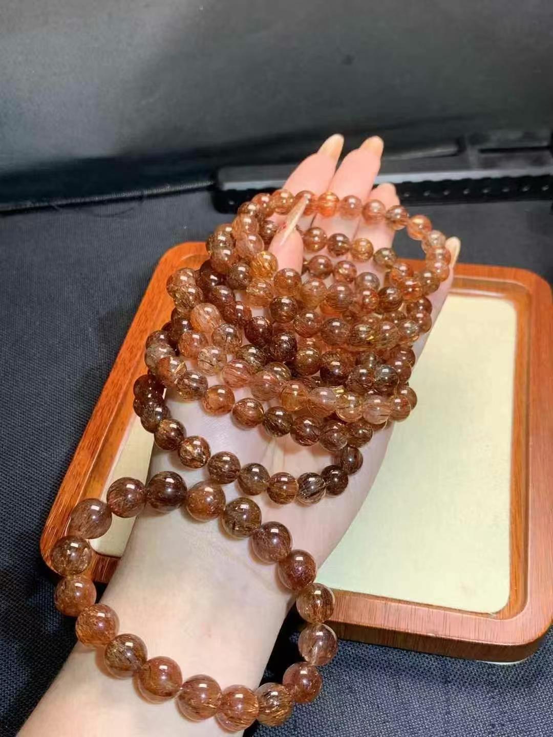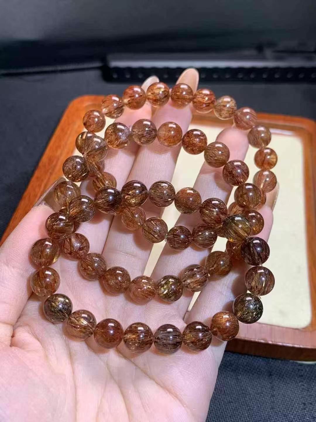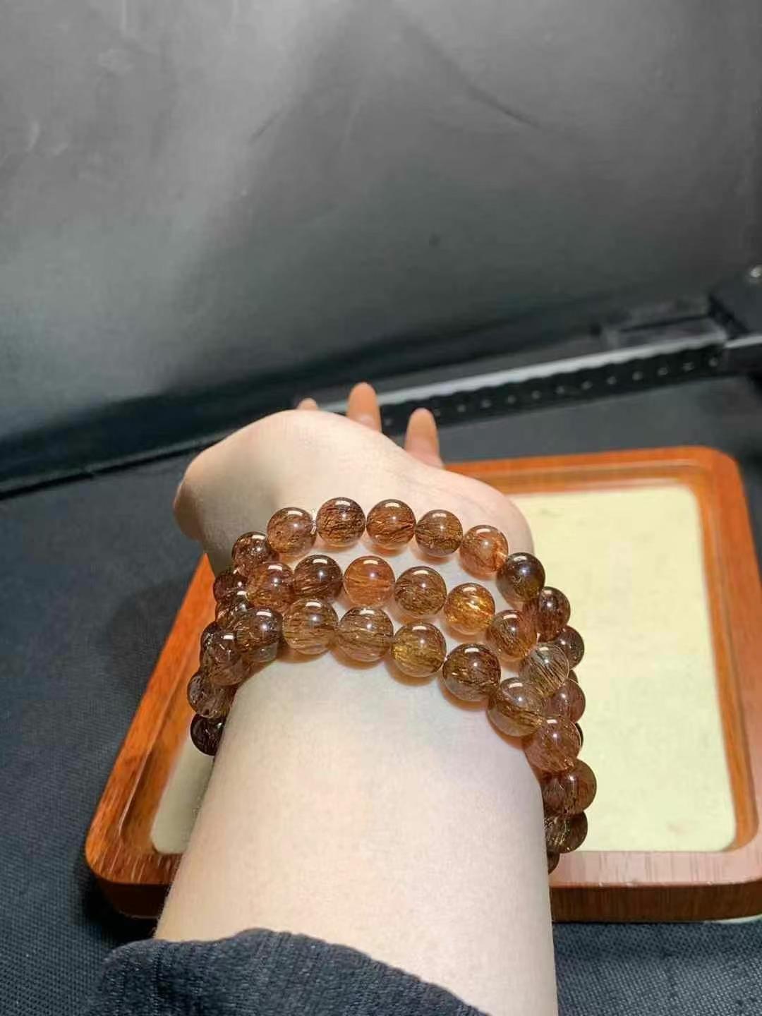 Fabricante Venta al por Mayor Natural Negro Dorado Super Siete Cuentas Redondas Pulsera de un Círculo Cristal Hermoso Cabello Claro Sin Hoyos Buena Calidad