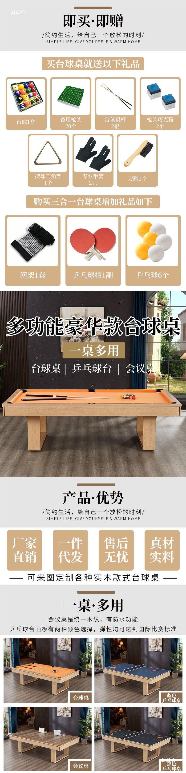 Mesa de Billar Doméstica Estándar para Adultos Mesa de Billar Comercial Multifuncional Tres en Uno Americana Negra 8 Mesa de Mármol