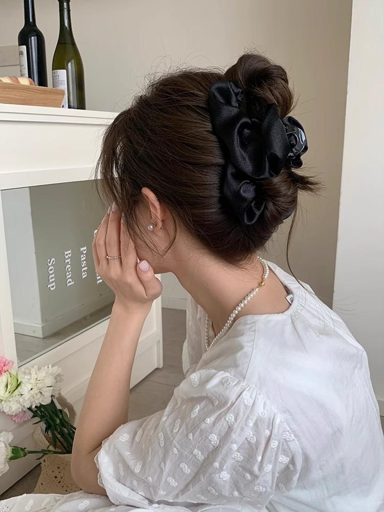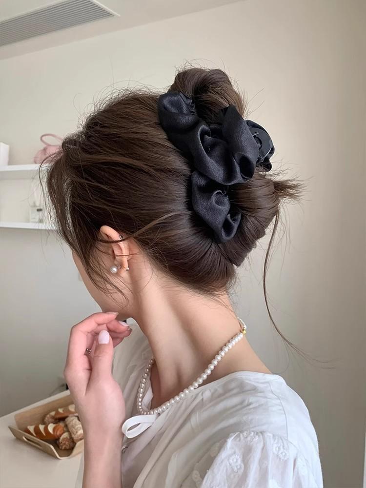 Horquilla plisada de tela francesa de alta gama, pinza grande, elegante y a la moda, accesorio para el cabello con forma de tiburón para mujer.