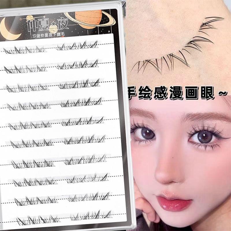 Pestañas postizas de imitación pintadas a mano de una noche de verano, naturales, de un solo grupo, para mujeres perezosas, gruesas, segmentadas, sin pegamento.
