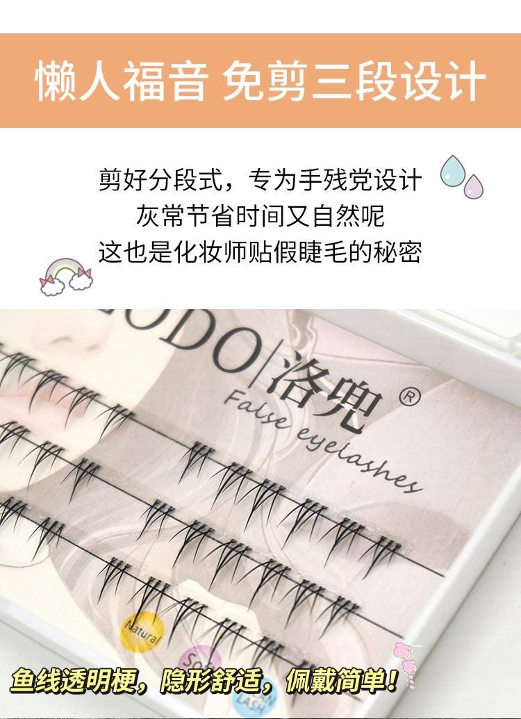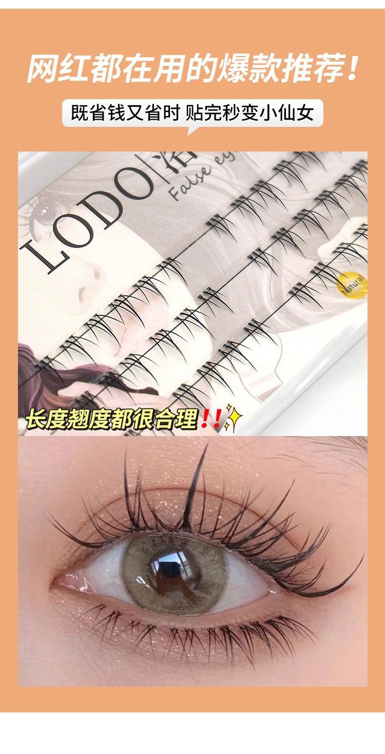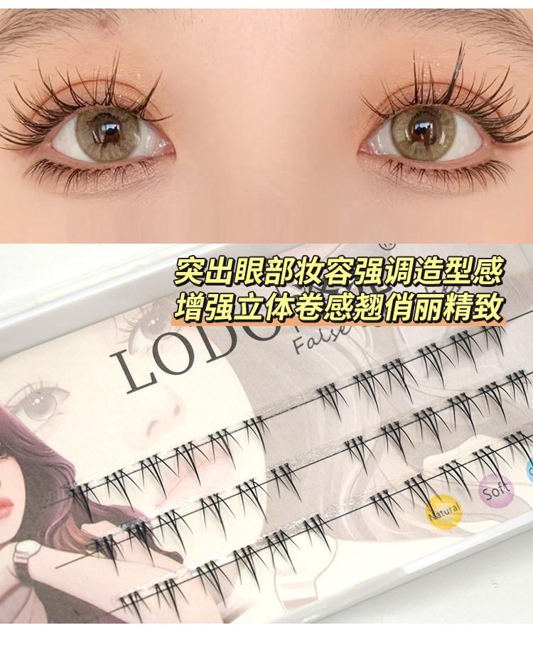 Pestañas postizas LODO Luodou con forma de llama pequeña, pestañas postizas femeninas de simulación natural, segmentadas, de un solo grupo, transparentes, de tallo suave.