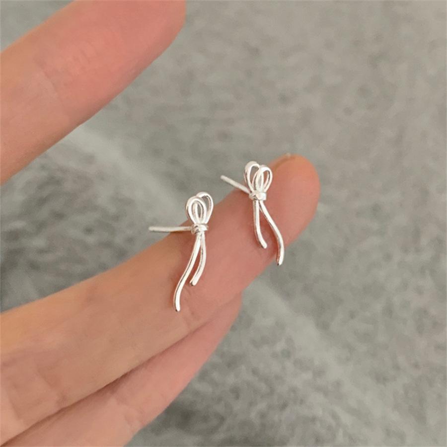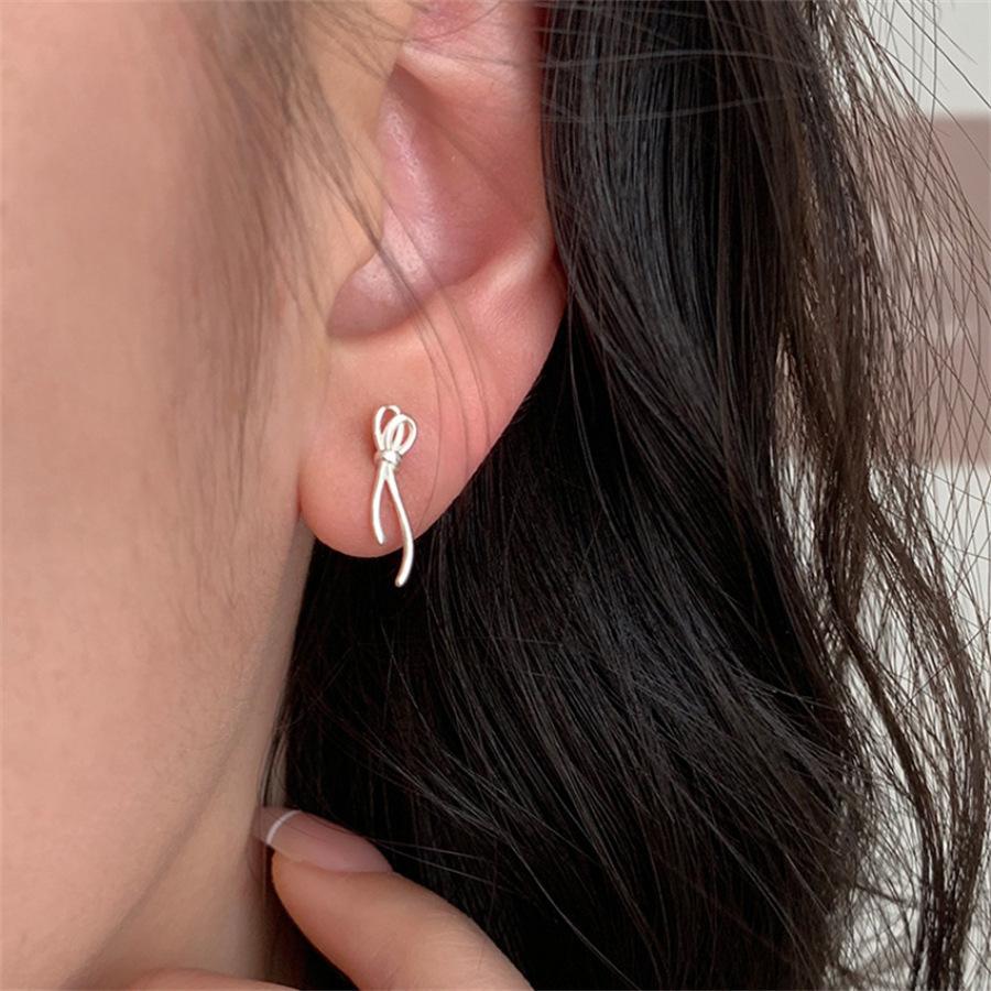 Compra Pendientes de lazo de cinta minimalistas de estilo coreano para mujer, exquisitos pendientes de estilo frío para viajeros, accesorios de celebridades de Internet, venta al por mayor, de moda al por mayor en Joom.pro
