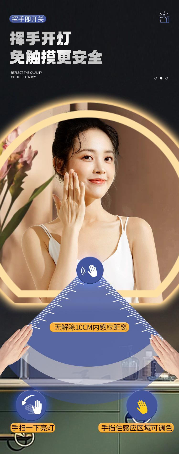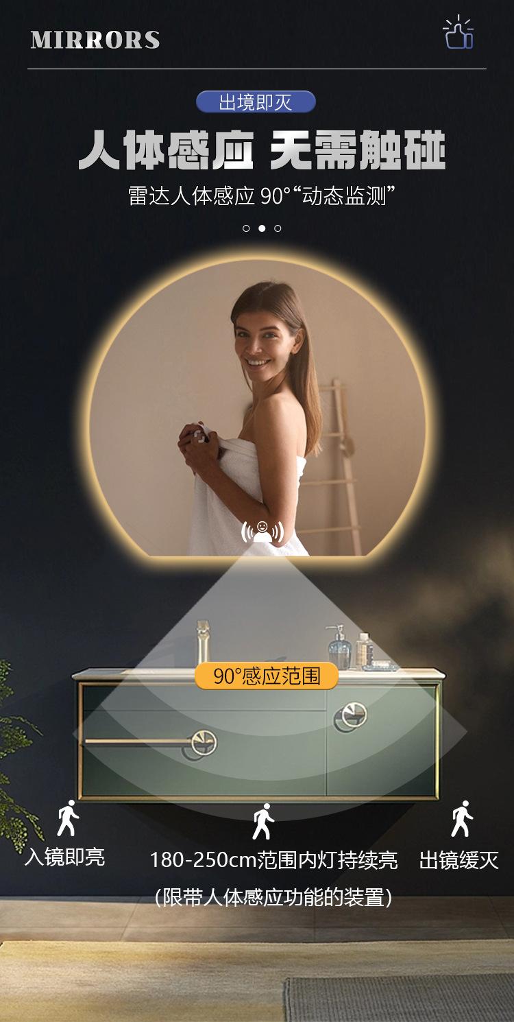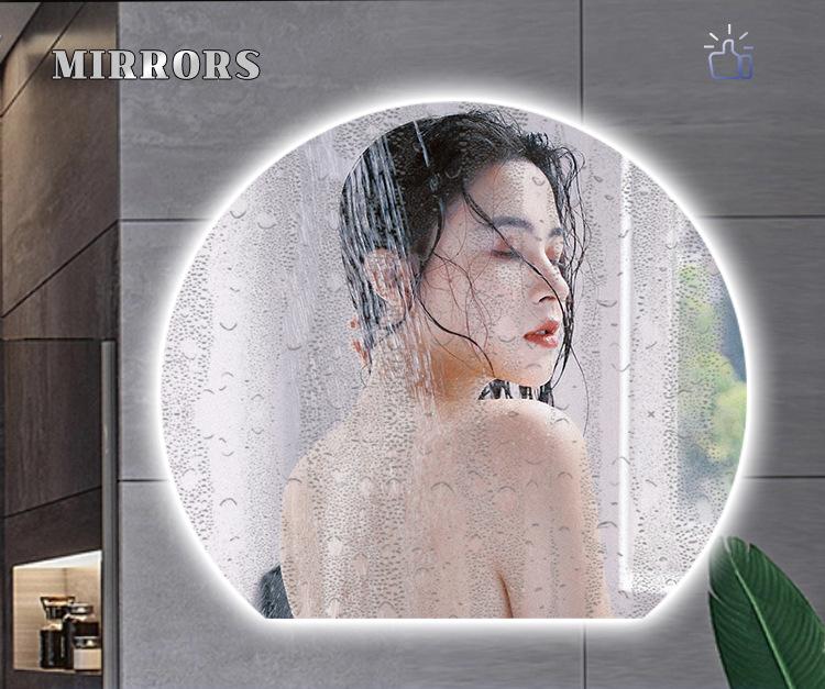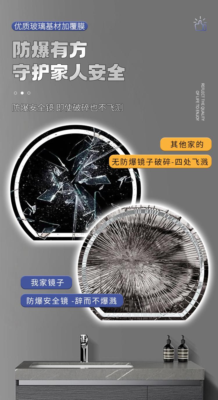 Compra Espejo Inteligente Creativo con Forma Especial Semicircular Montado en la Pared Antivaho para Baño con Luz Espejo de Maquillaje Luminoso LED al por mayor en Joom.pro